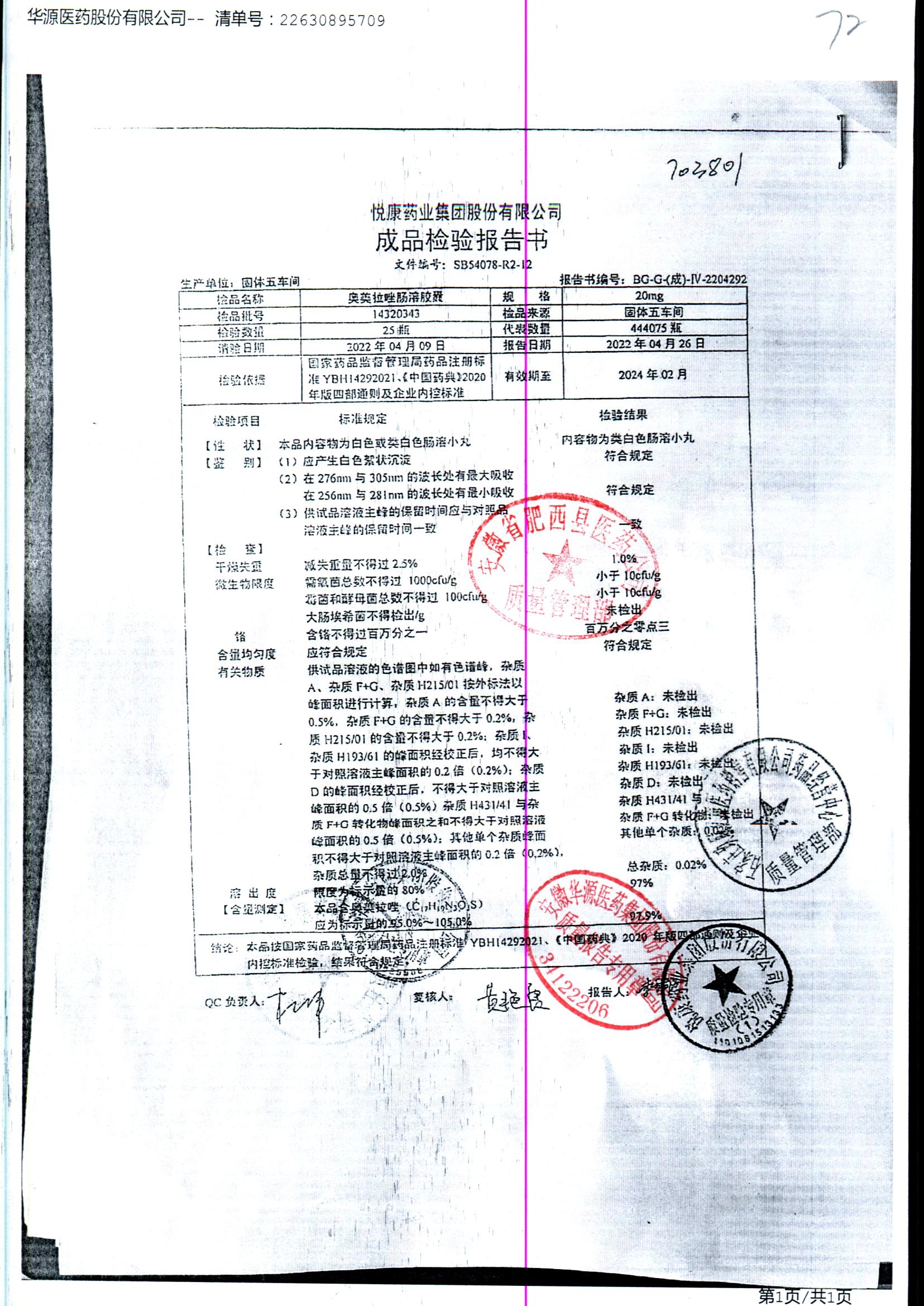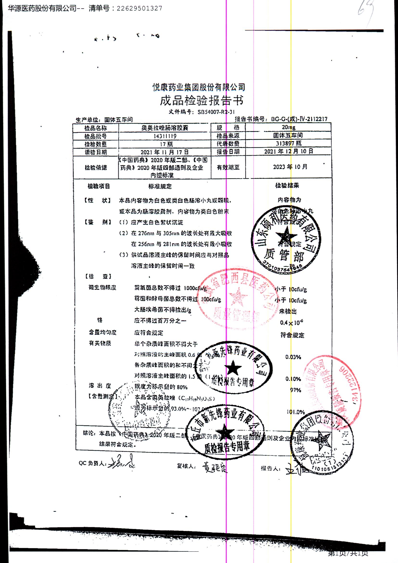 奥美拉唑肠溶胶囊 | 20mg | 143240203/2 | 查看详情 |