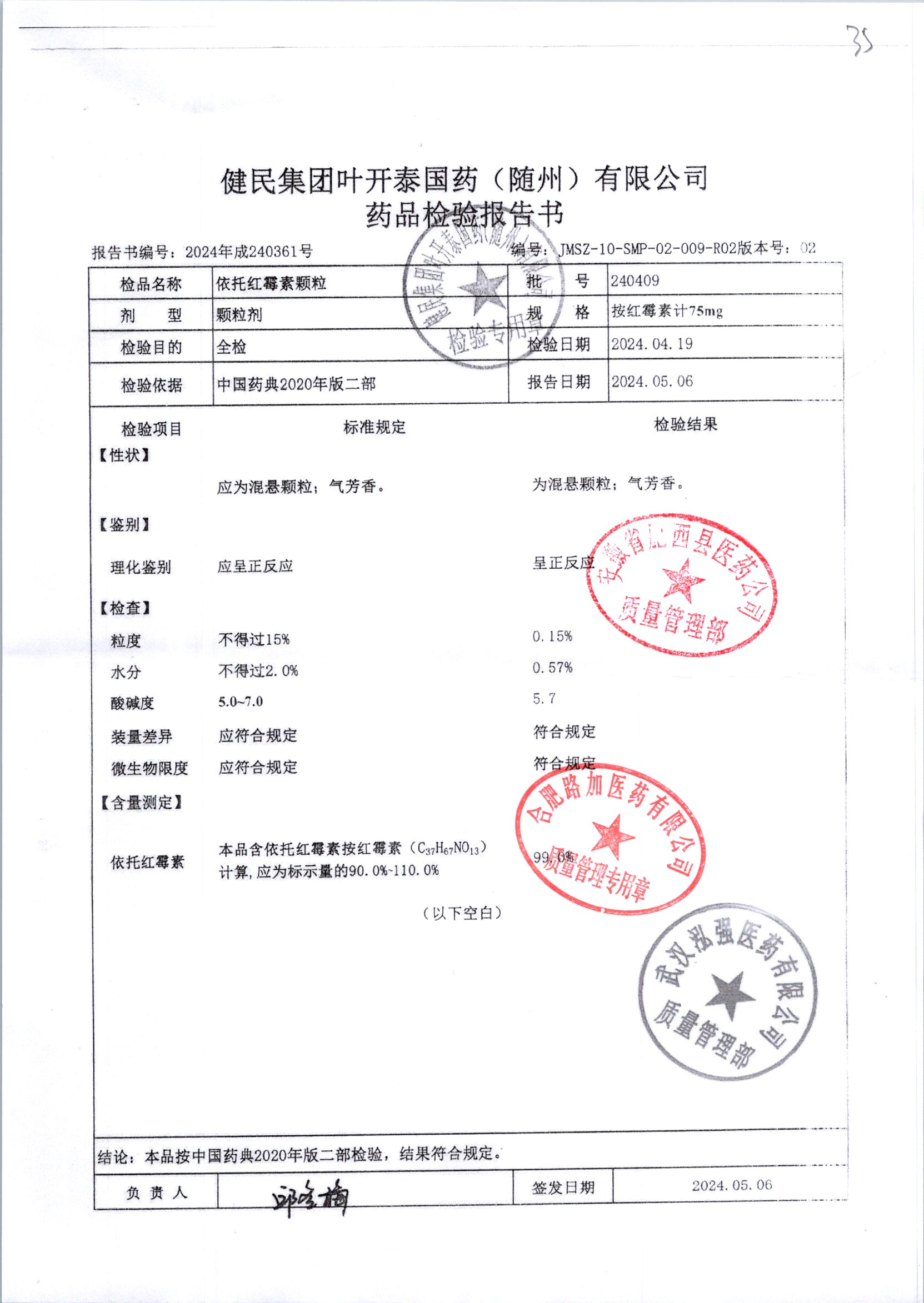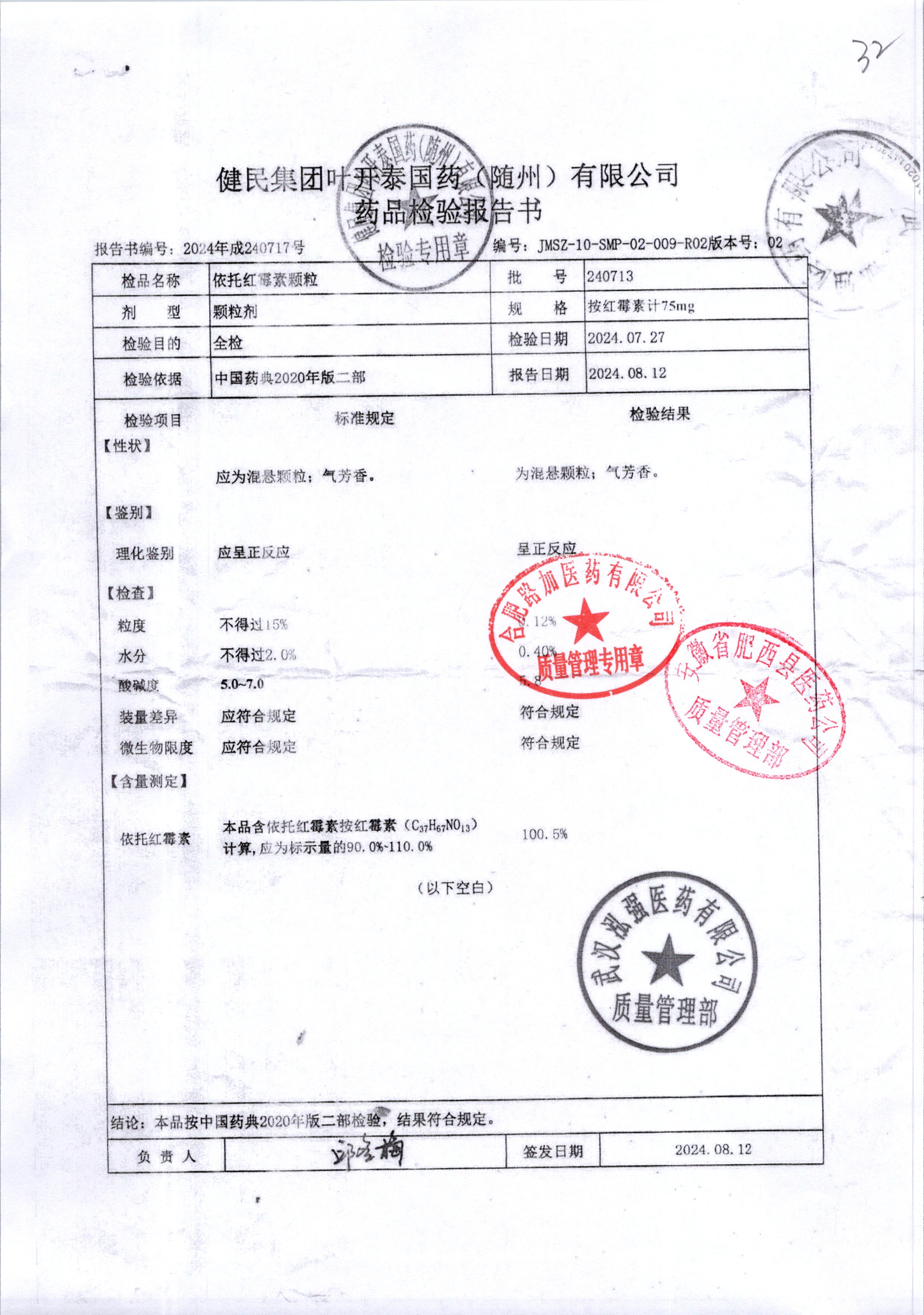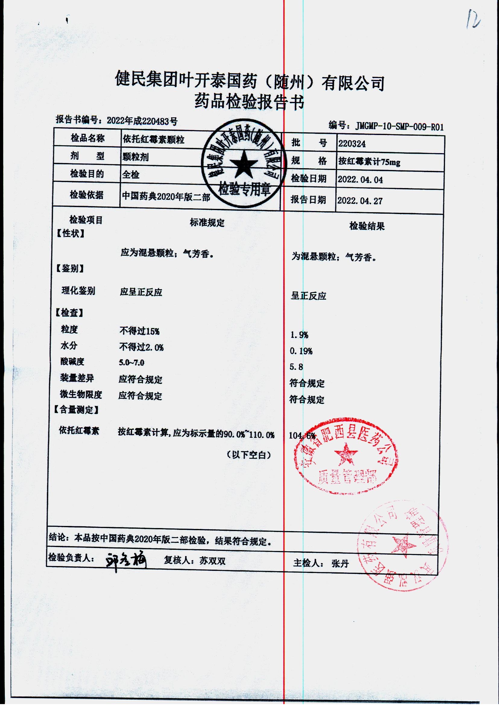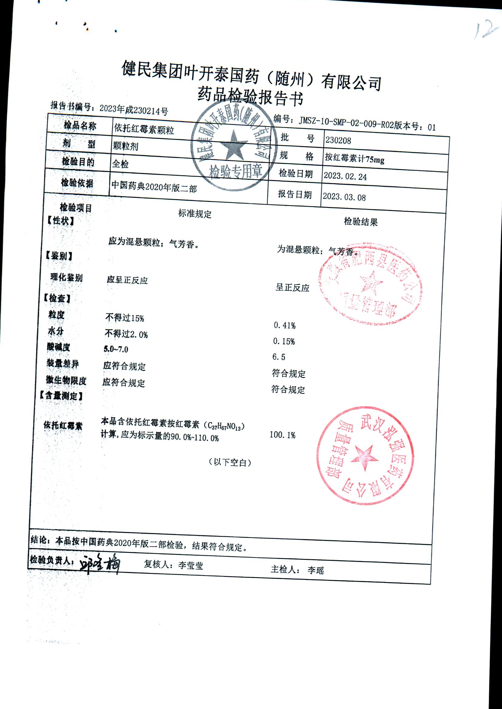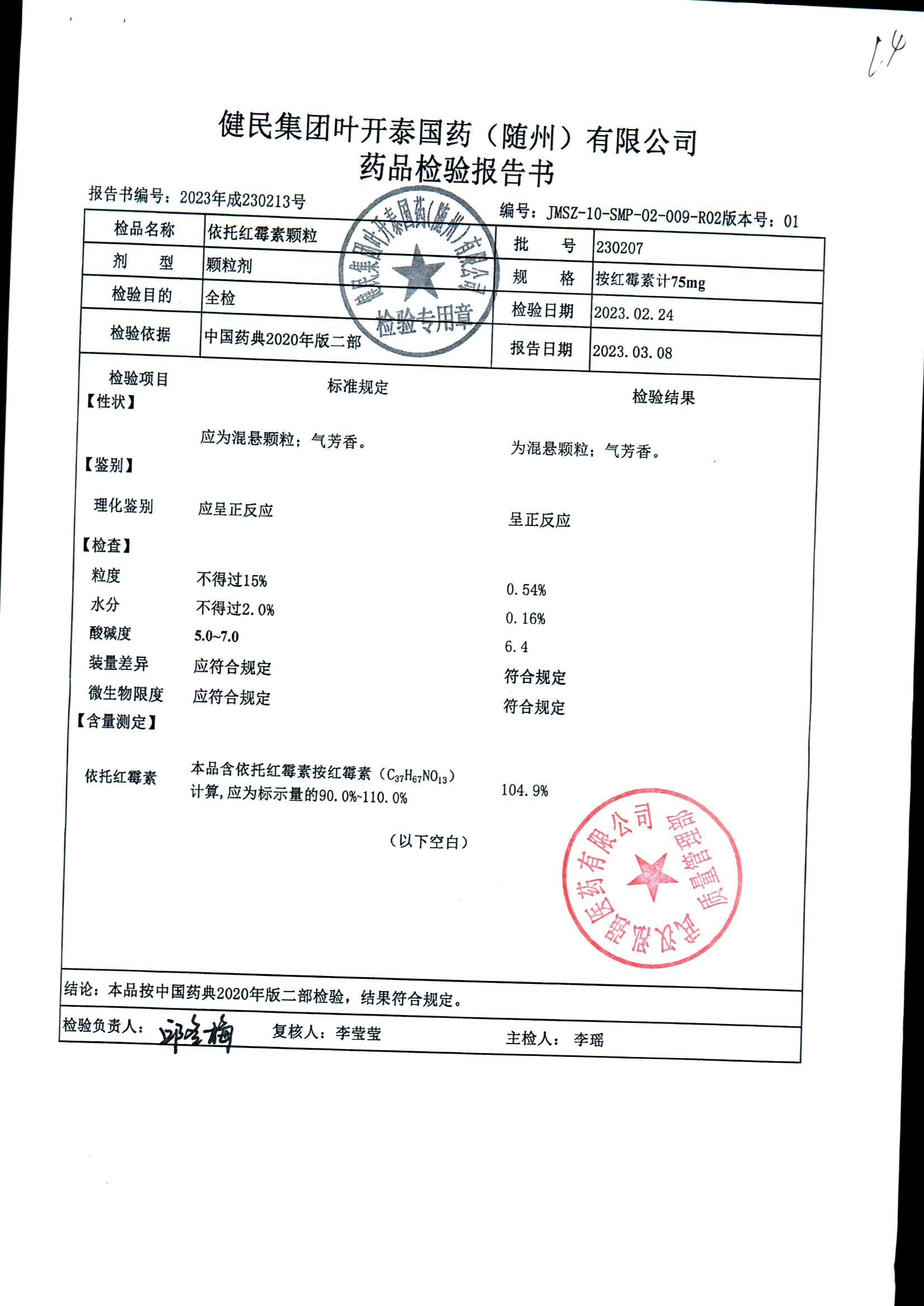依托红霉素颗粒 | 75g*12袋 | 240713 | 查看详情 |