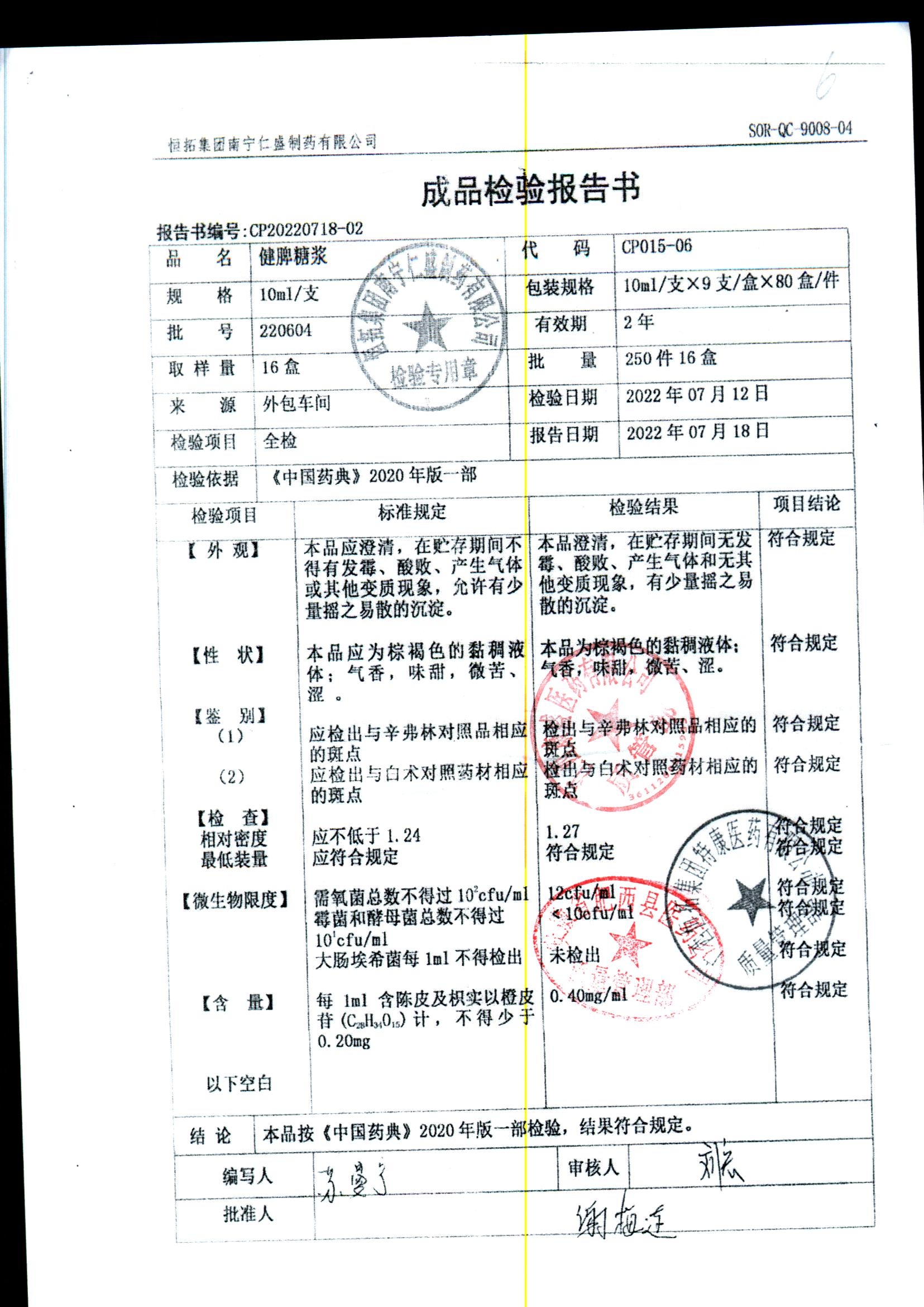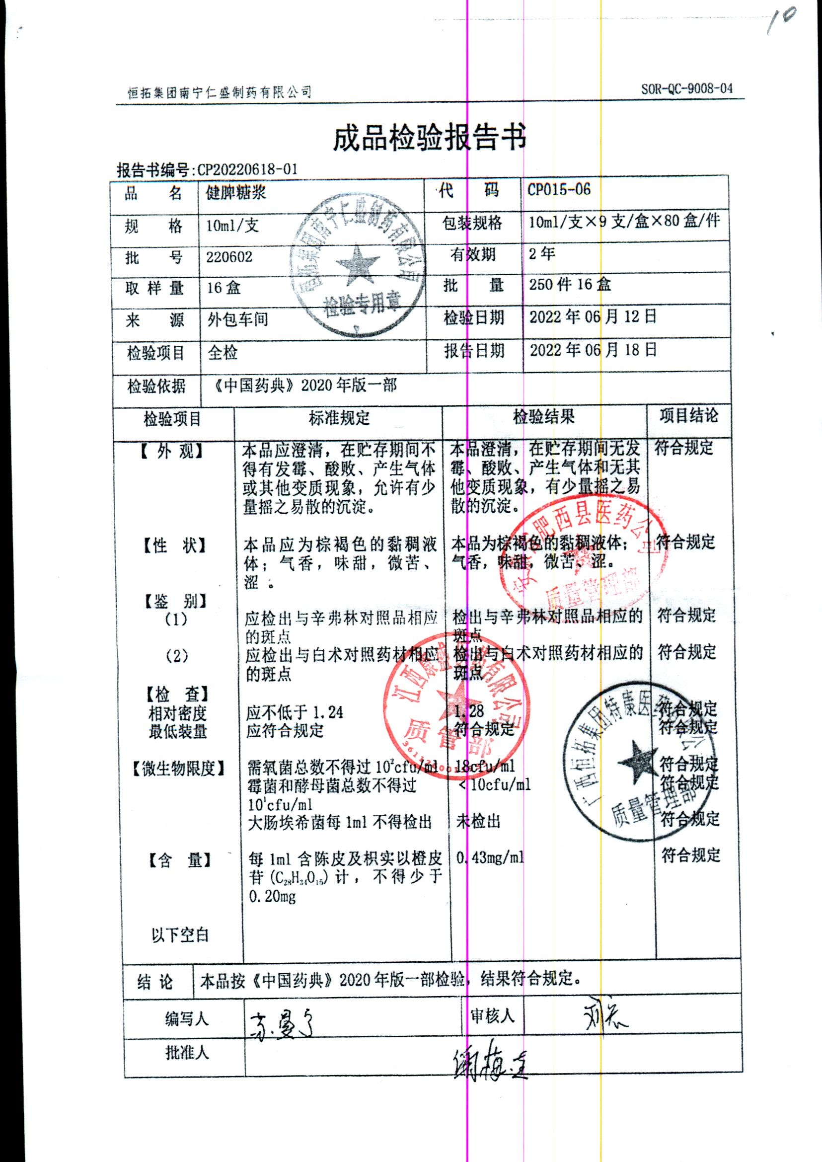 药检报告