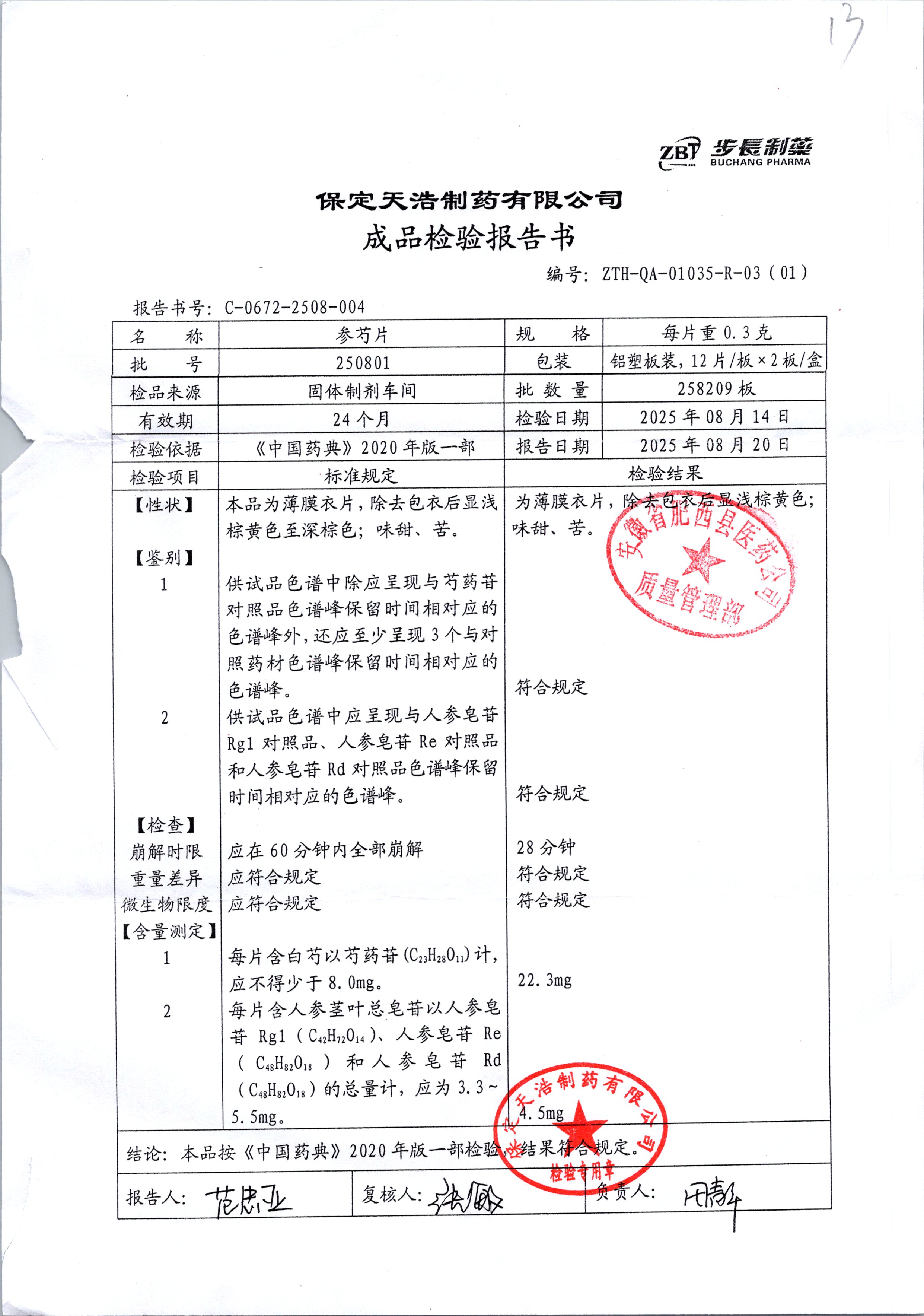 | 名称 | 规格 | 批号 | 药检报告 |