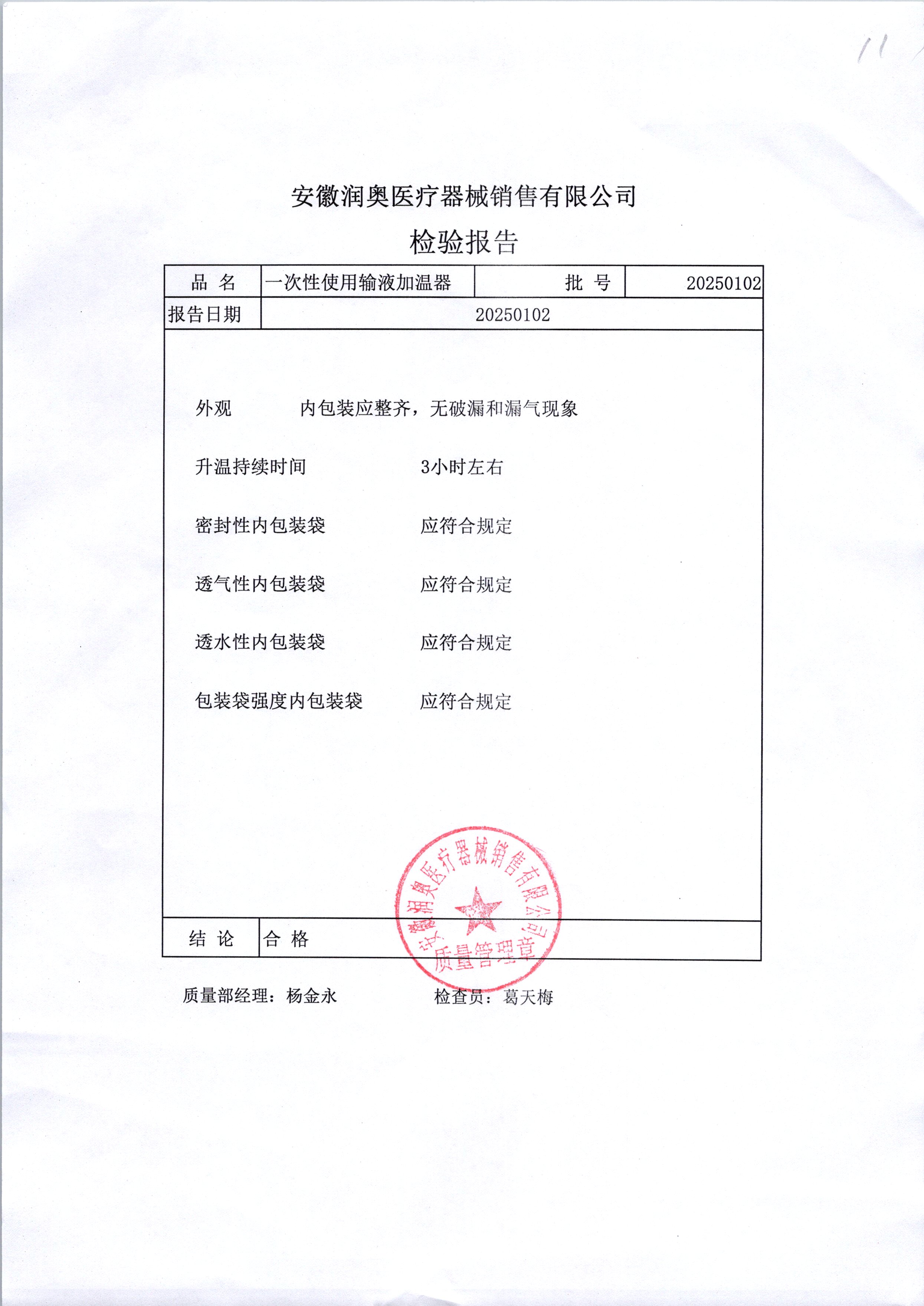 | 一次性输液加温器 | / | 20250102 | 查看详情 |
