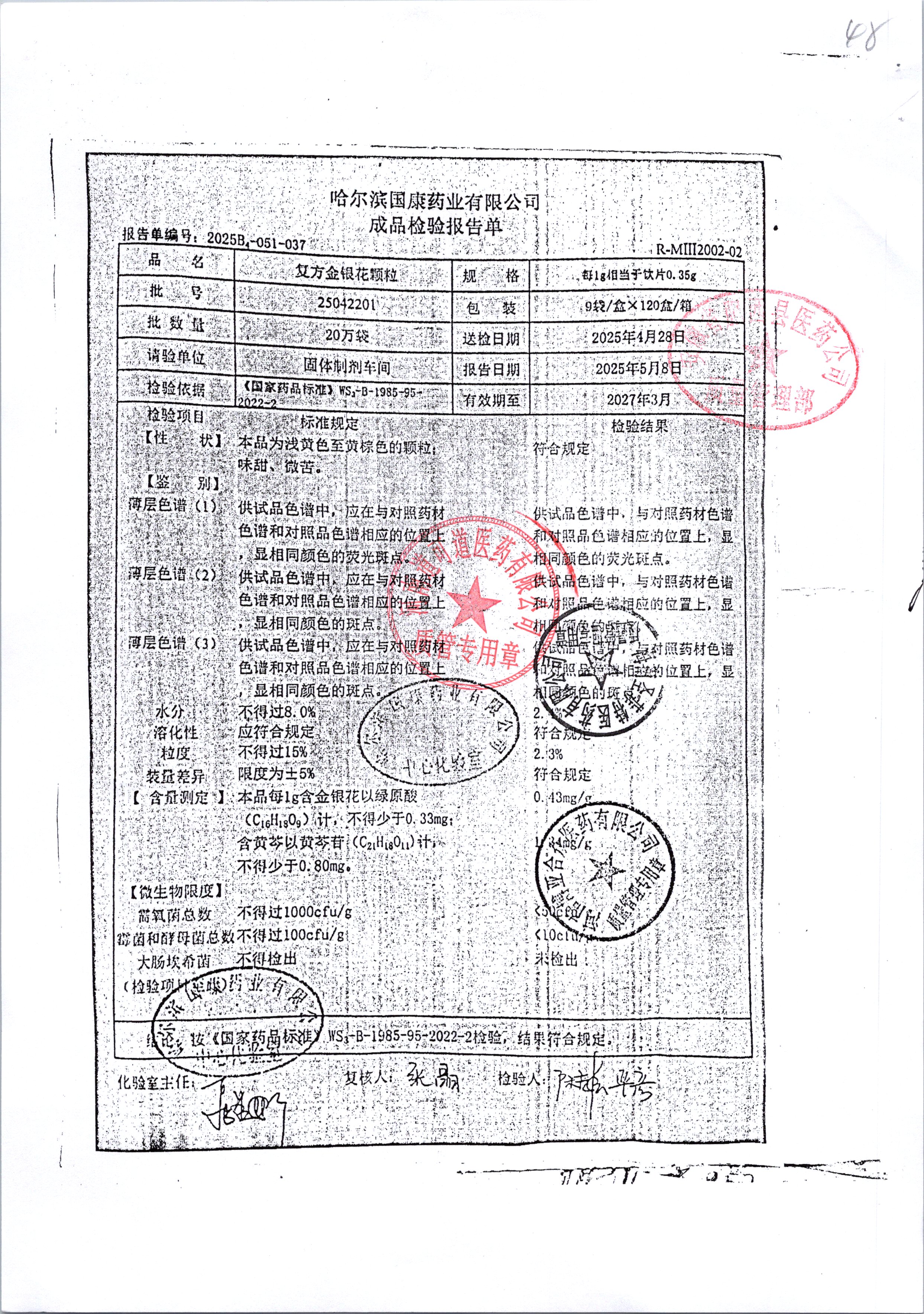 | 复方金银花颗粒 | 0.35g*9 | 25020801 | 查看详情 |