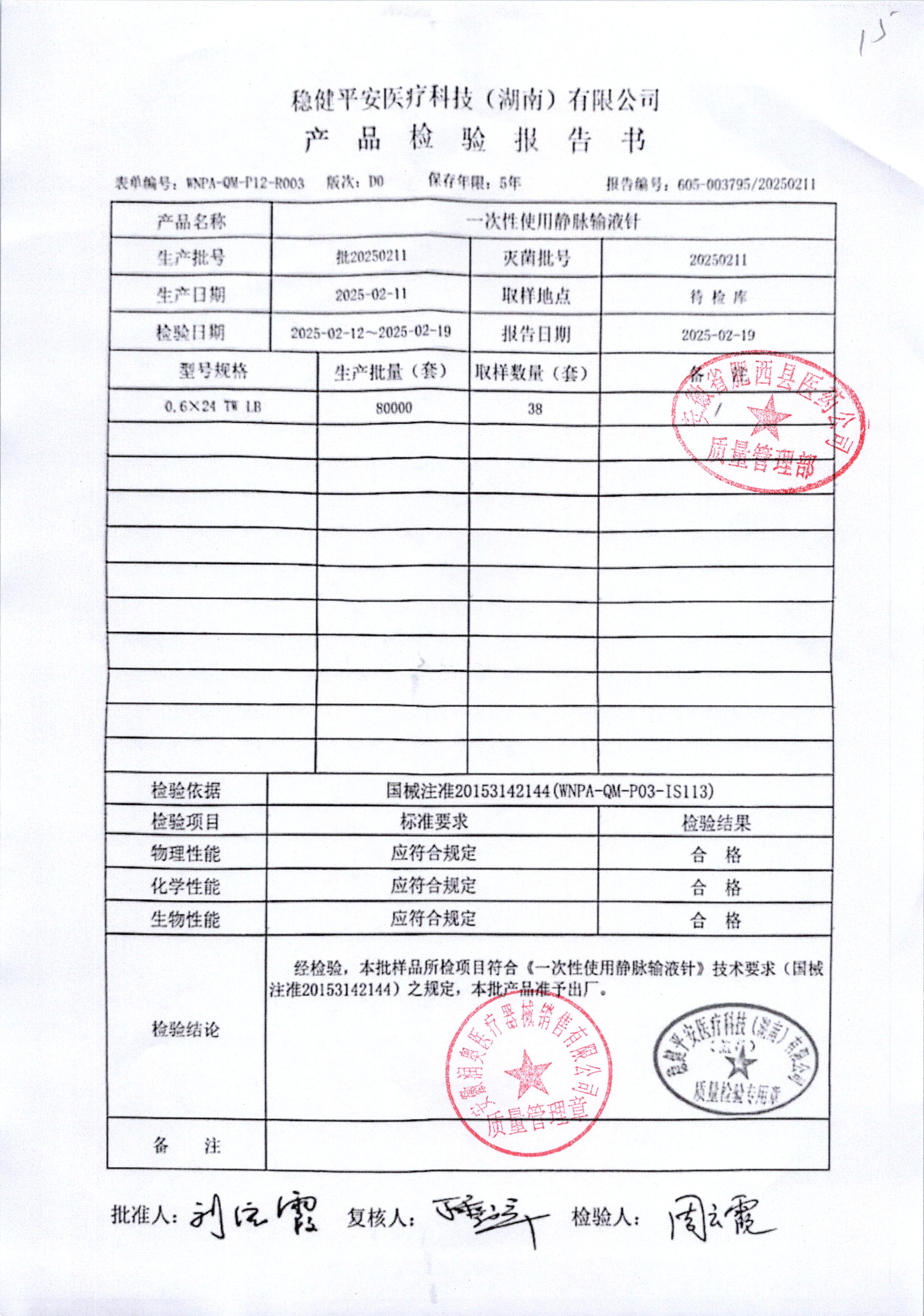 | 一次性使用静脉输液针 | 0.6*24 TW LB | 批20250211 | 查看详情 |
