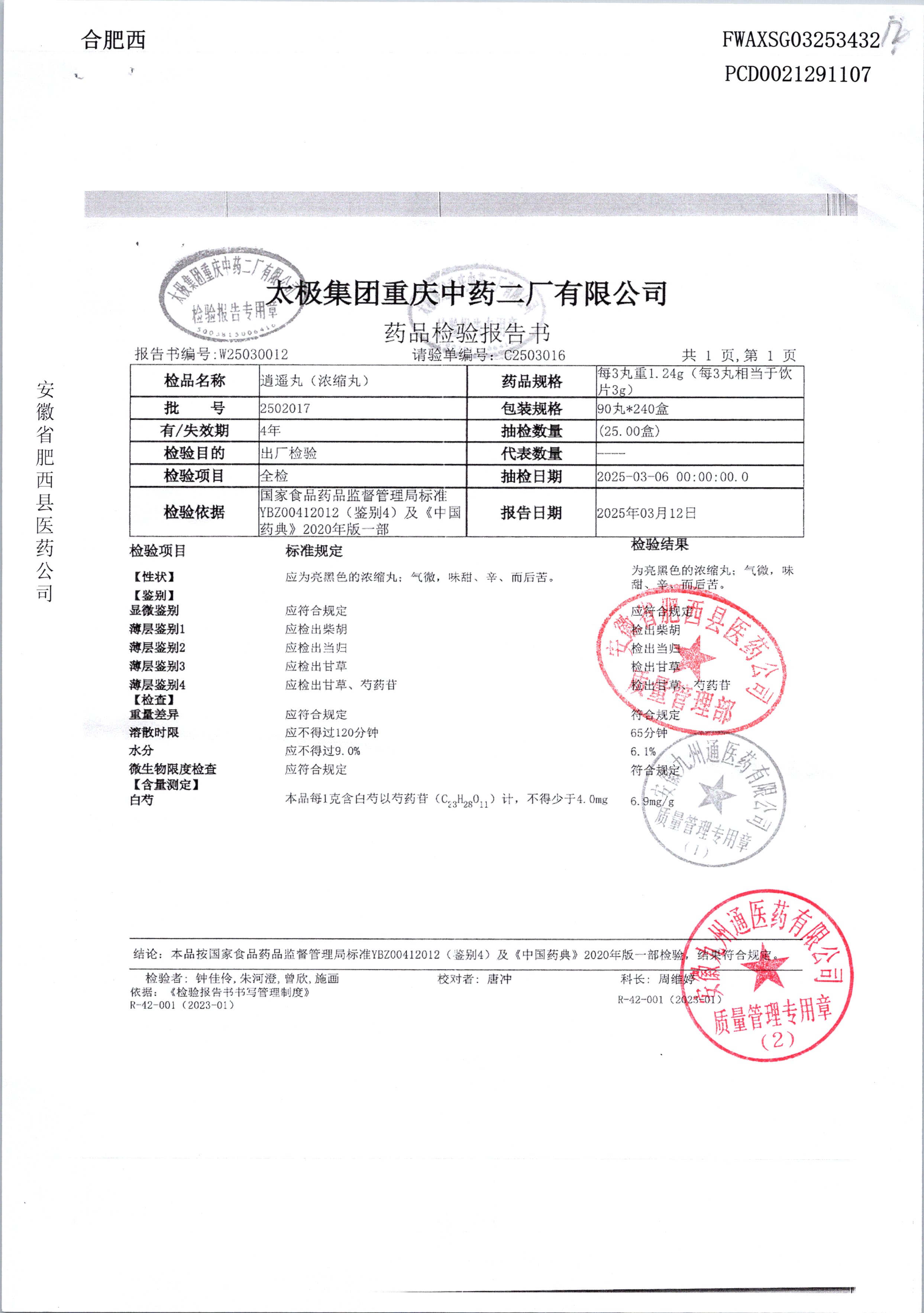 药检报告