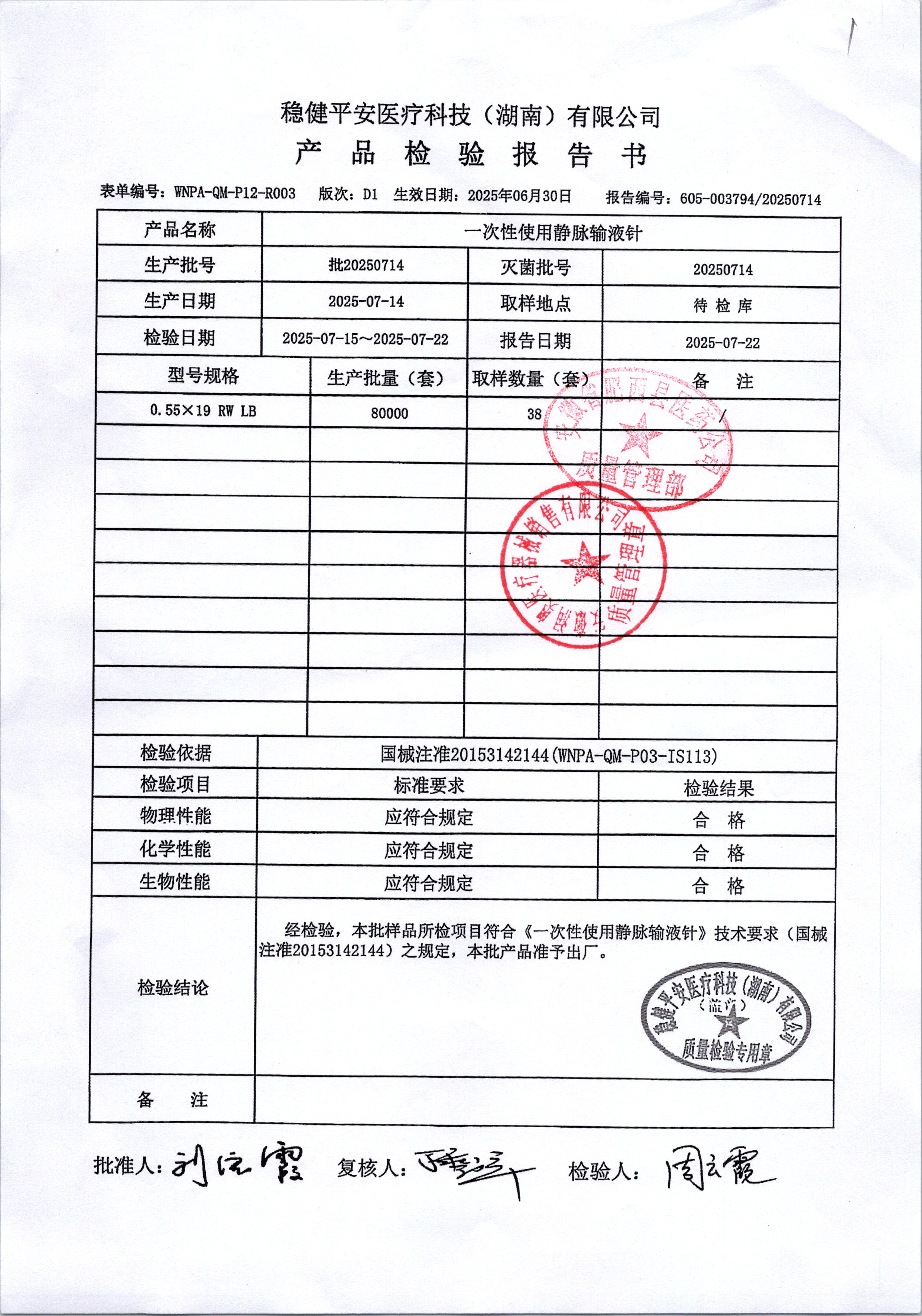 | 一次性使用静脉输液针 | 055*19 RW LB | 批20250714 | 查看详情 |