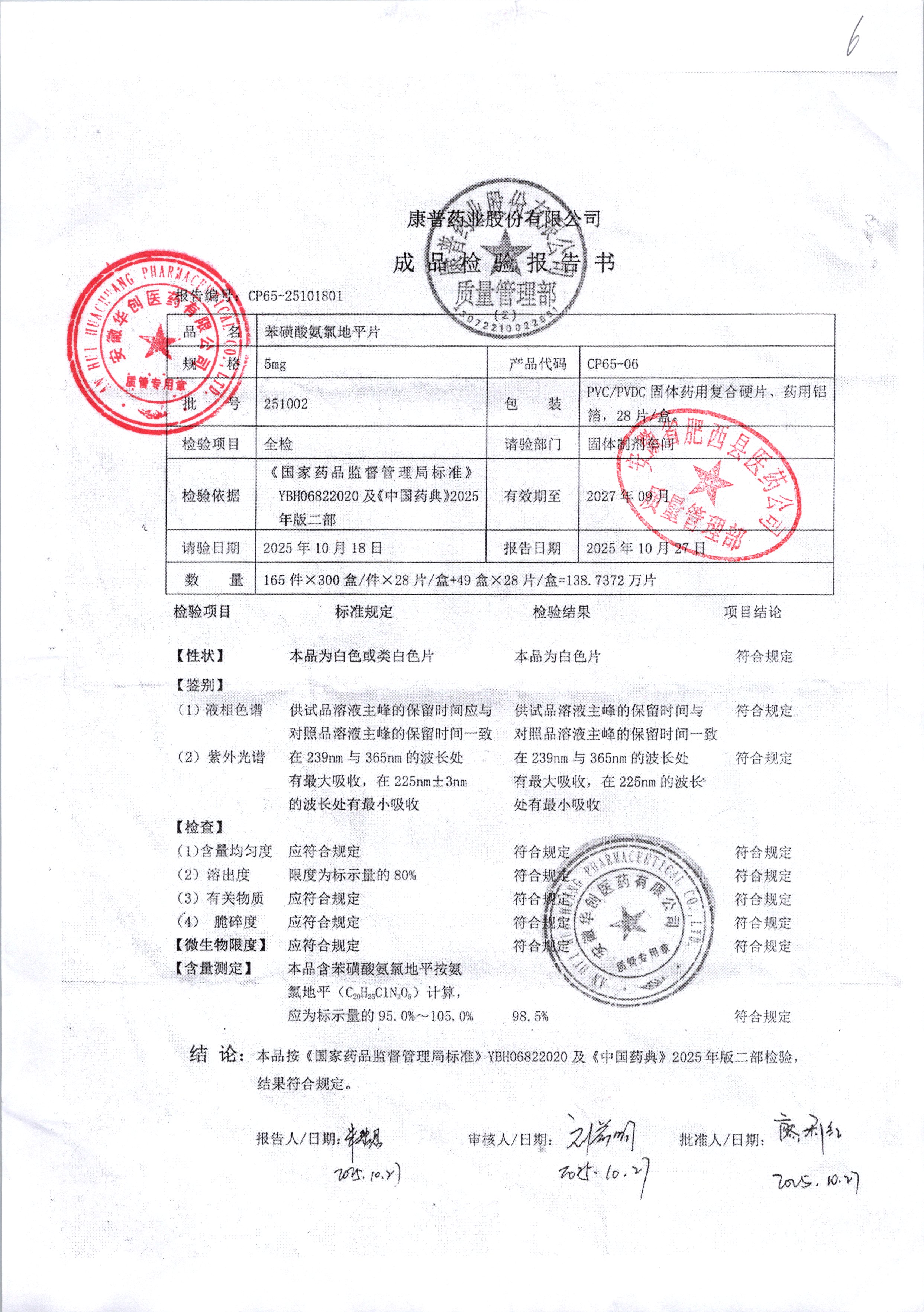 药检报告