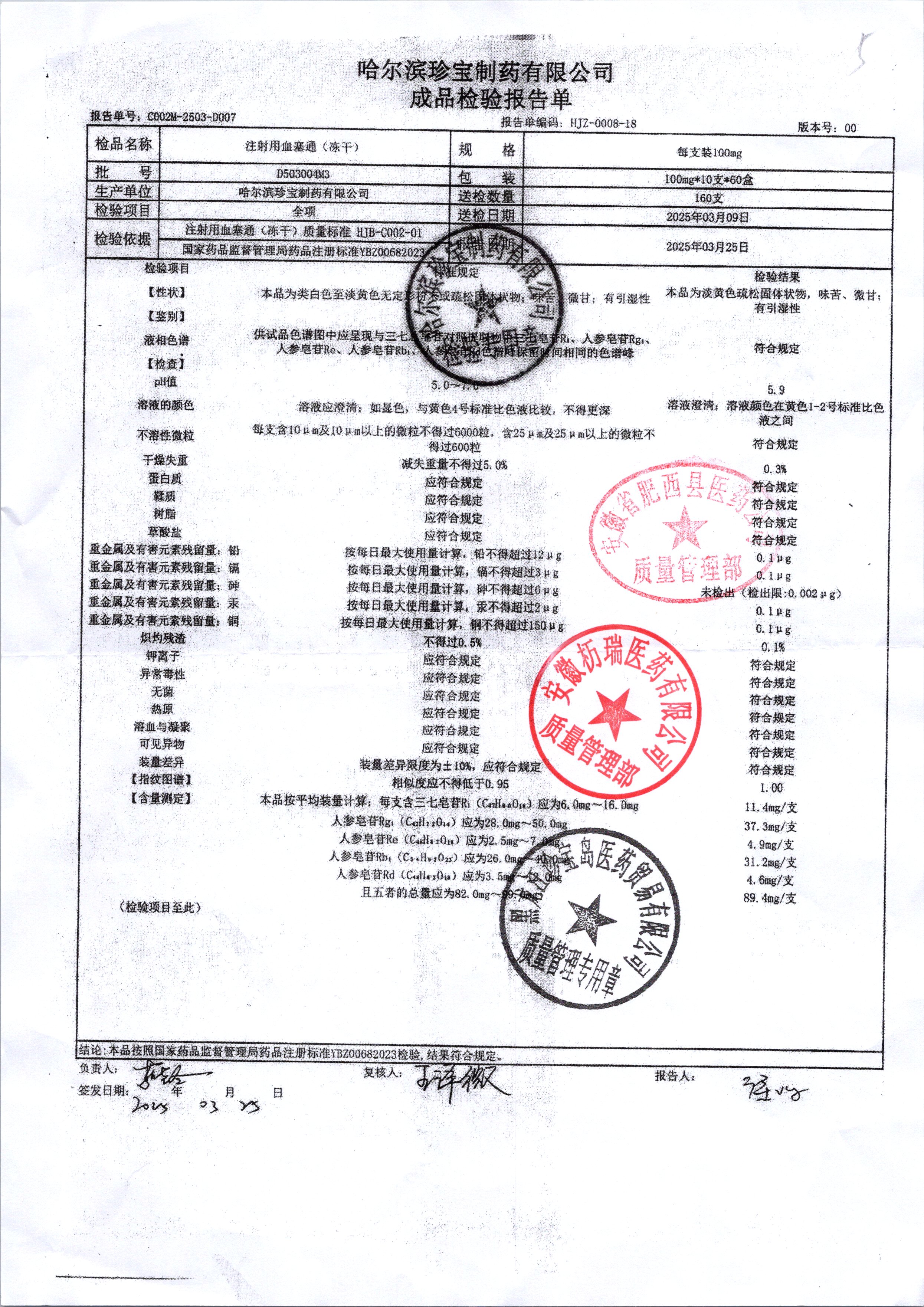 | 注射用血塞通(冻干) | 100mg*10支 | E312015M3 | 查看详情 |