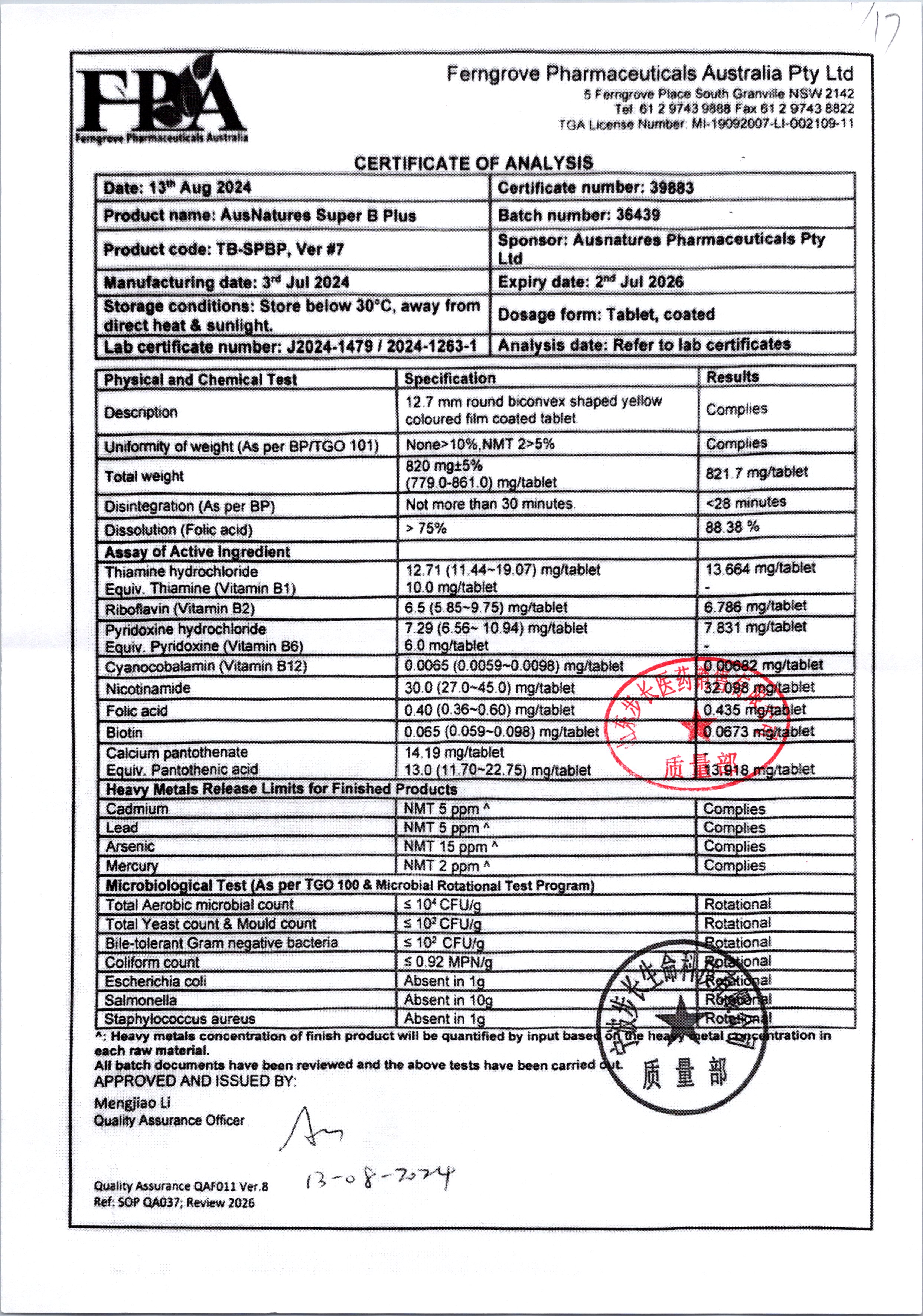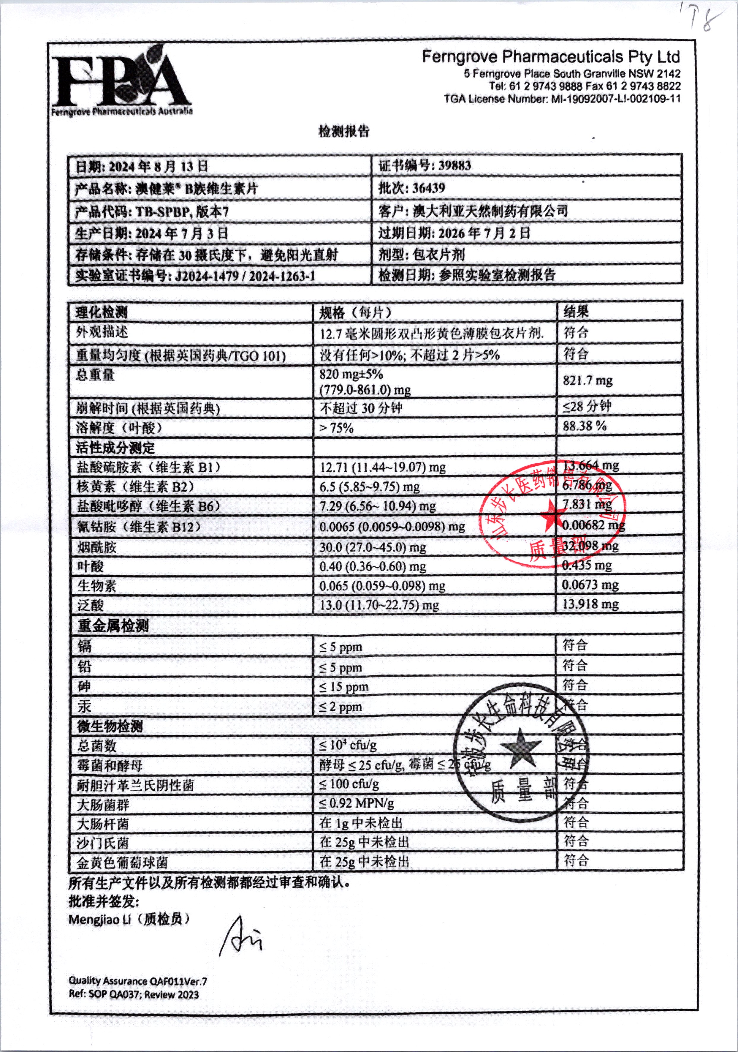 | 澳健莱B族维生素片 | 12.7mm | 36883/3 | 查看详情 |