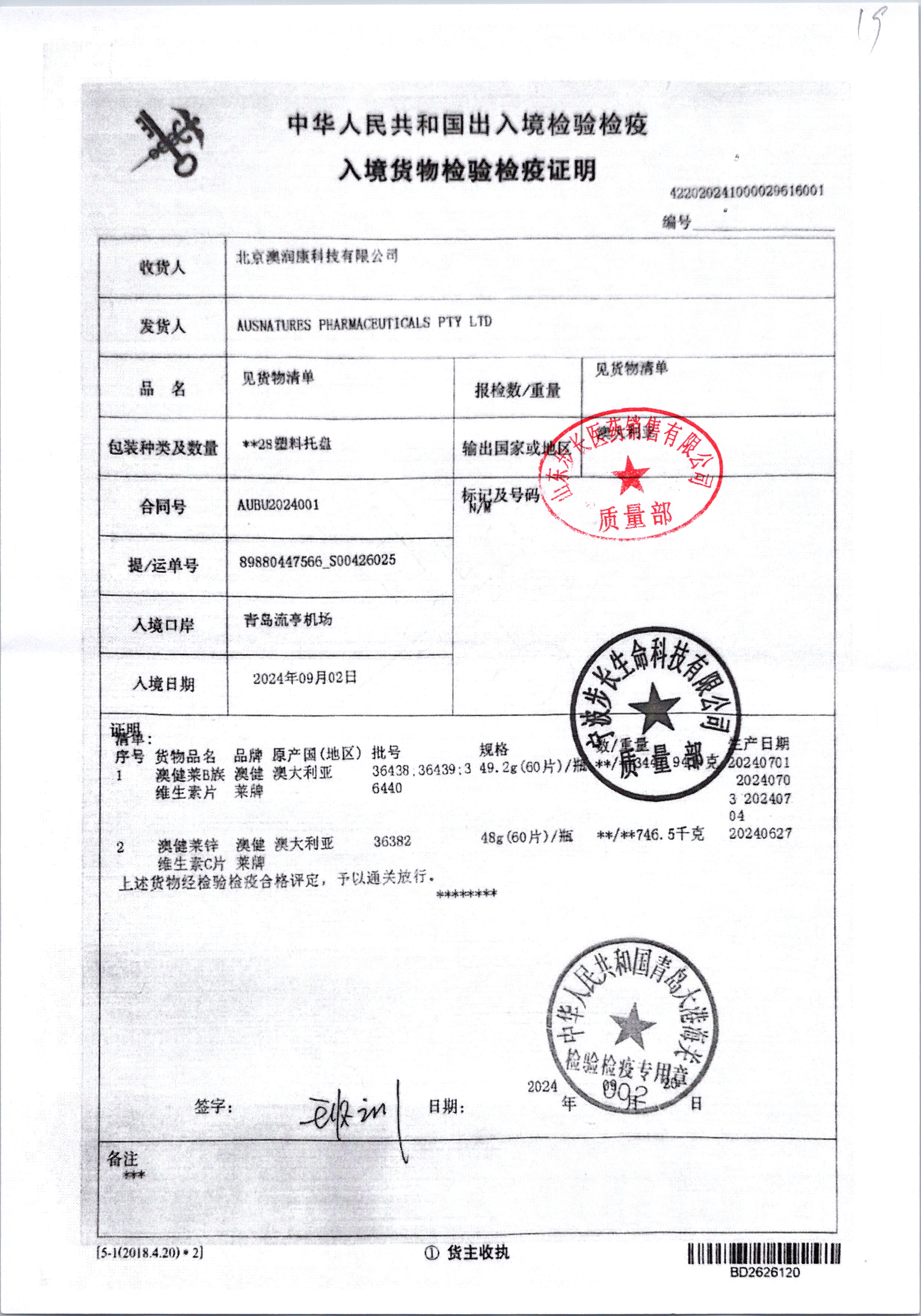 | 名称 | 规格 | 批号 | 药检报告 |