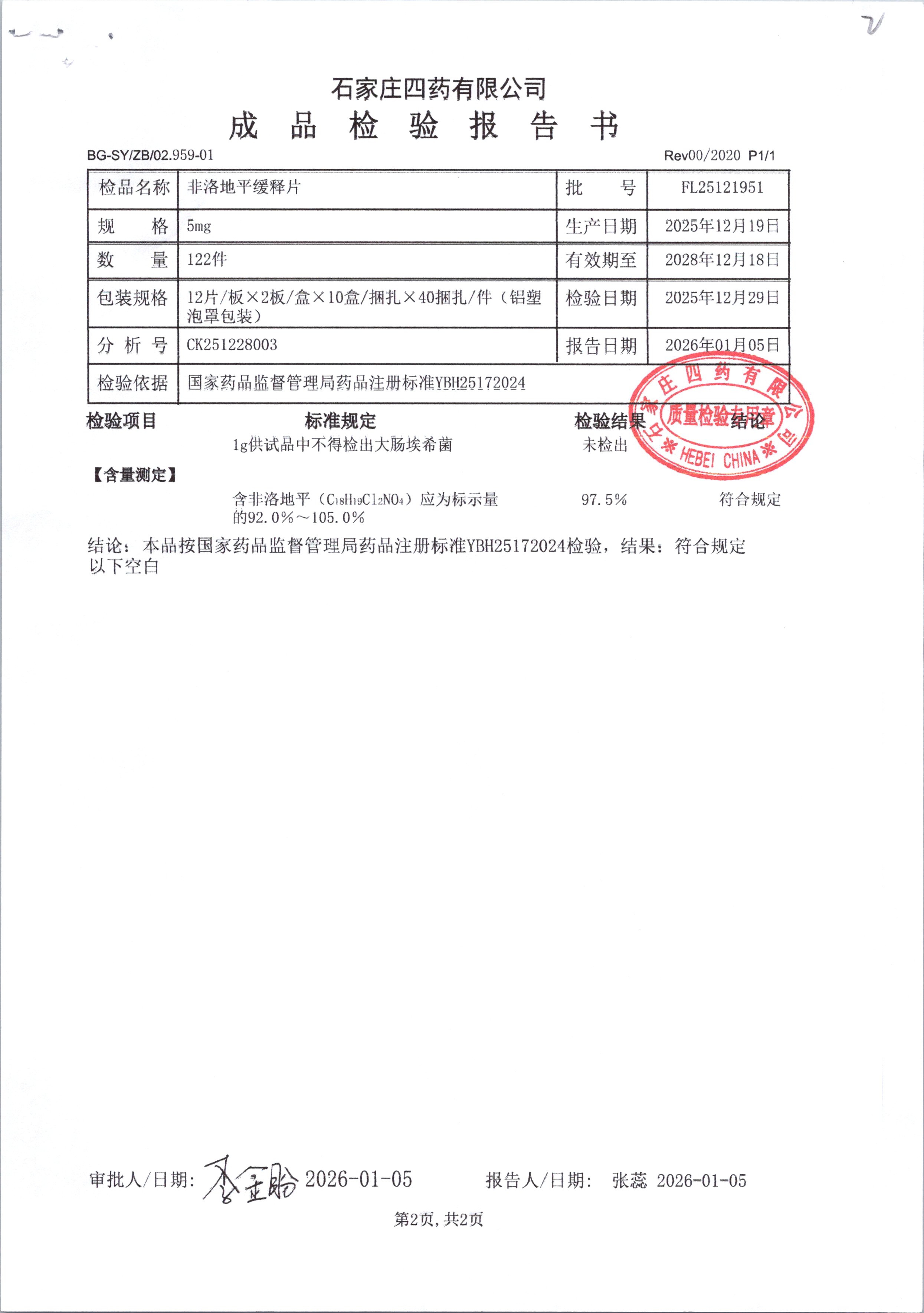 | 非洛地平缓释片 | 5mg*24粒 | FL24030402/2 | 查看详情 |
