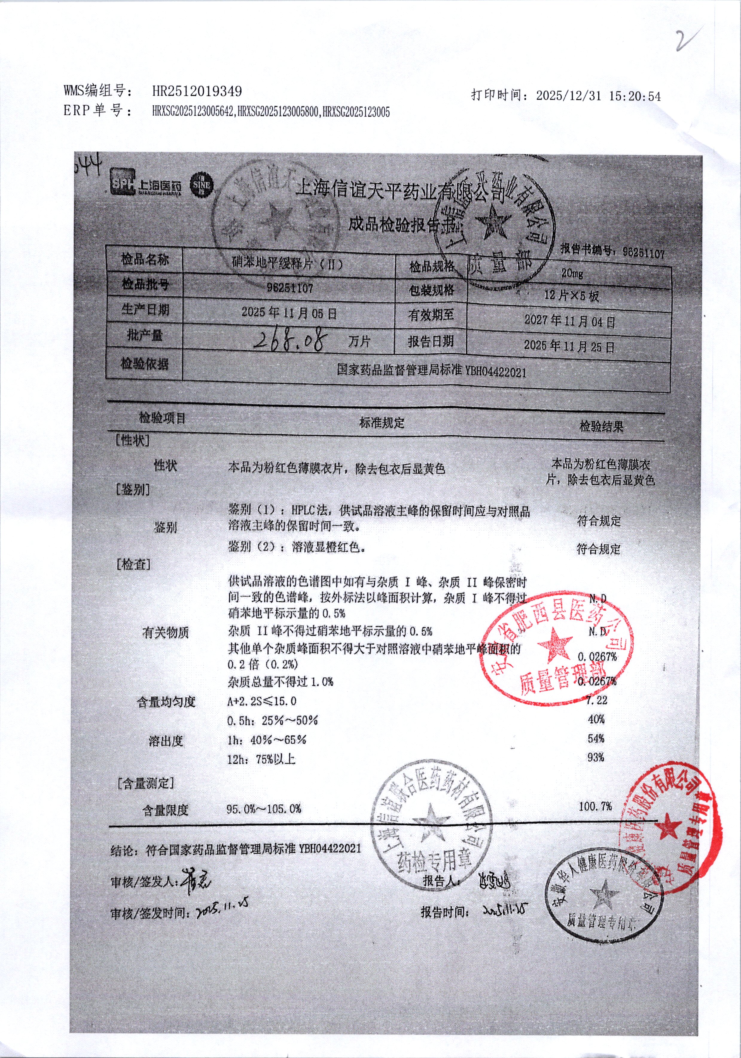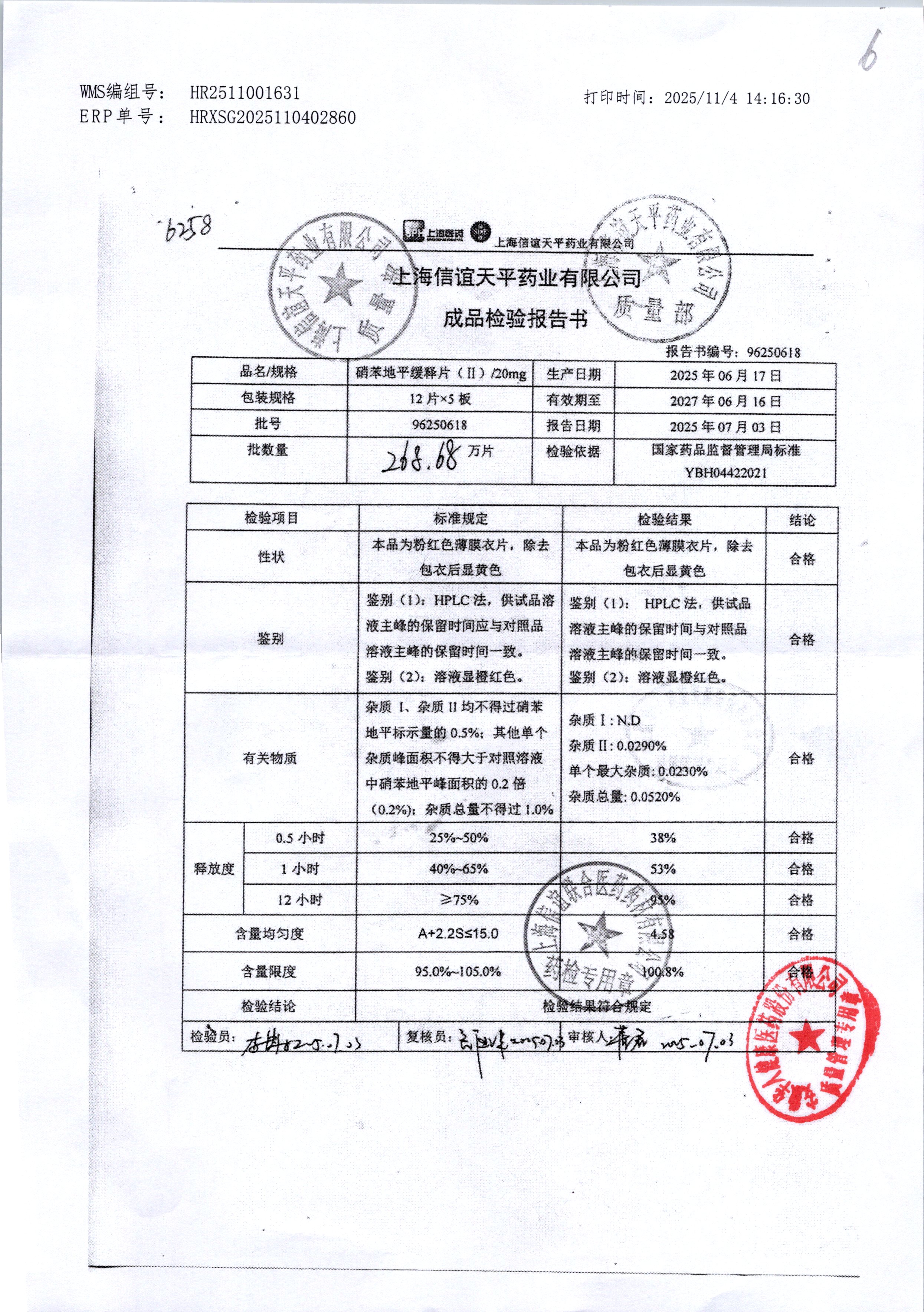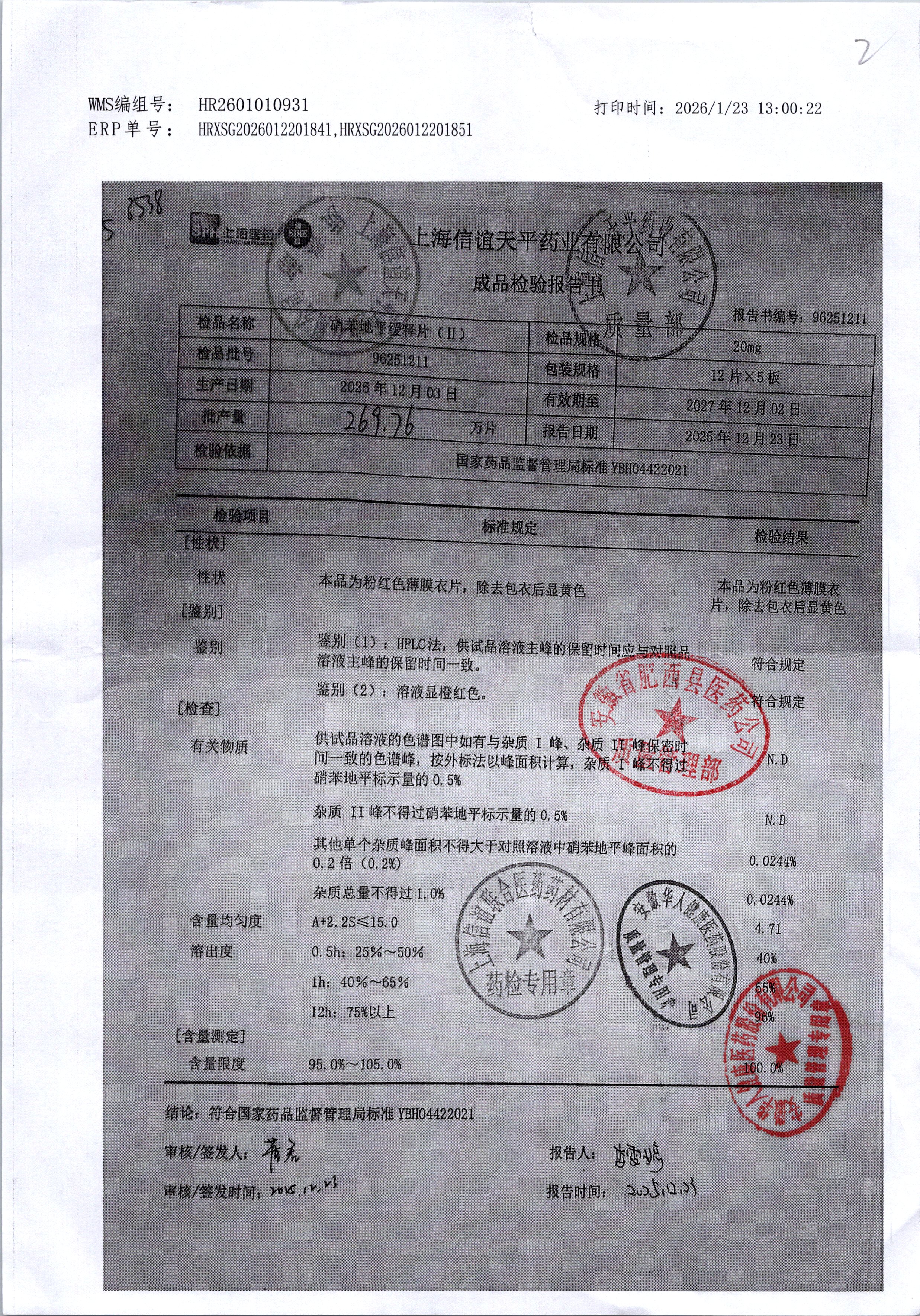 | 硝苯地平缓释片(II) | 20mg*60s | 96250907 | 查看详情 |