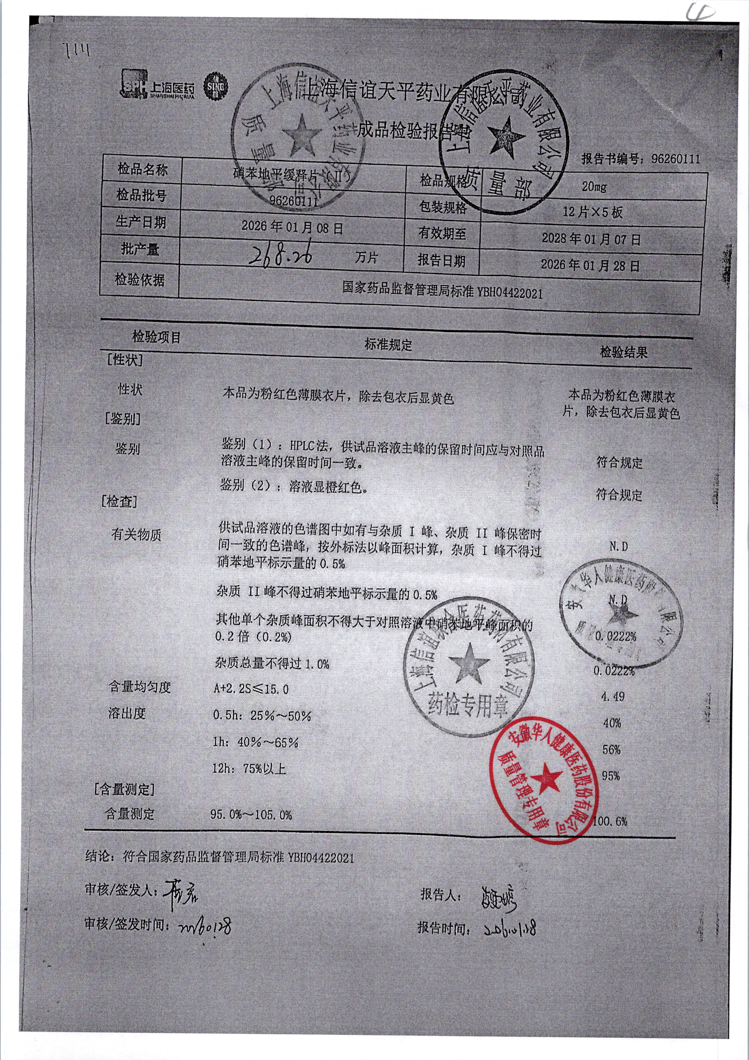 | 硝苯地平缓释片(II) | 20mg*60s | 96250617 | 查看详情 |