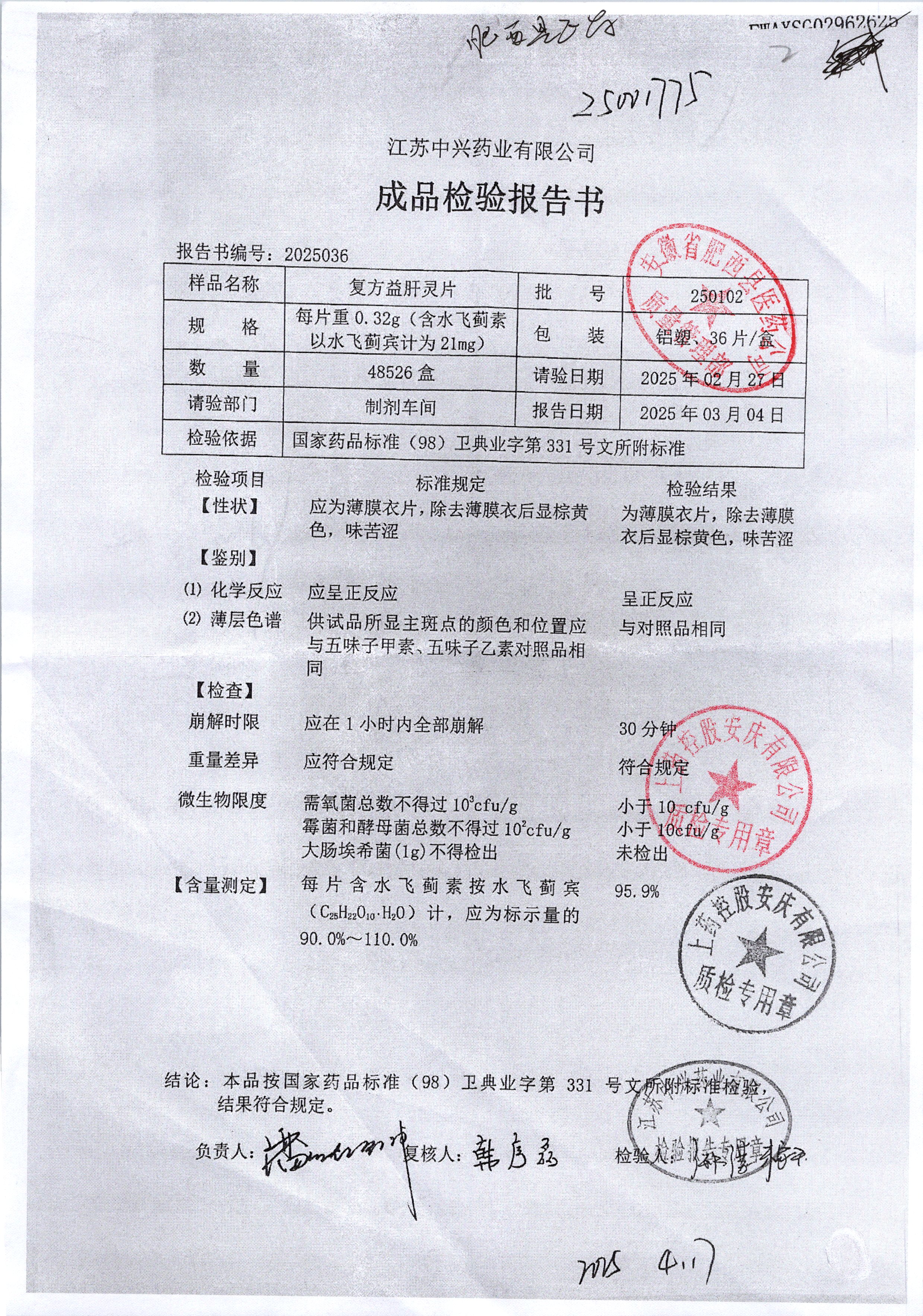 | 复方益肝灵片 | 0.32g*36片 | 240402 | 查看详情 |