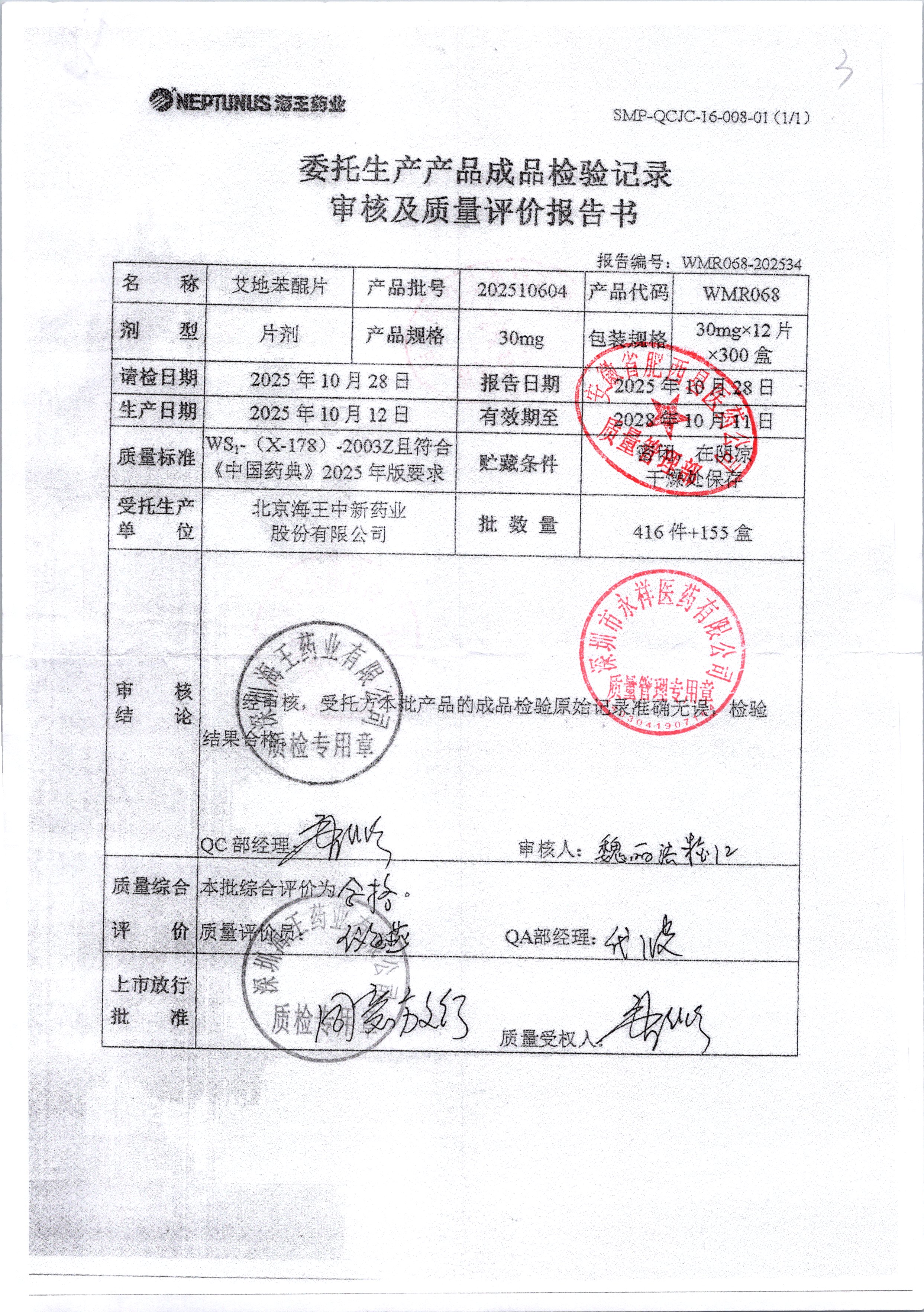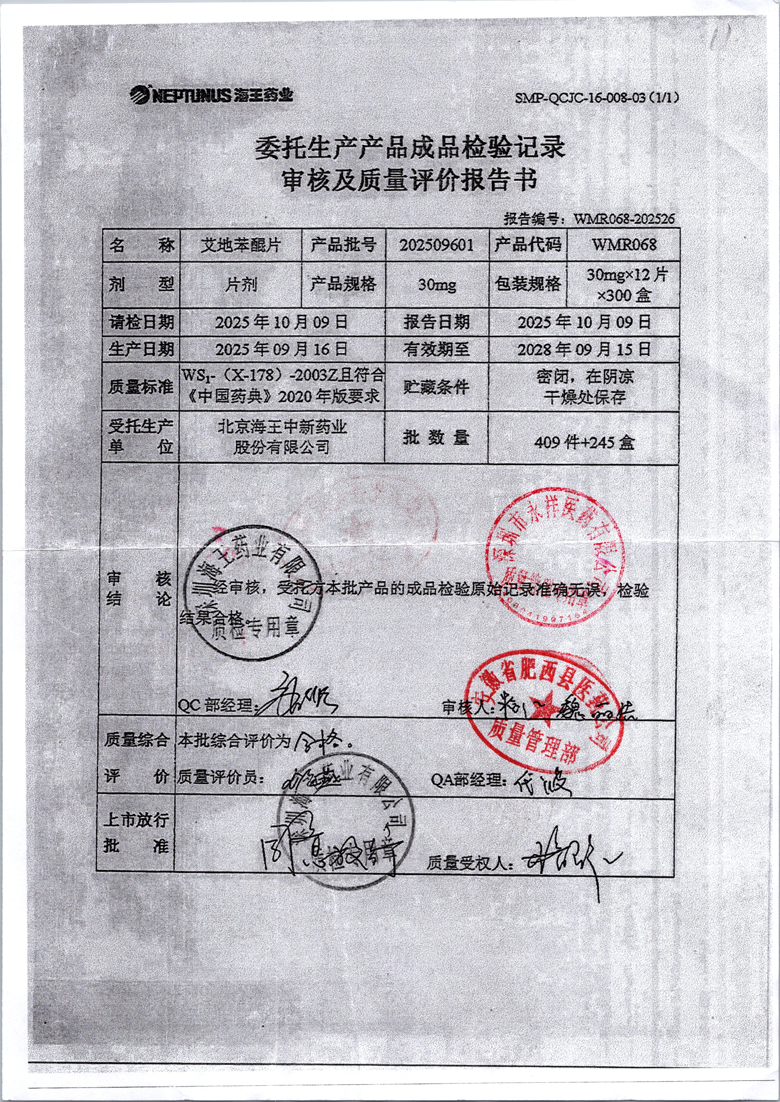 | 艾地苯醌片 | 30mg*12片 | 202510604/1 | 查看详情 |