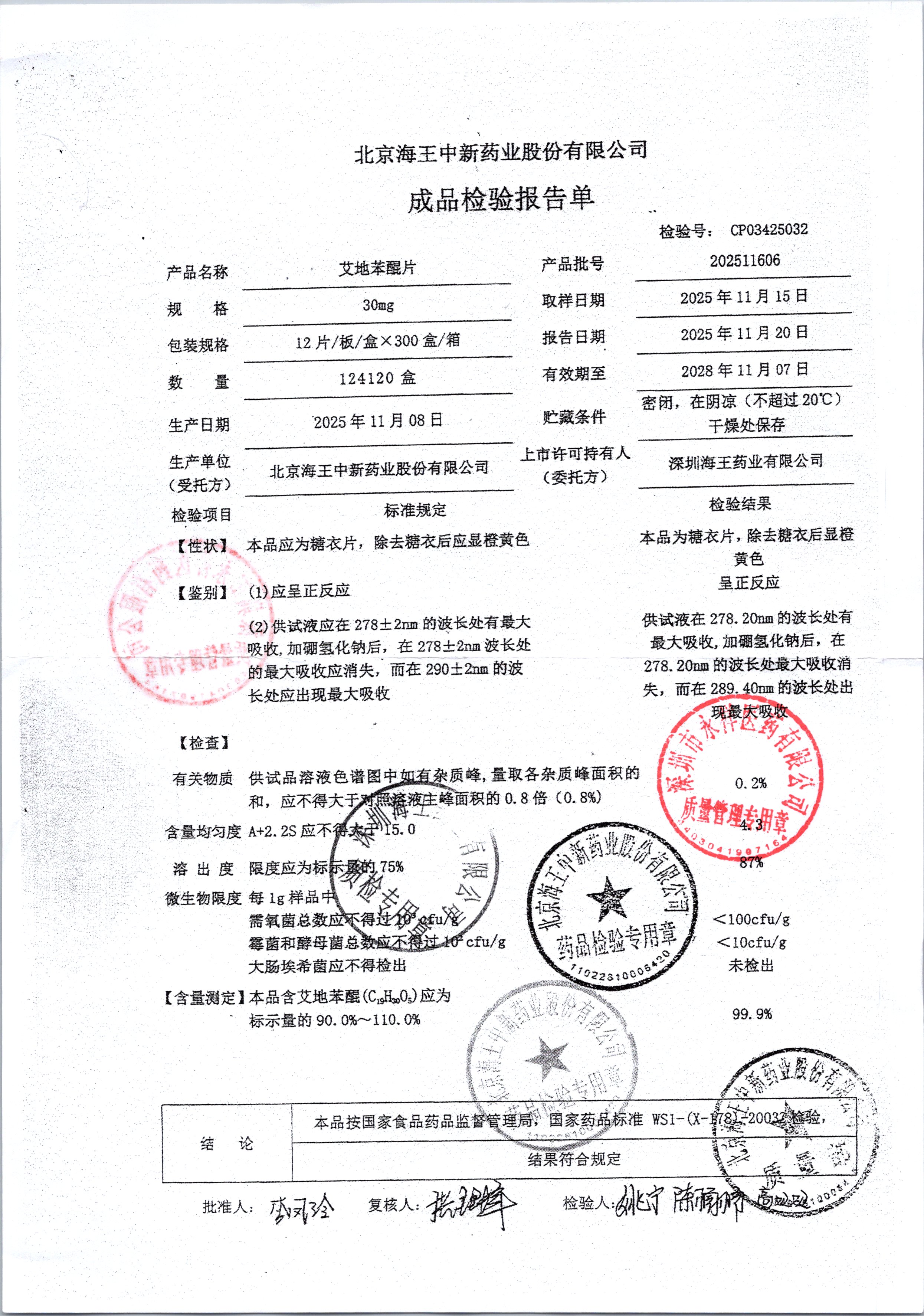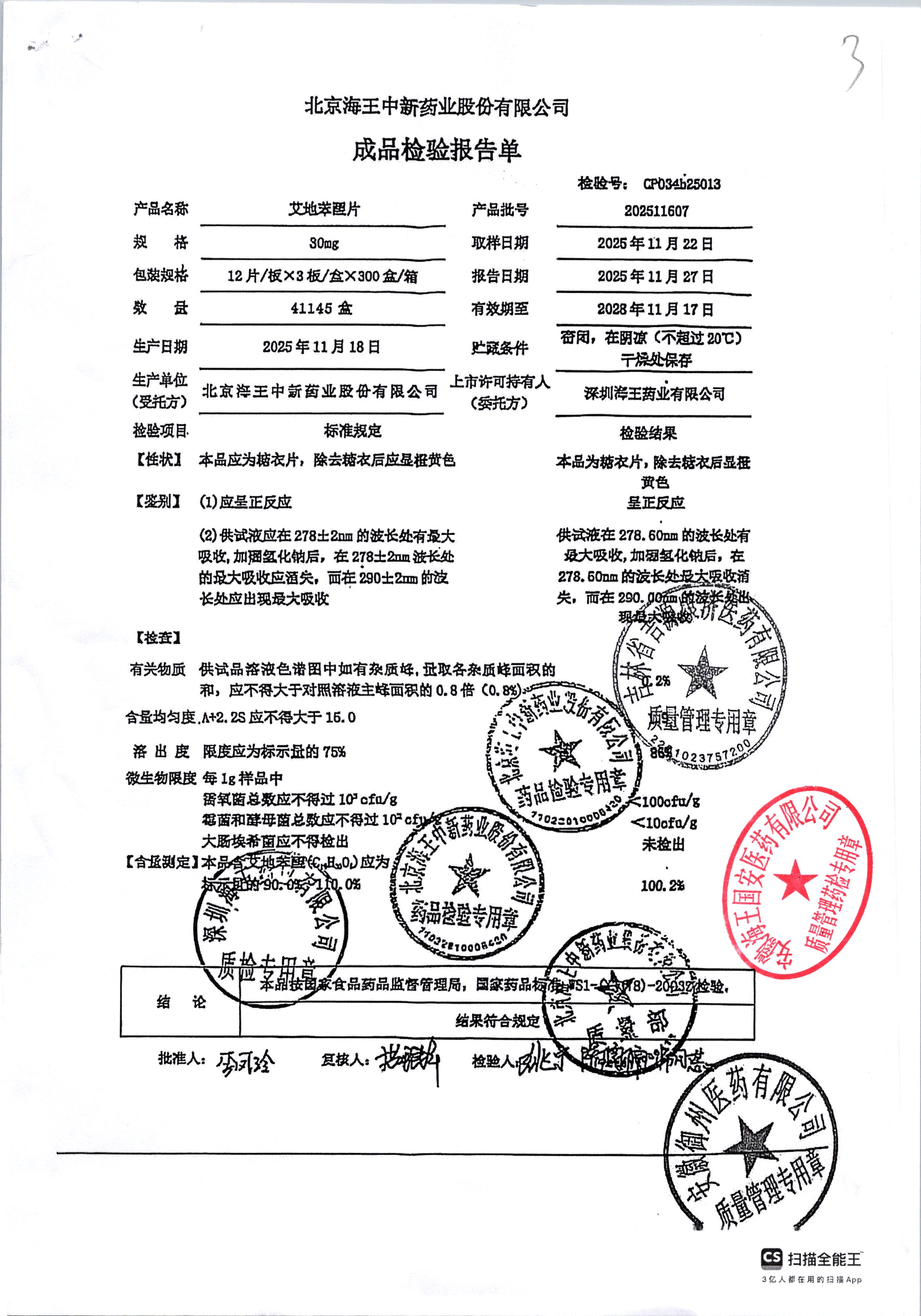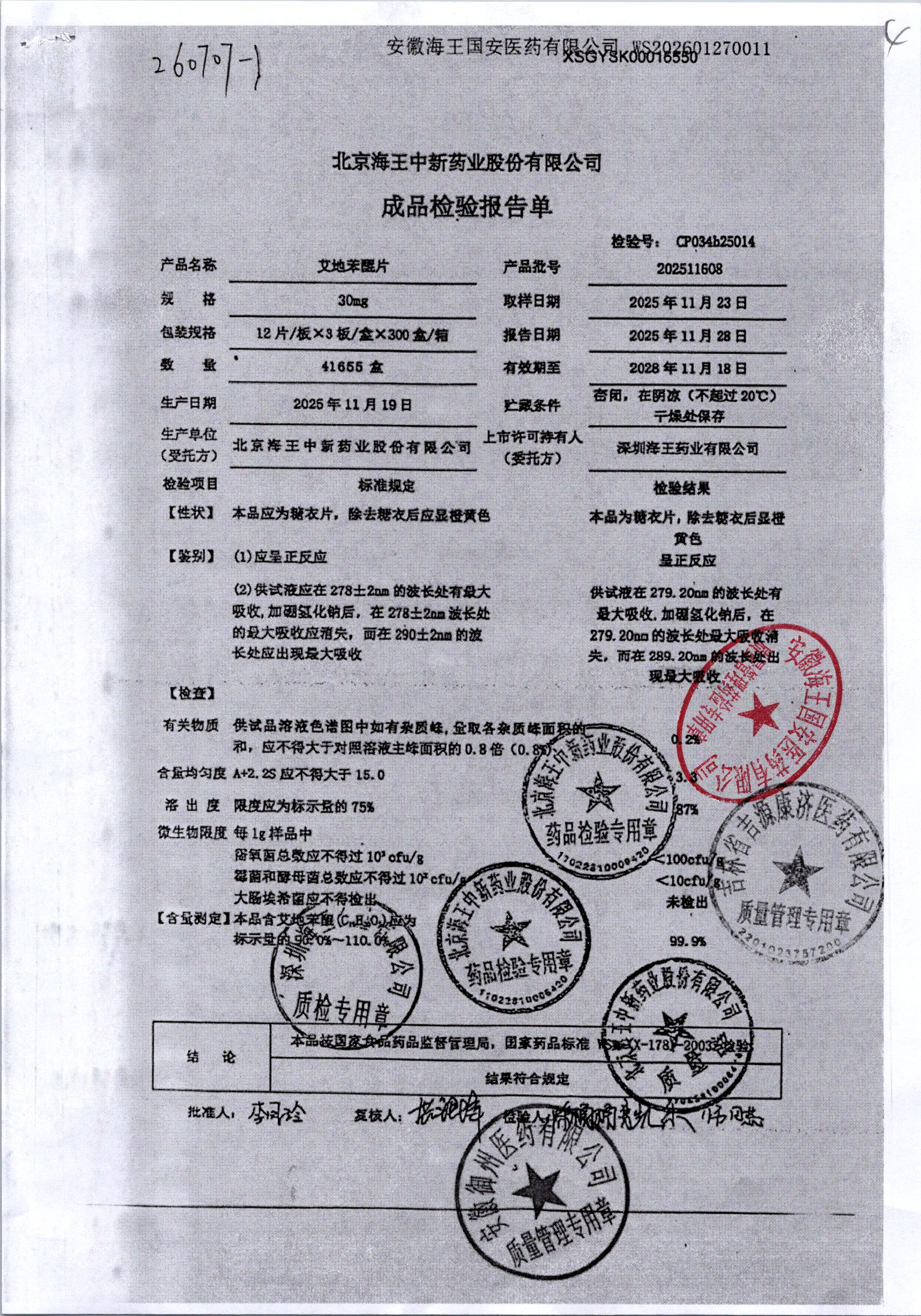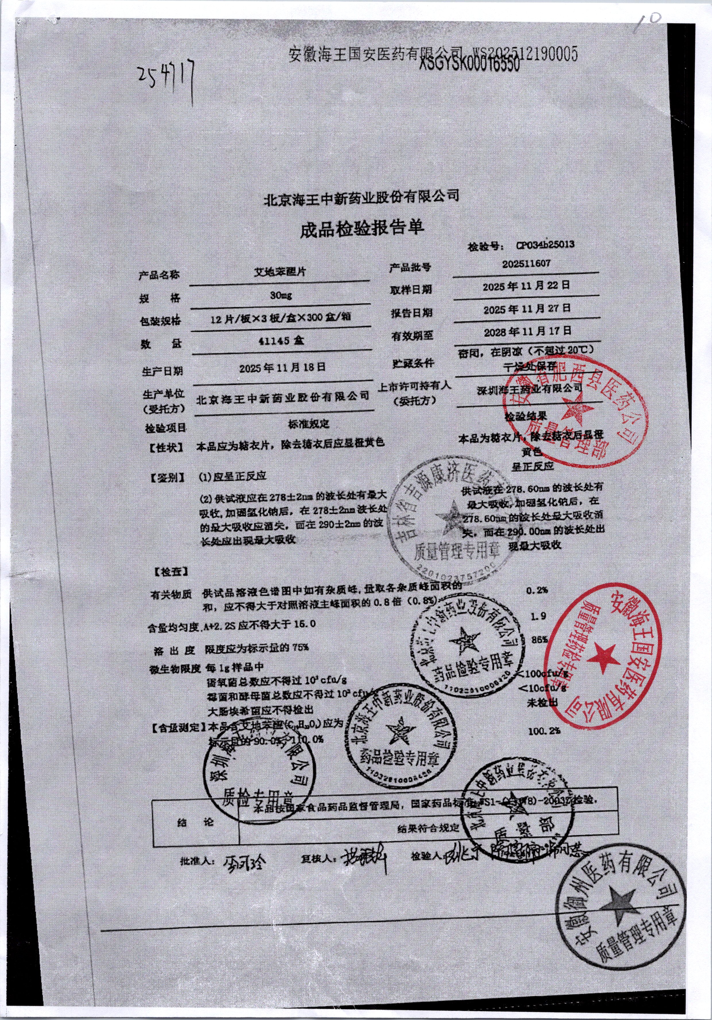 | 艾地苯醌片 | 30mg*12片 | 202410601/1 | 查看详情 |