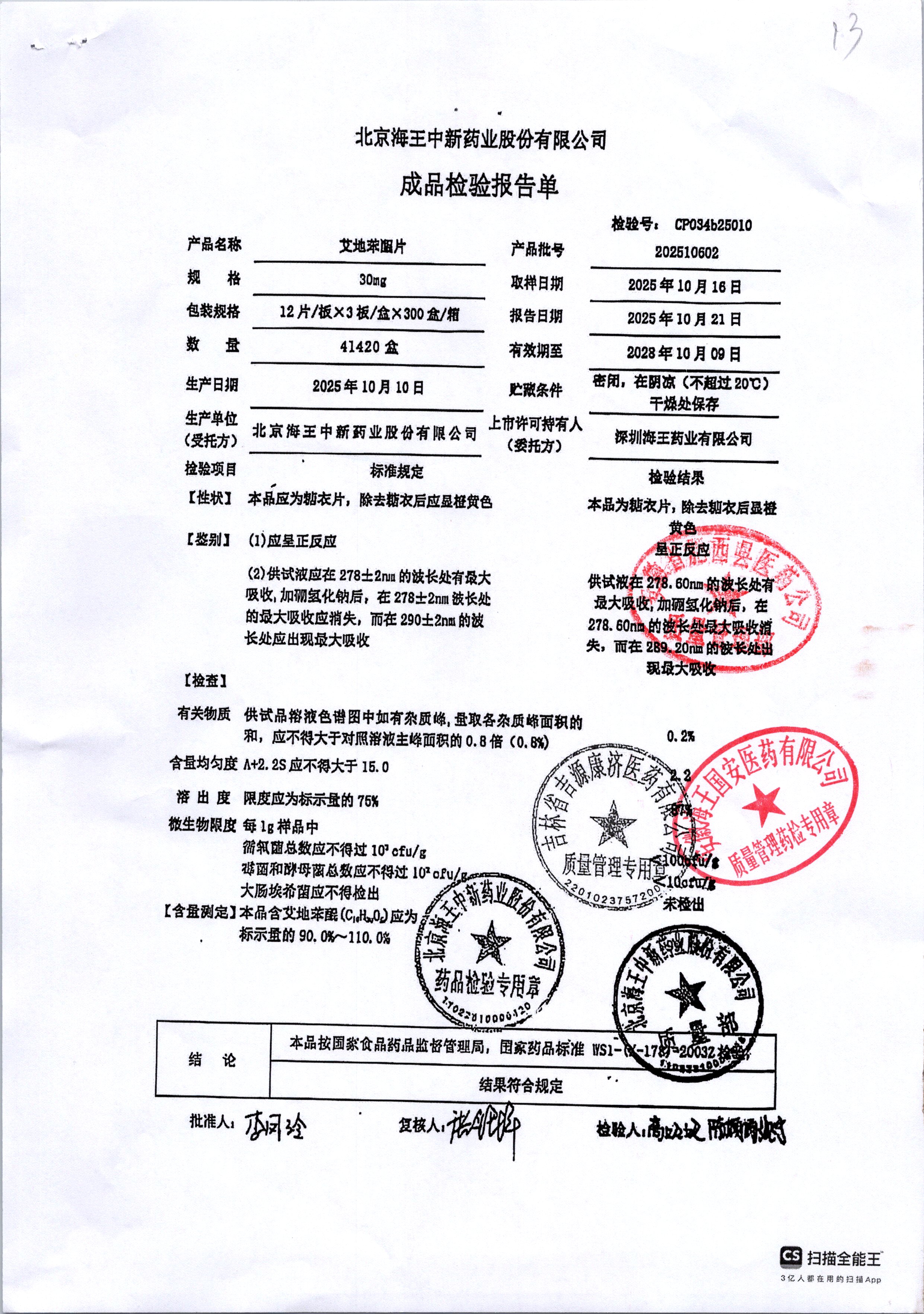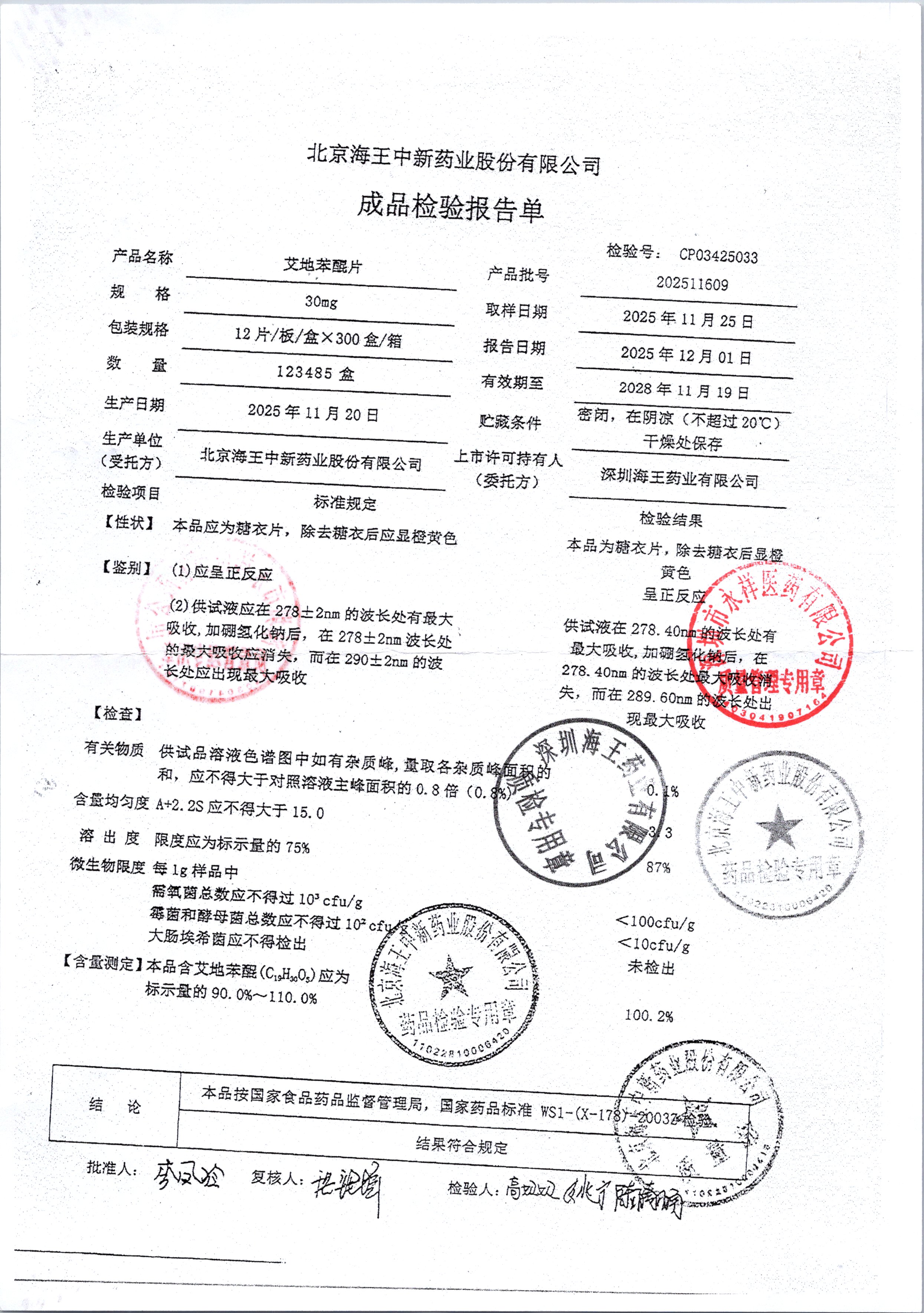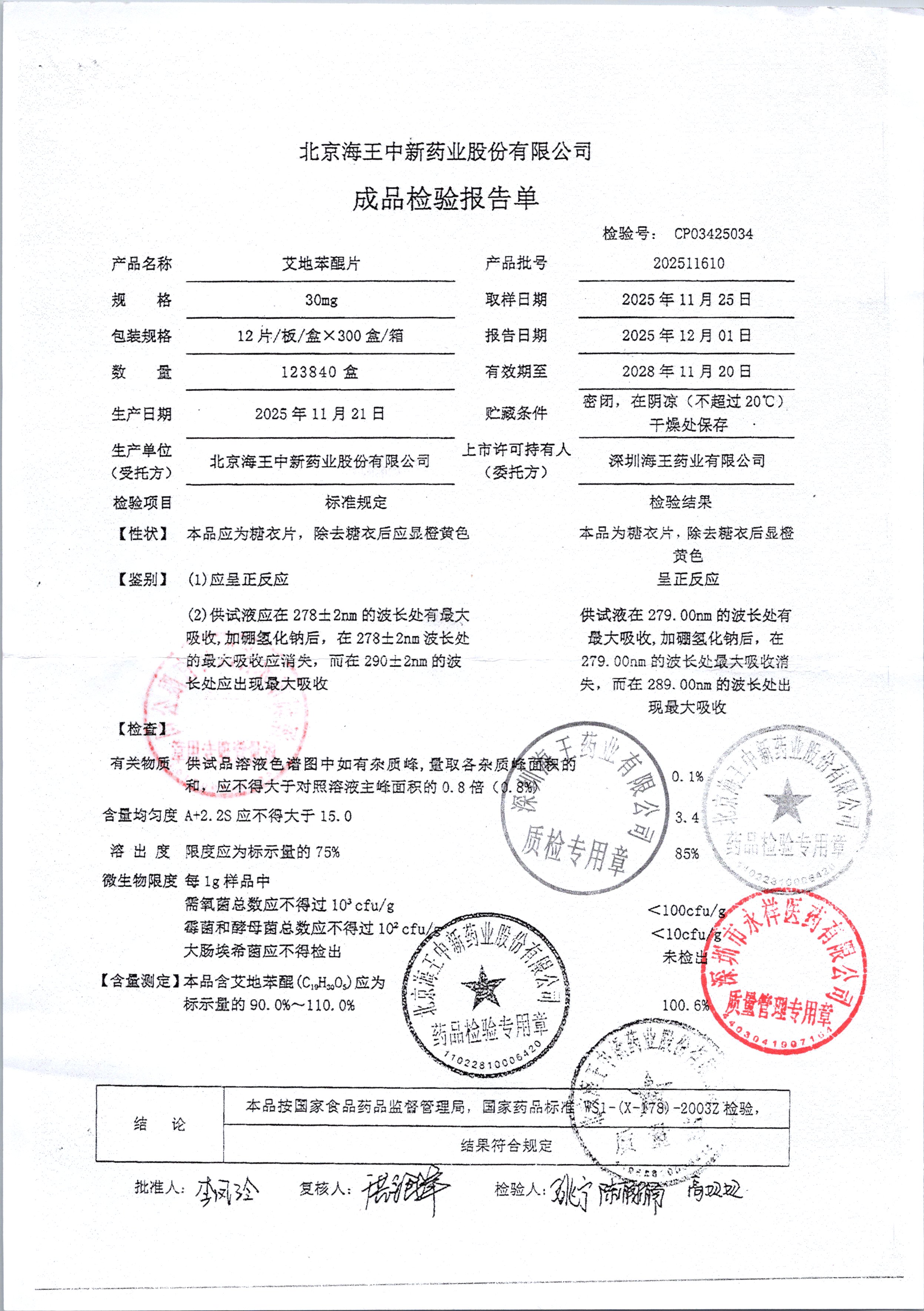 | 艾地苯醌片 | 30mg*12片 | 202410601/1 | 查看详情 |