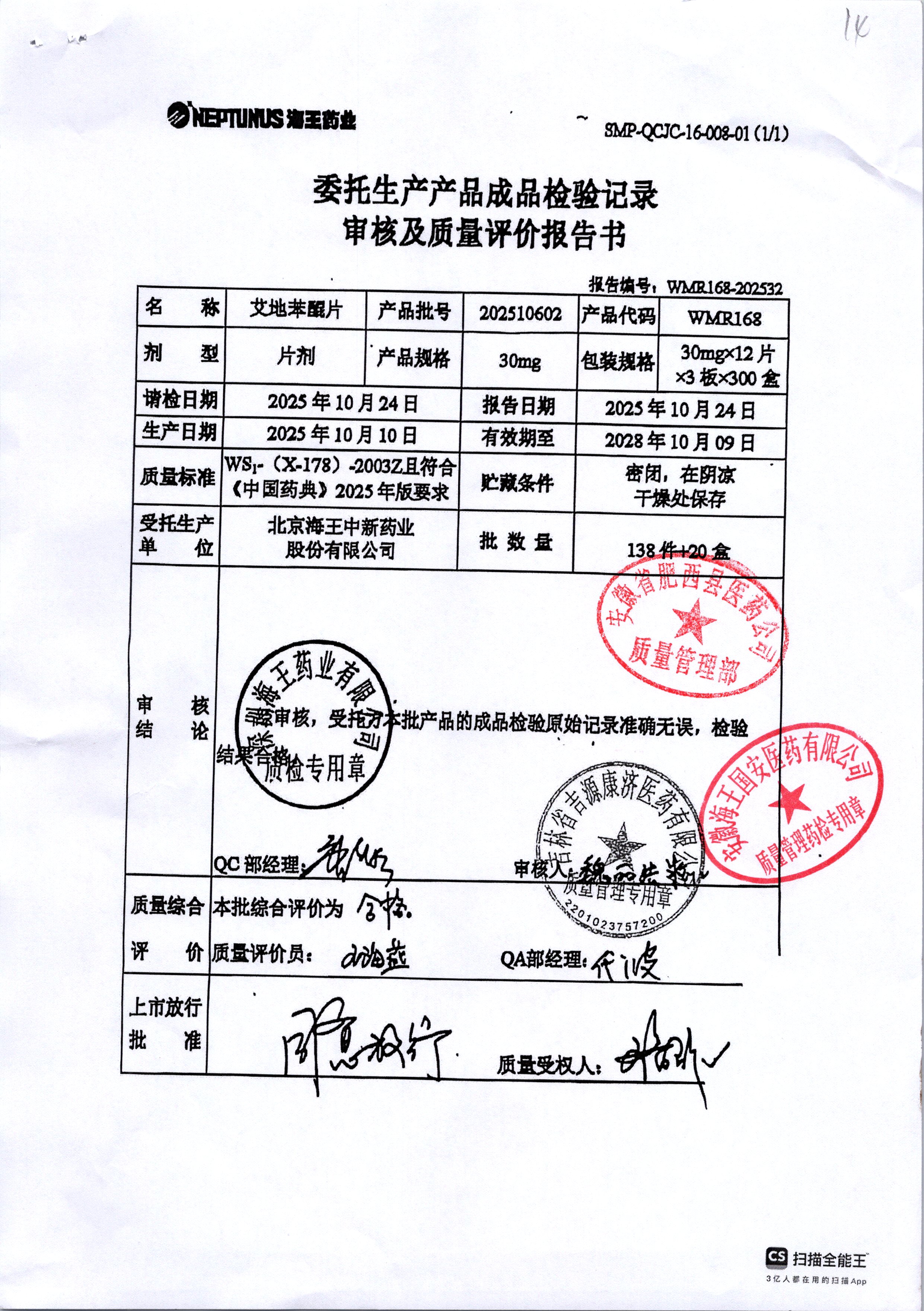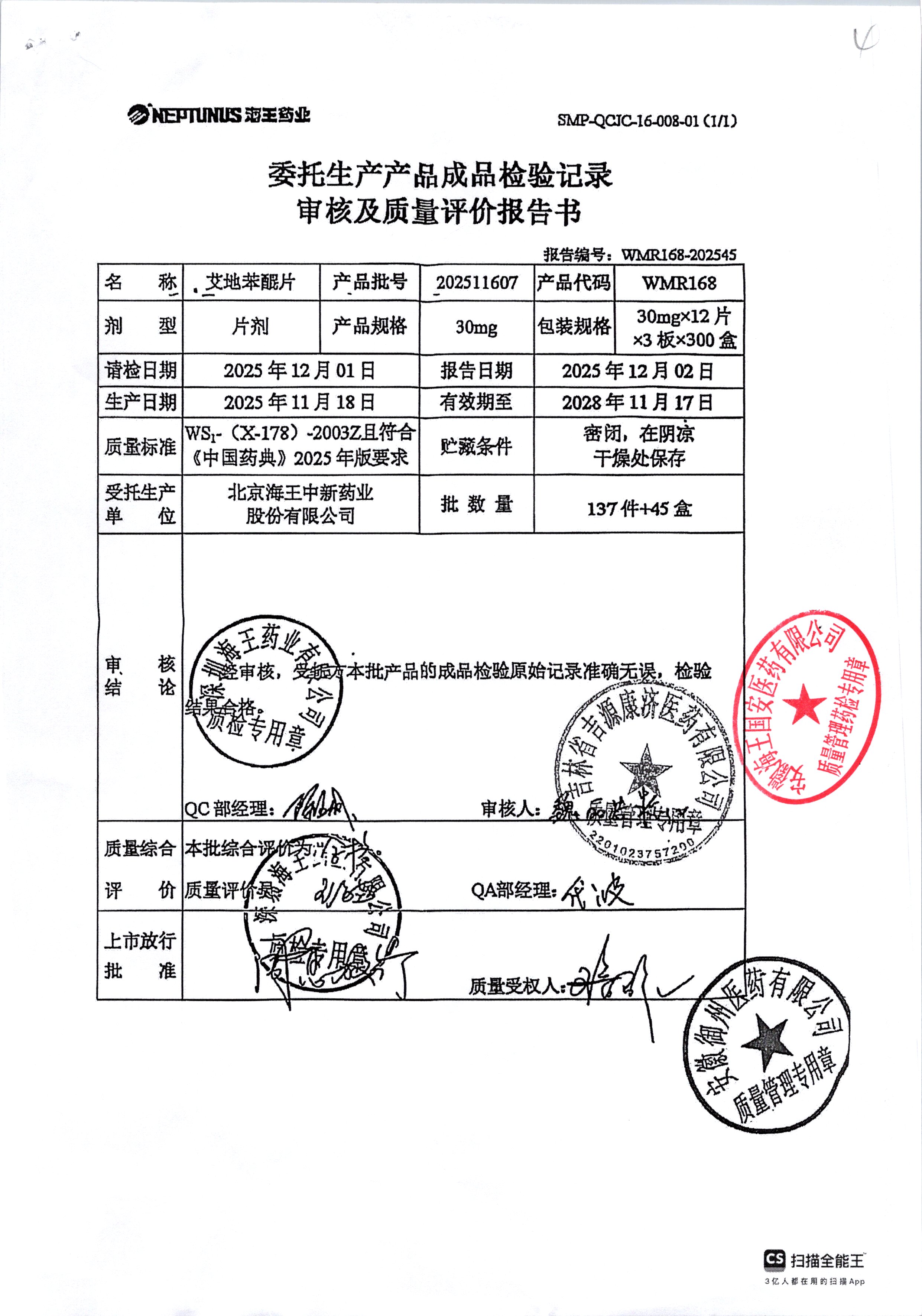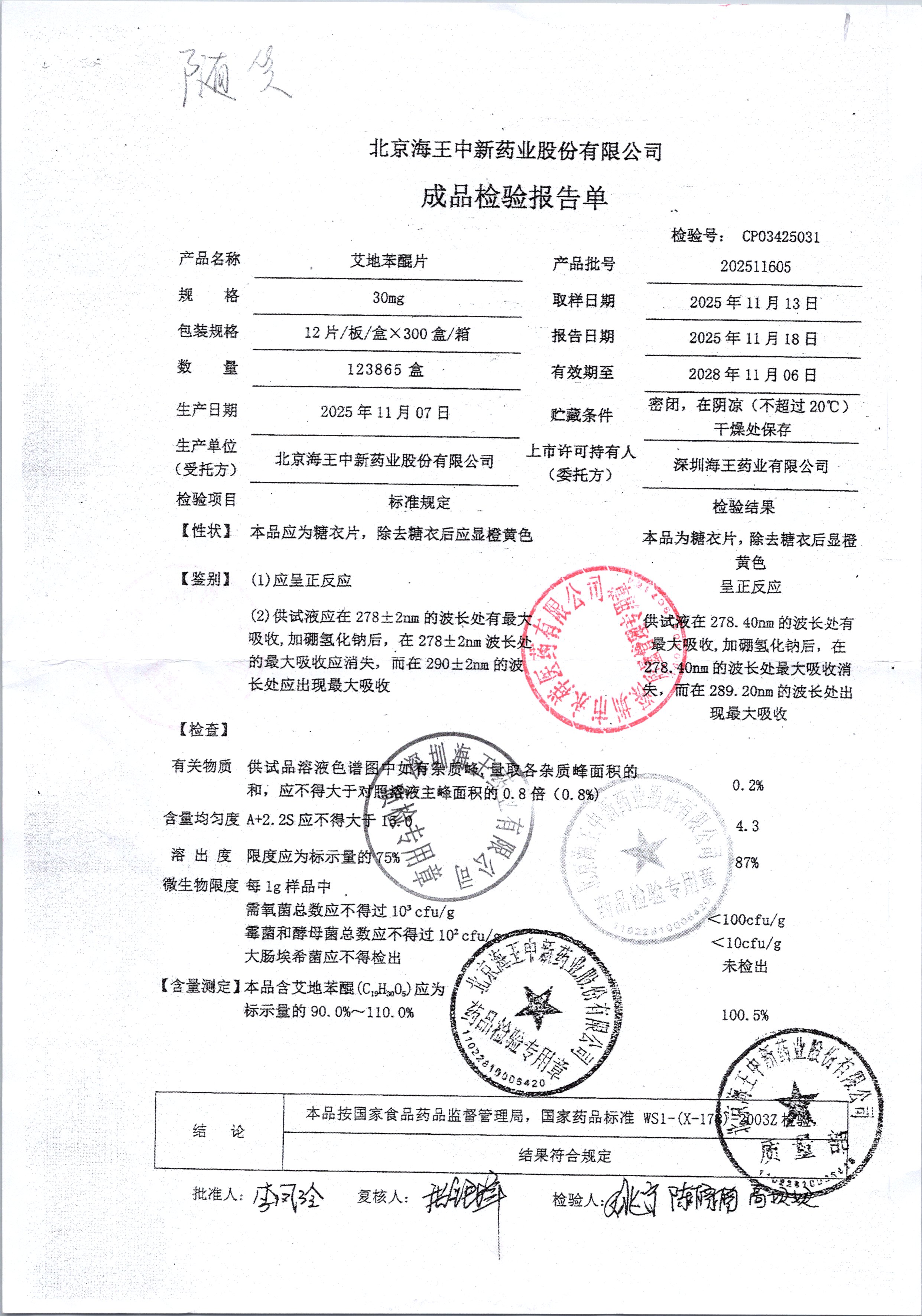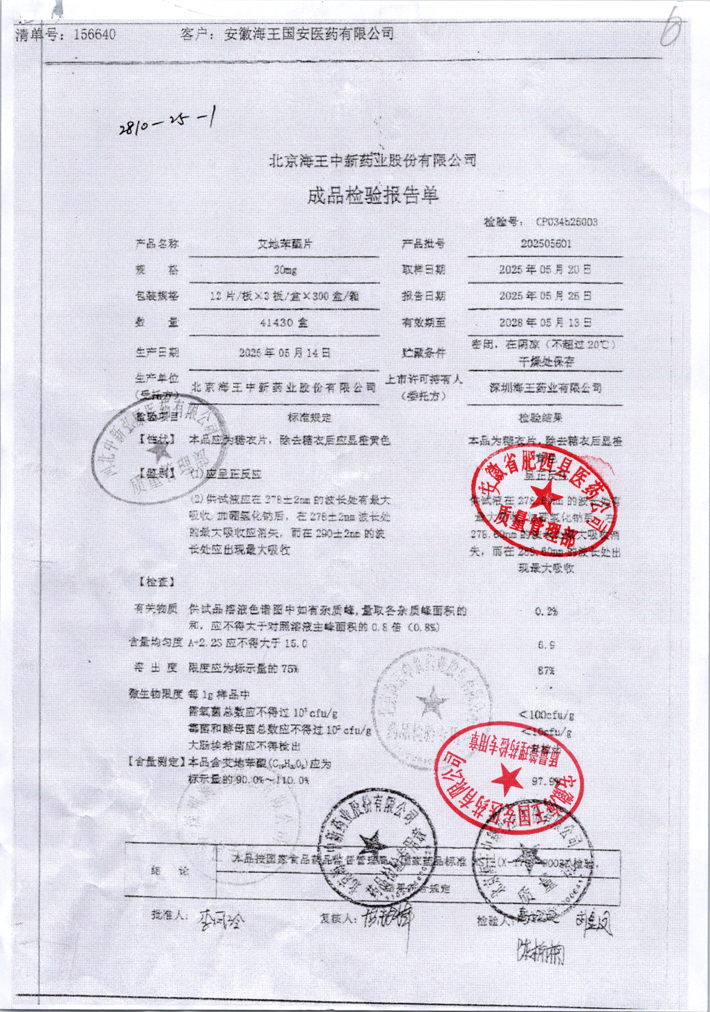 | 艾地苯醌片 | 30mg*12片 | 202410601/1 | 查看详情 |