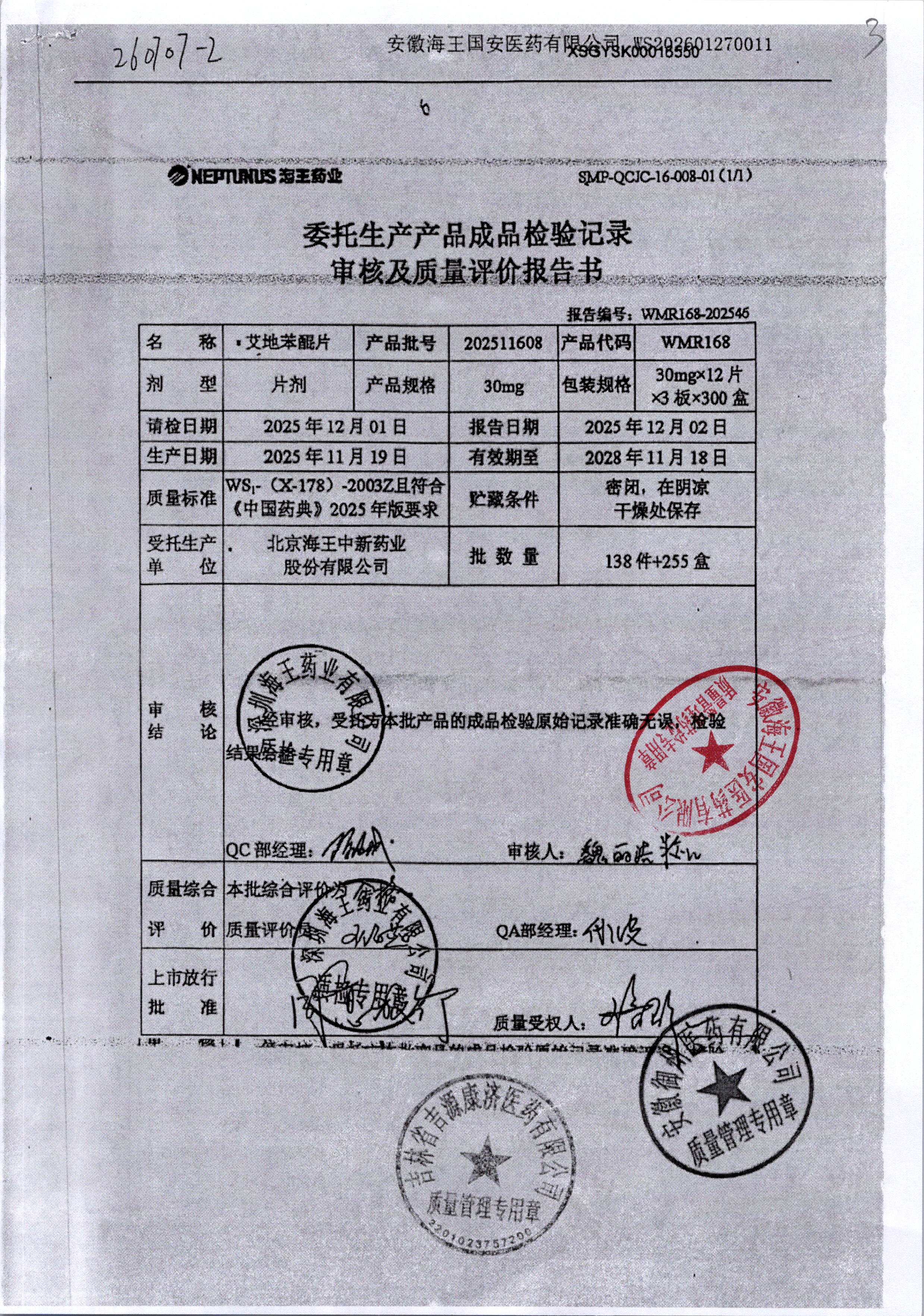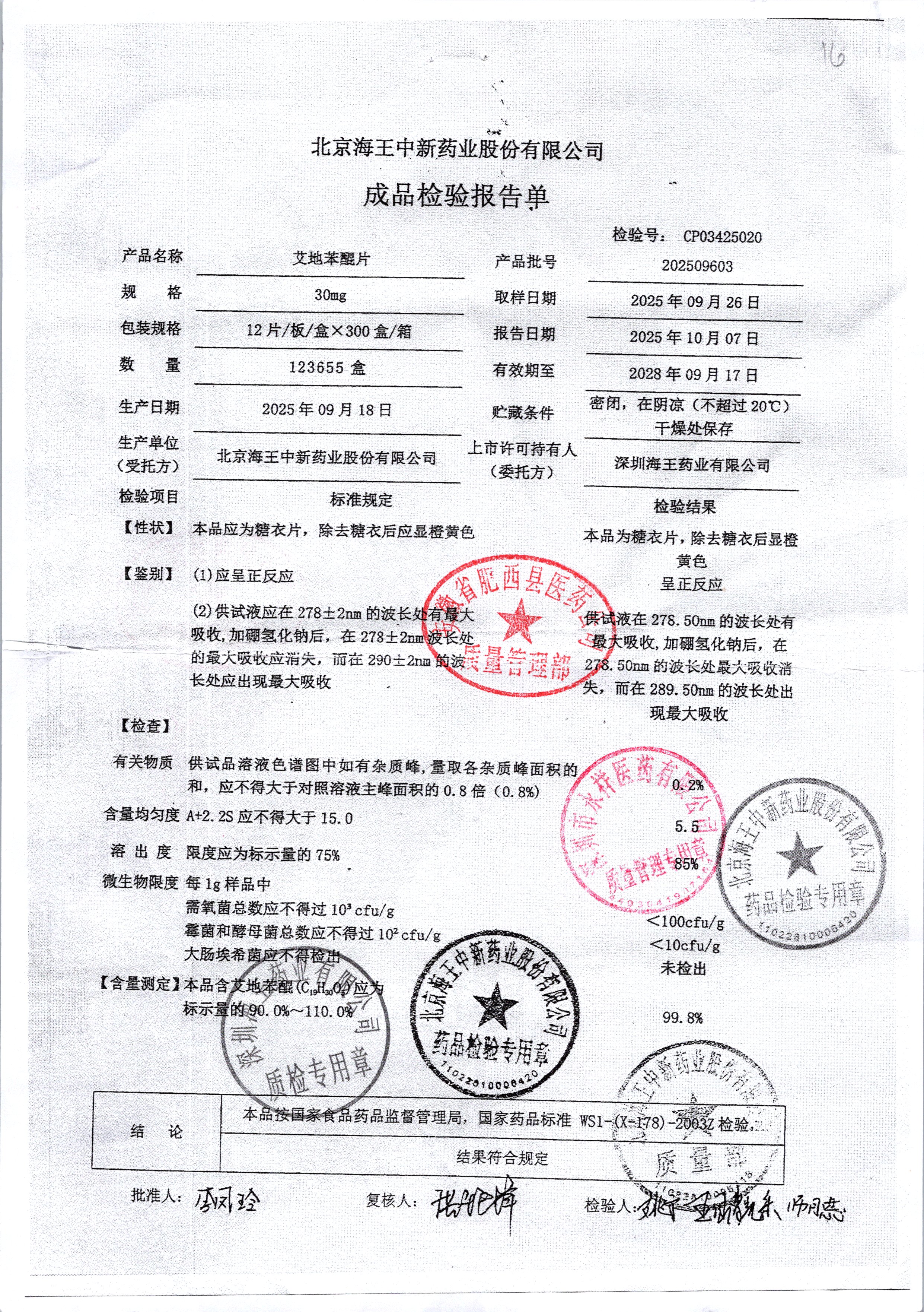 | 艾地苯醌片 | 30mg*12片 | 202509603/1 | 查看详情 |