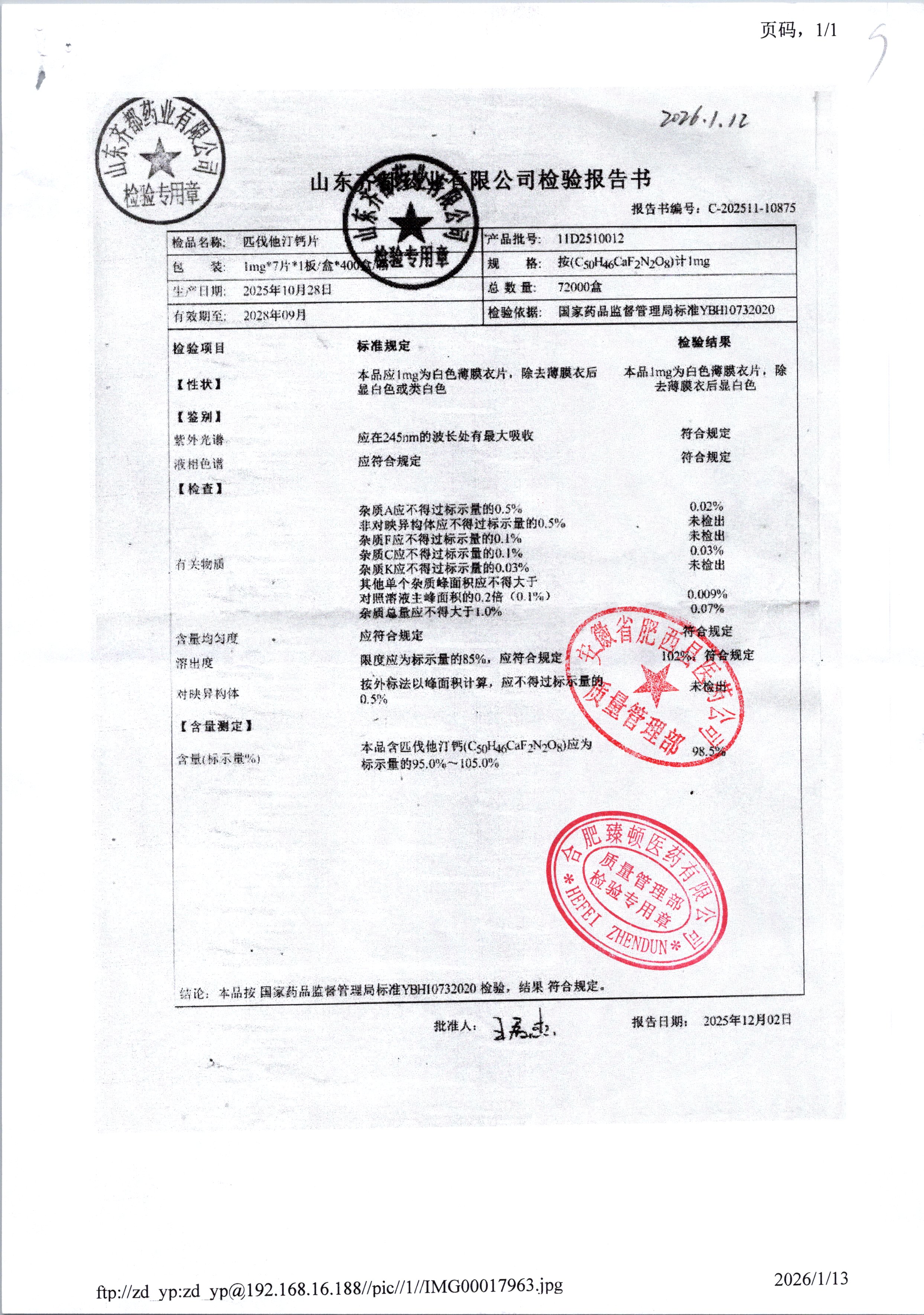 | 匹伐他汀钙片 | 1mg*7 | 11D2510012 | 查看详情 |