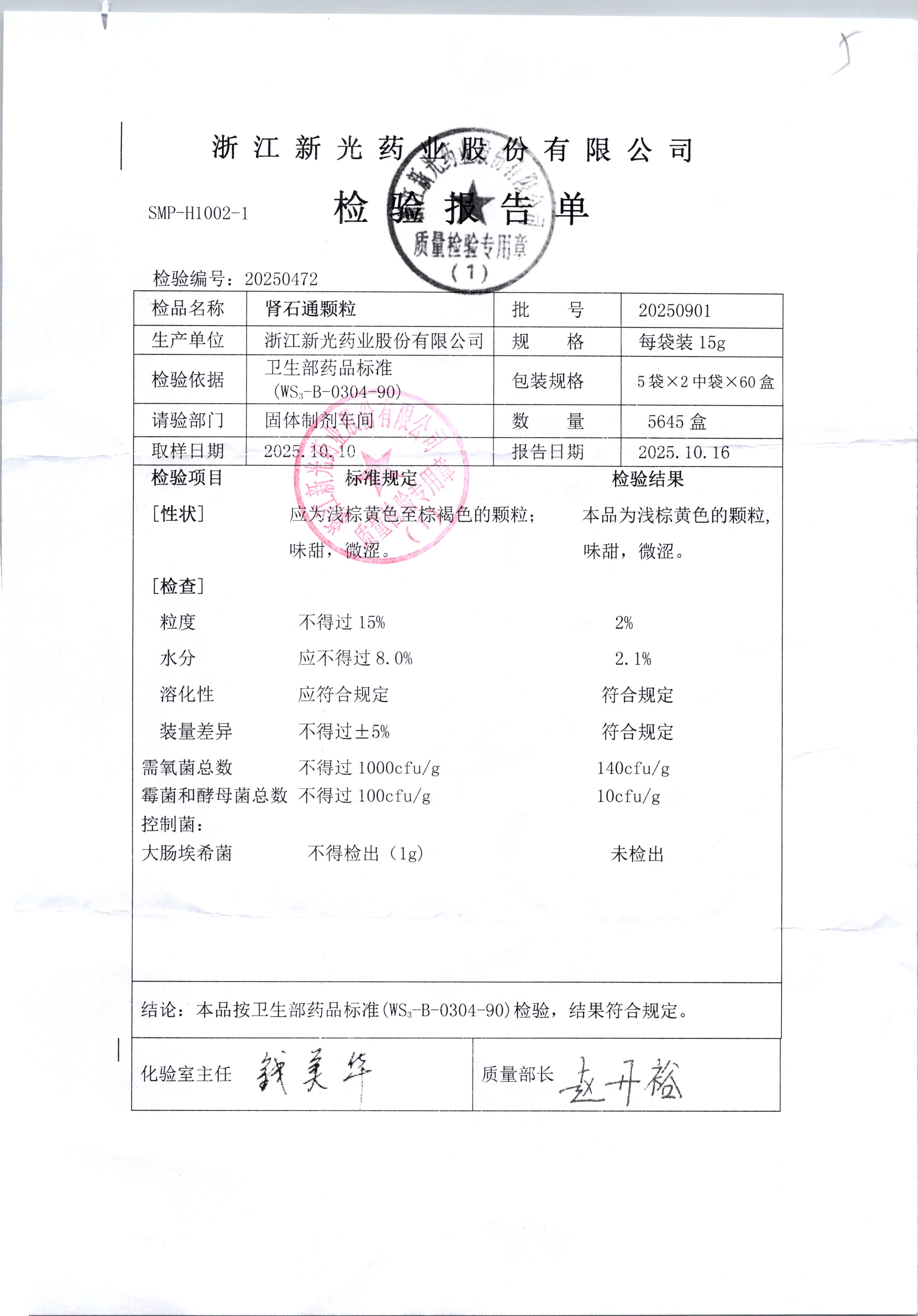 | 肾石通颗粒 | 15g*10袋 | 20250901 | 查看详情 |
