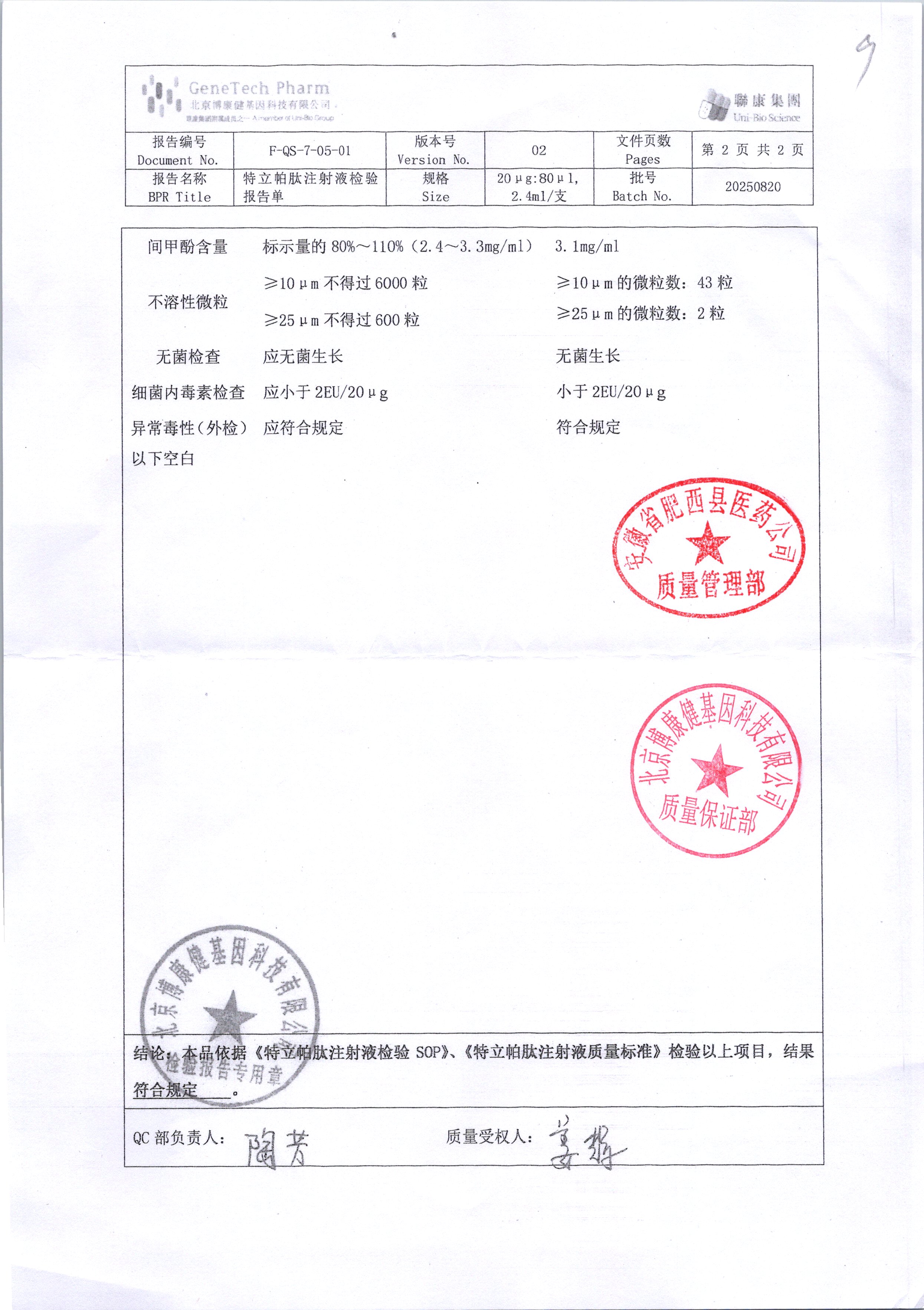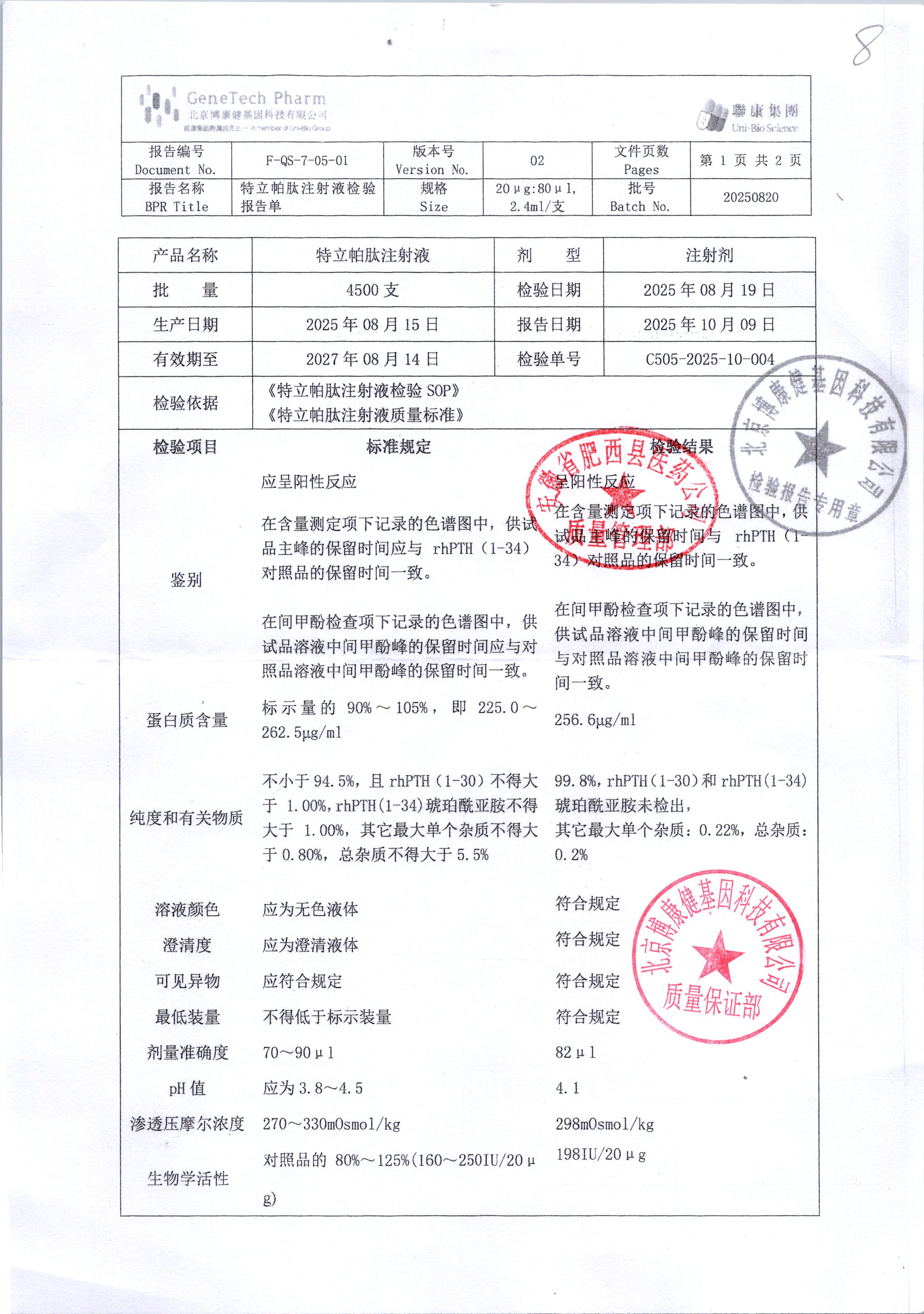 | 特立帕肽注射液 | 20ug:80ul | 20250101/2 | 查看详情 |