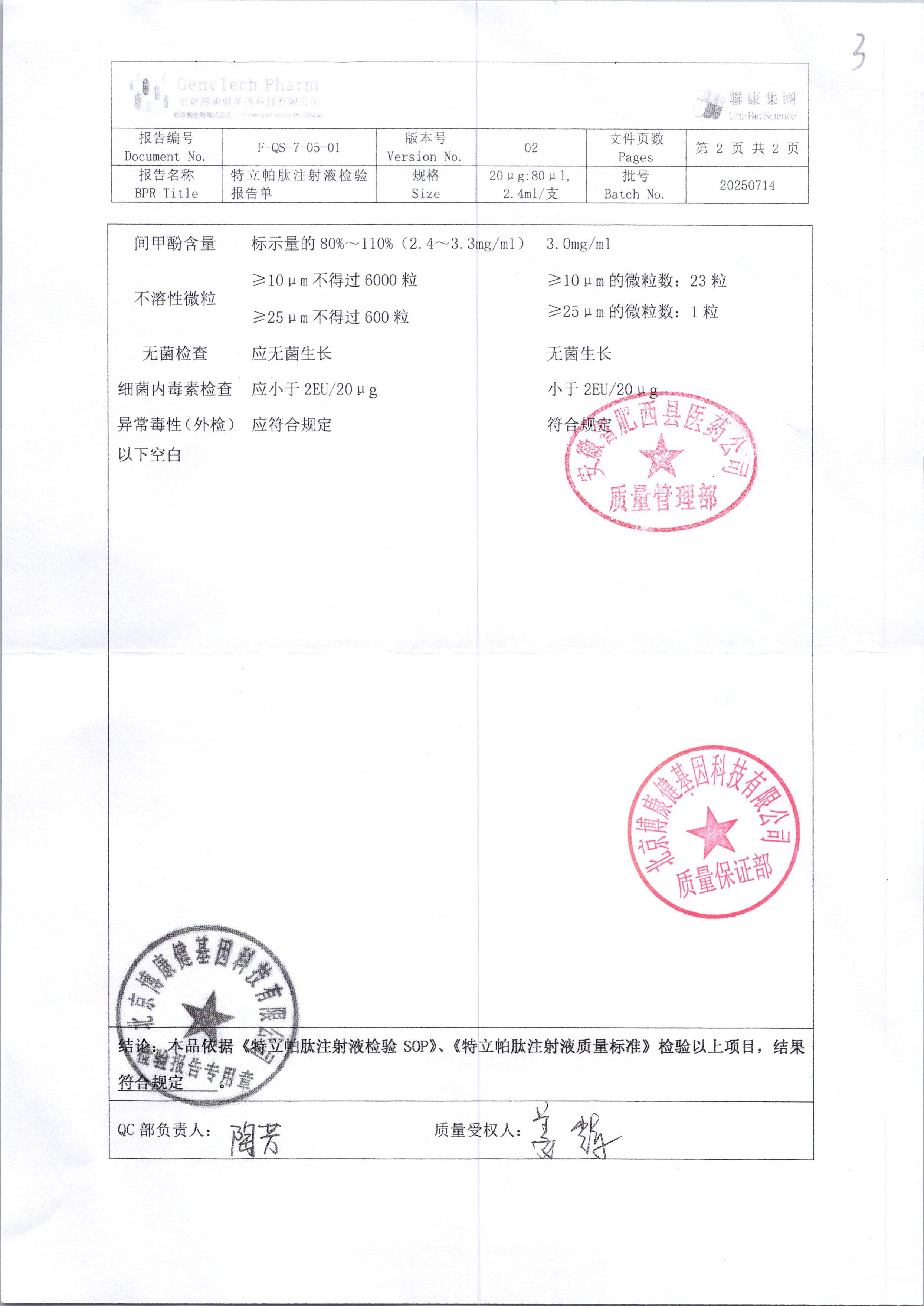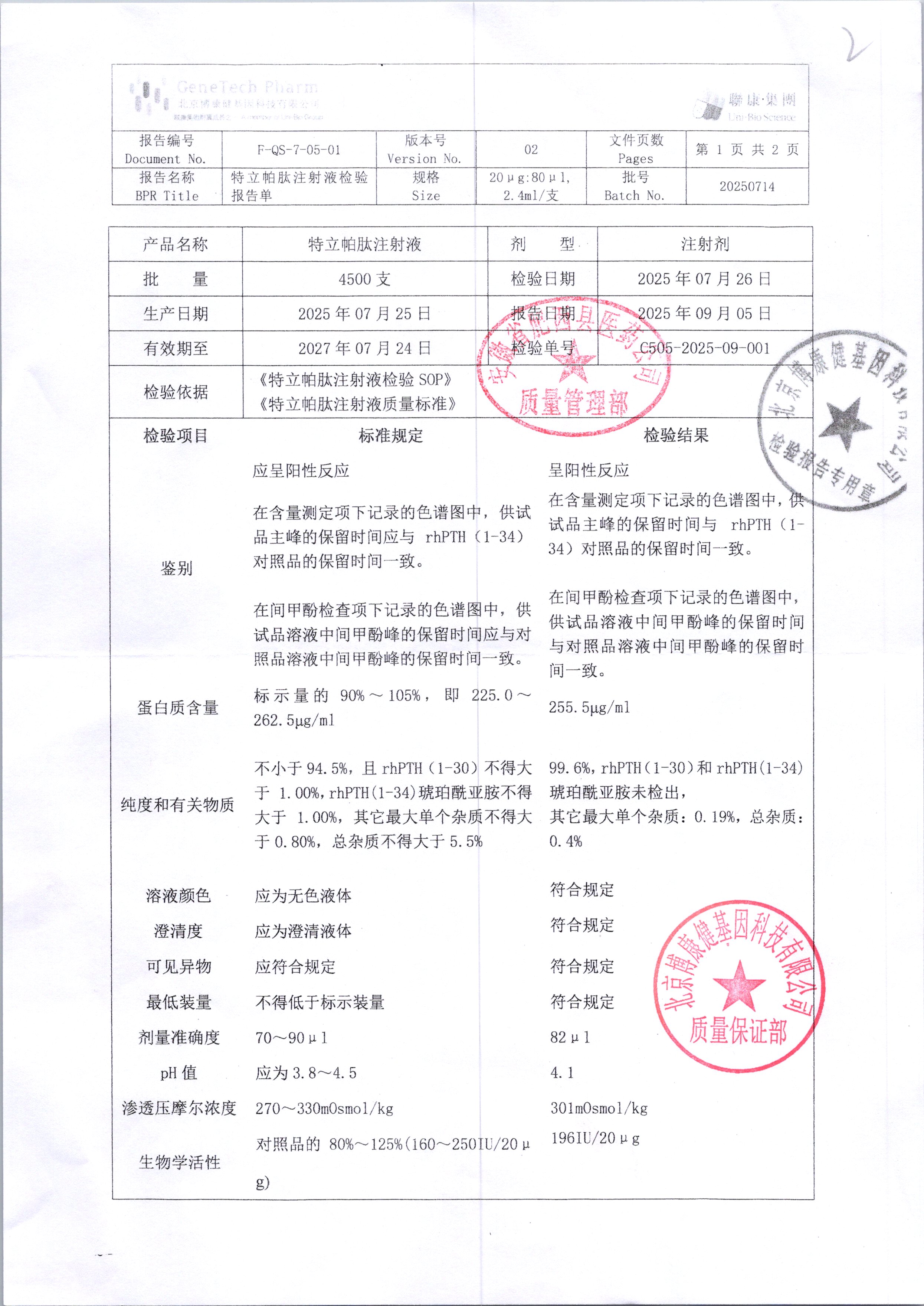 | 特立帕肽注射液 | 20ug:80ul | 20250714/2 | 查看详情 |