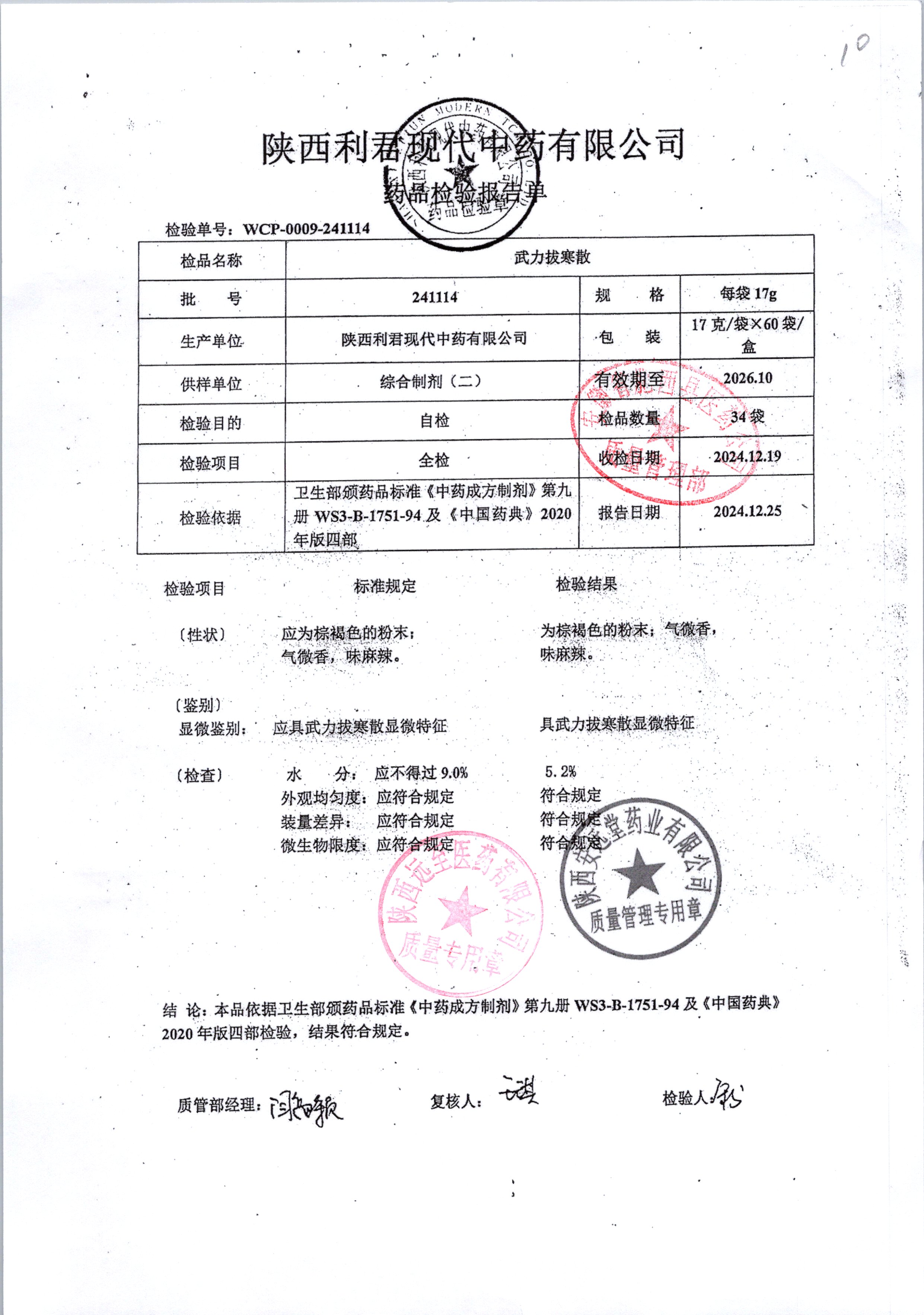 | 武力拔寒散 | 17g *60袋 | 240111 | 查看详情 |