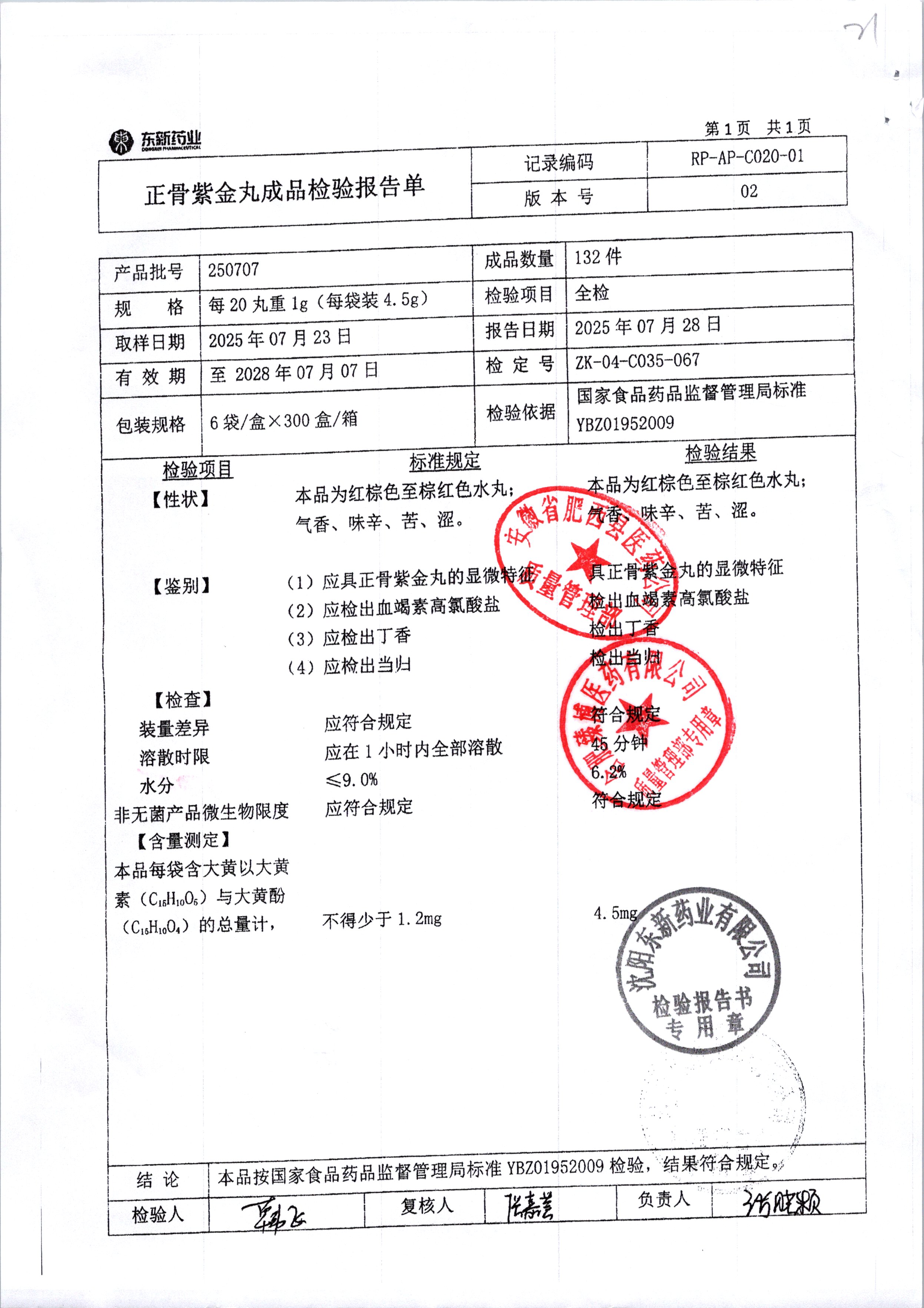 药检报告