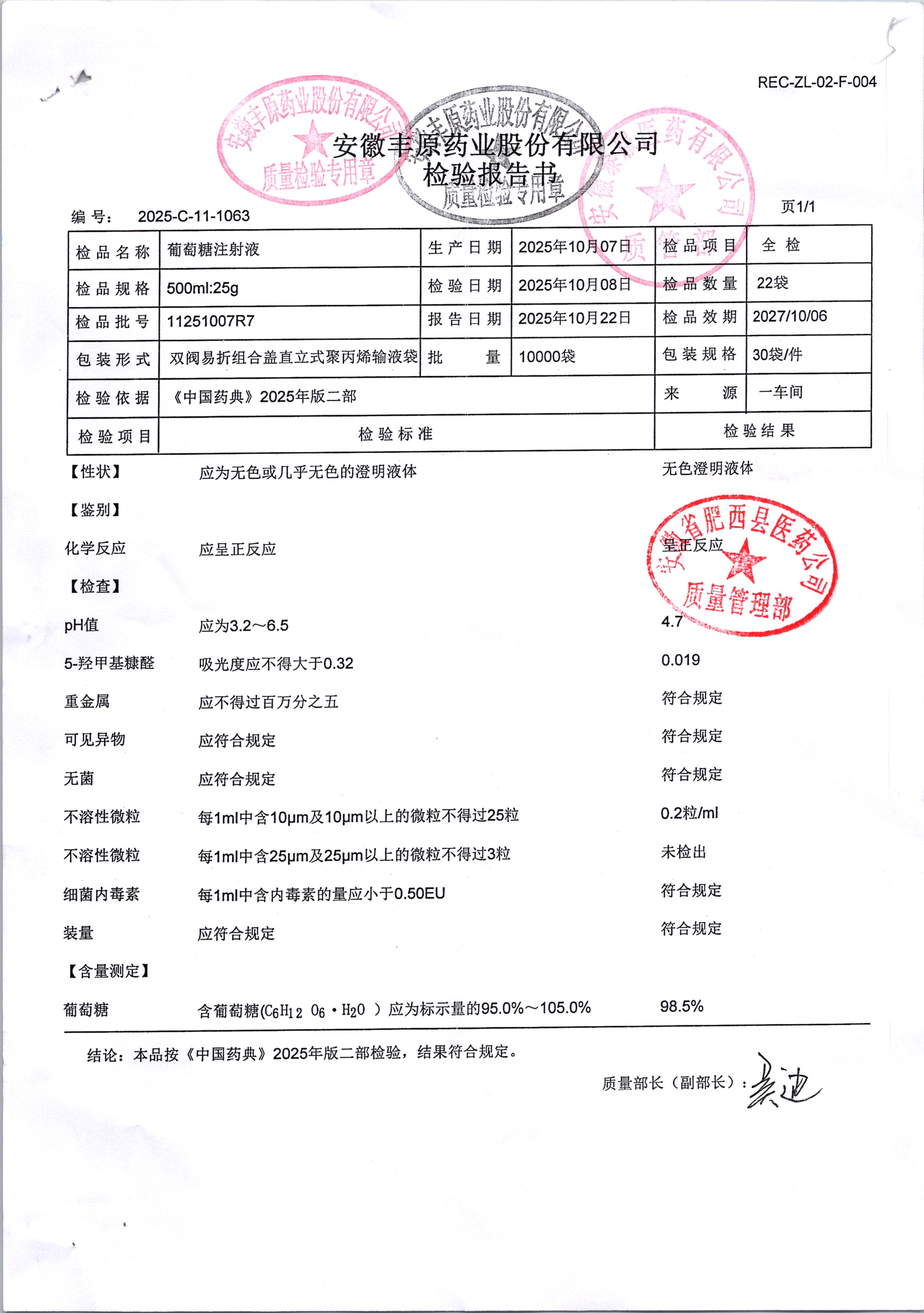 药检报告