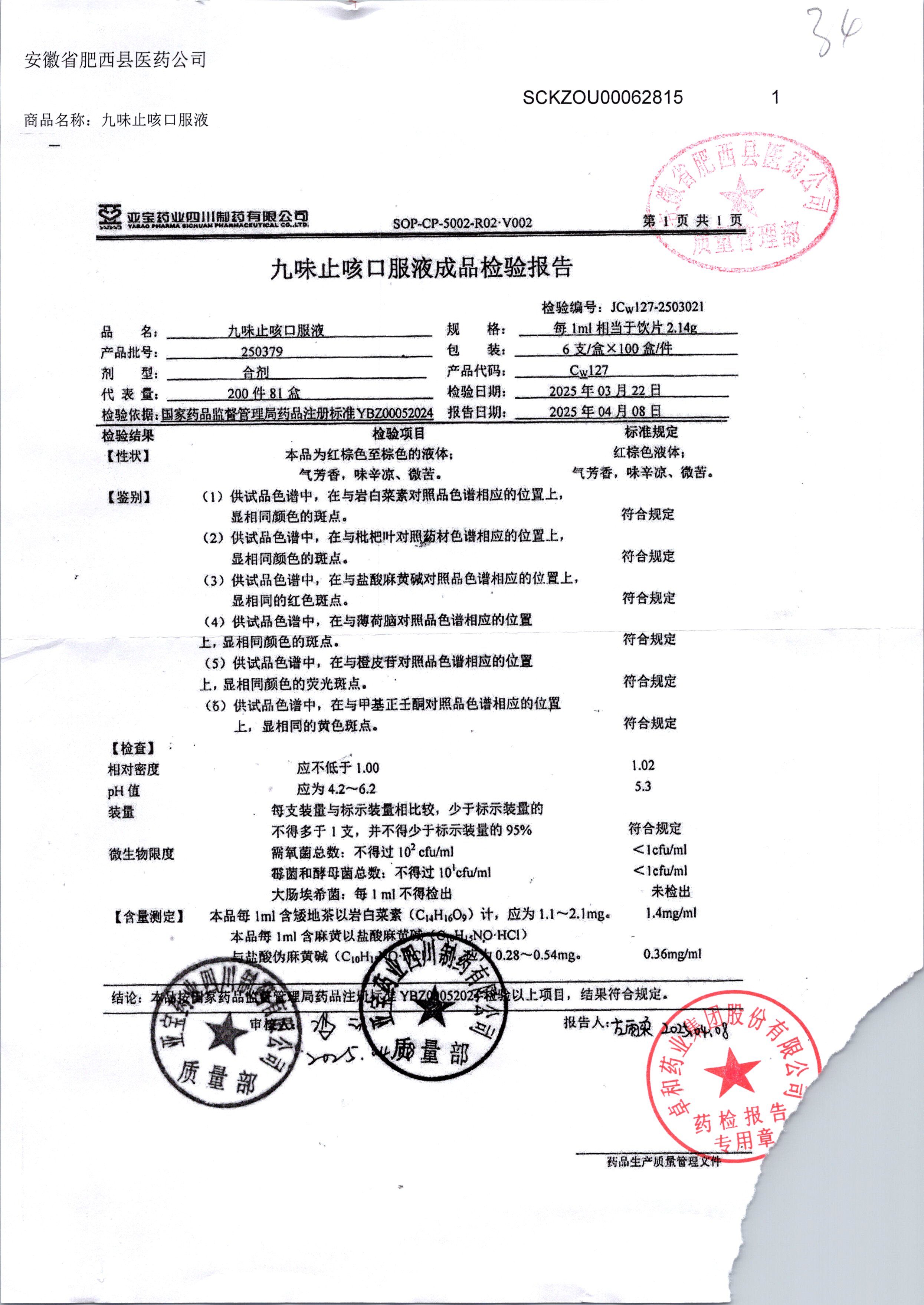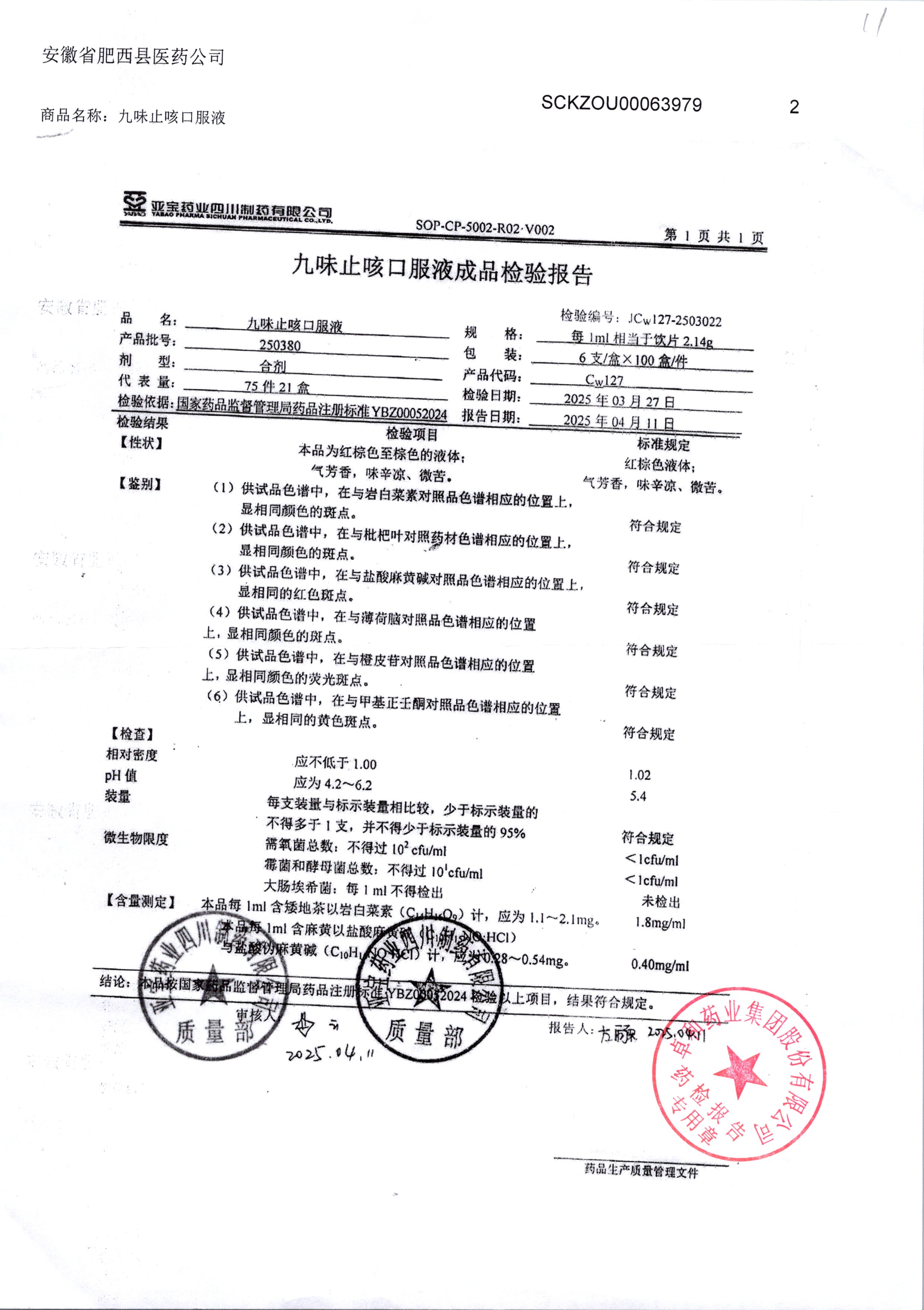 药检报告
