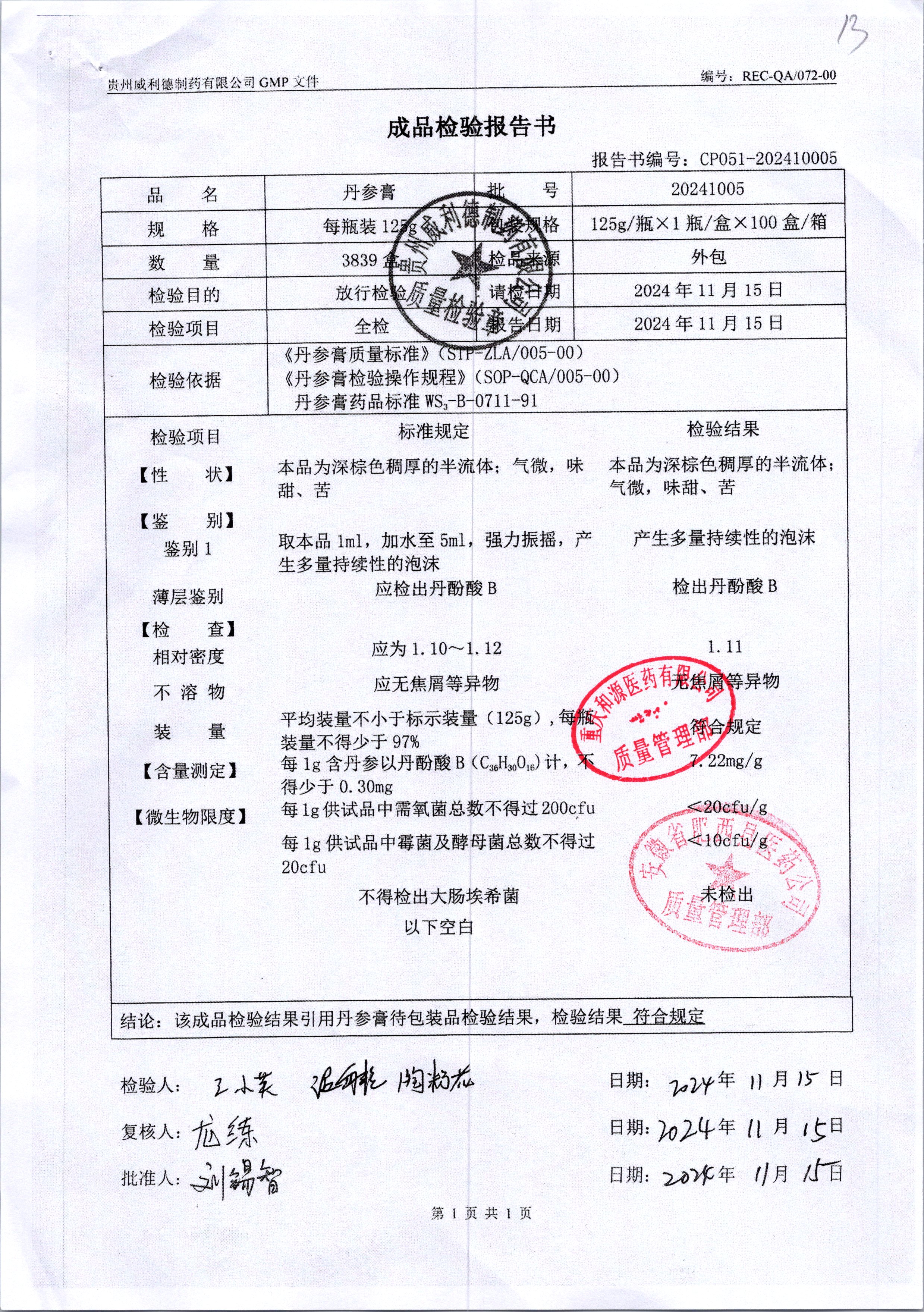 | 丹参膏 | 125g | 20241005 | 查看详情 |