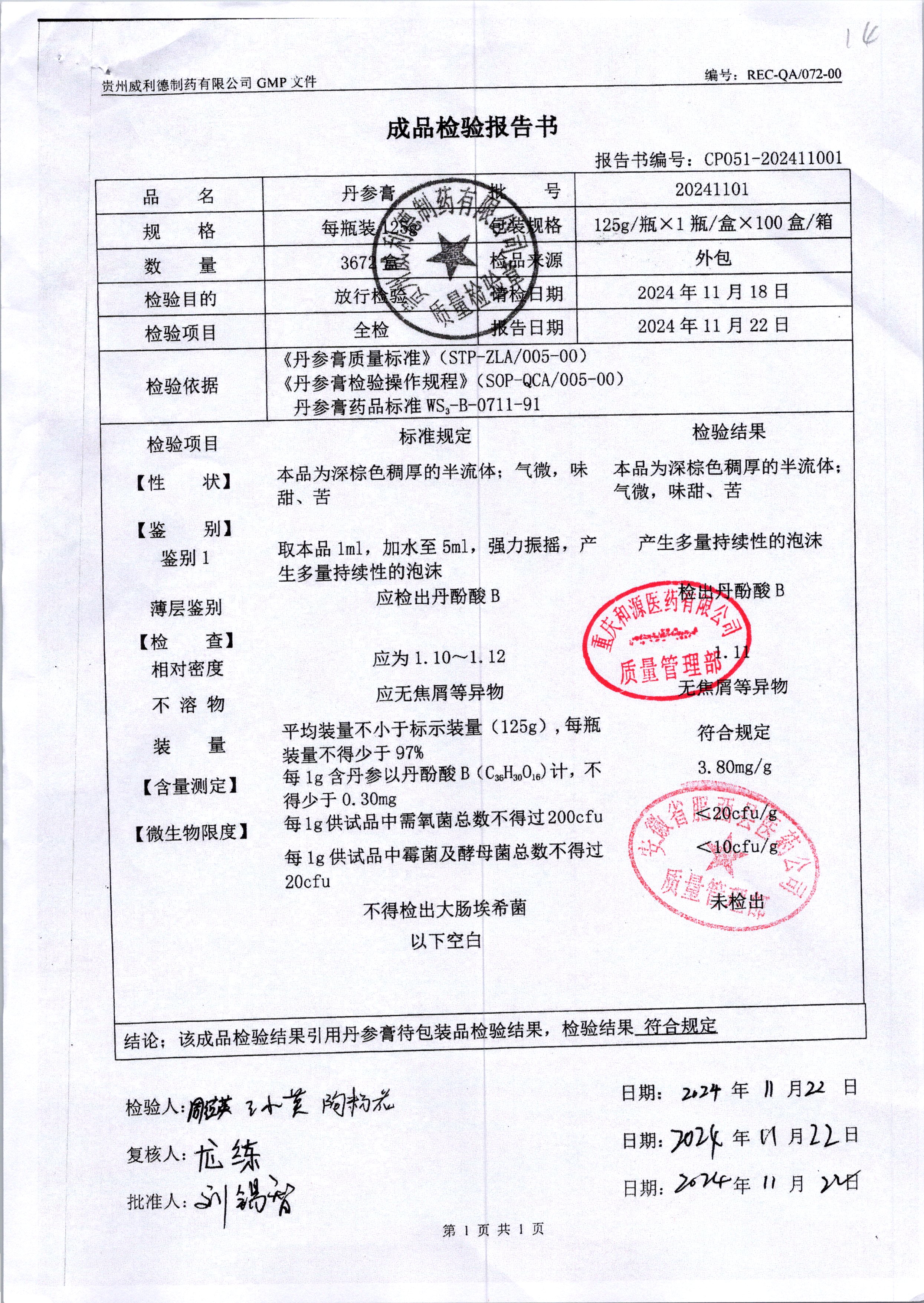 | 丹参膏 | 125g | 20240911 | 查看详情 |