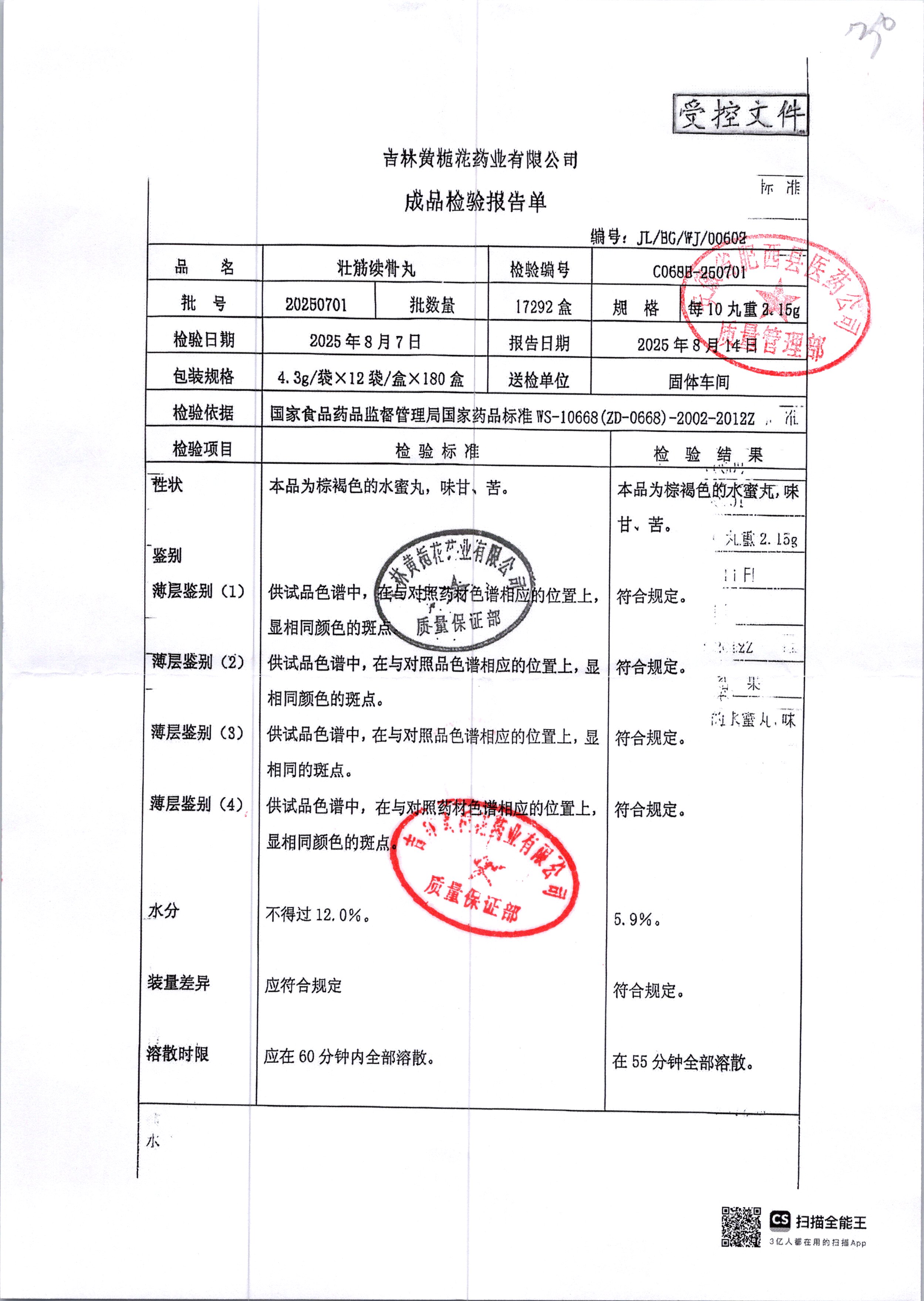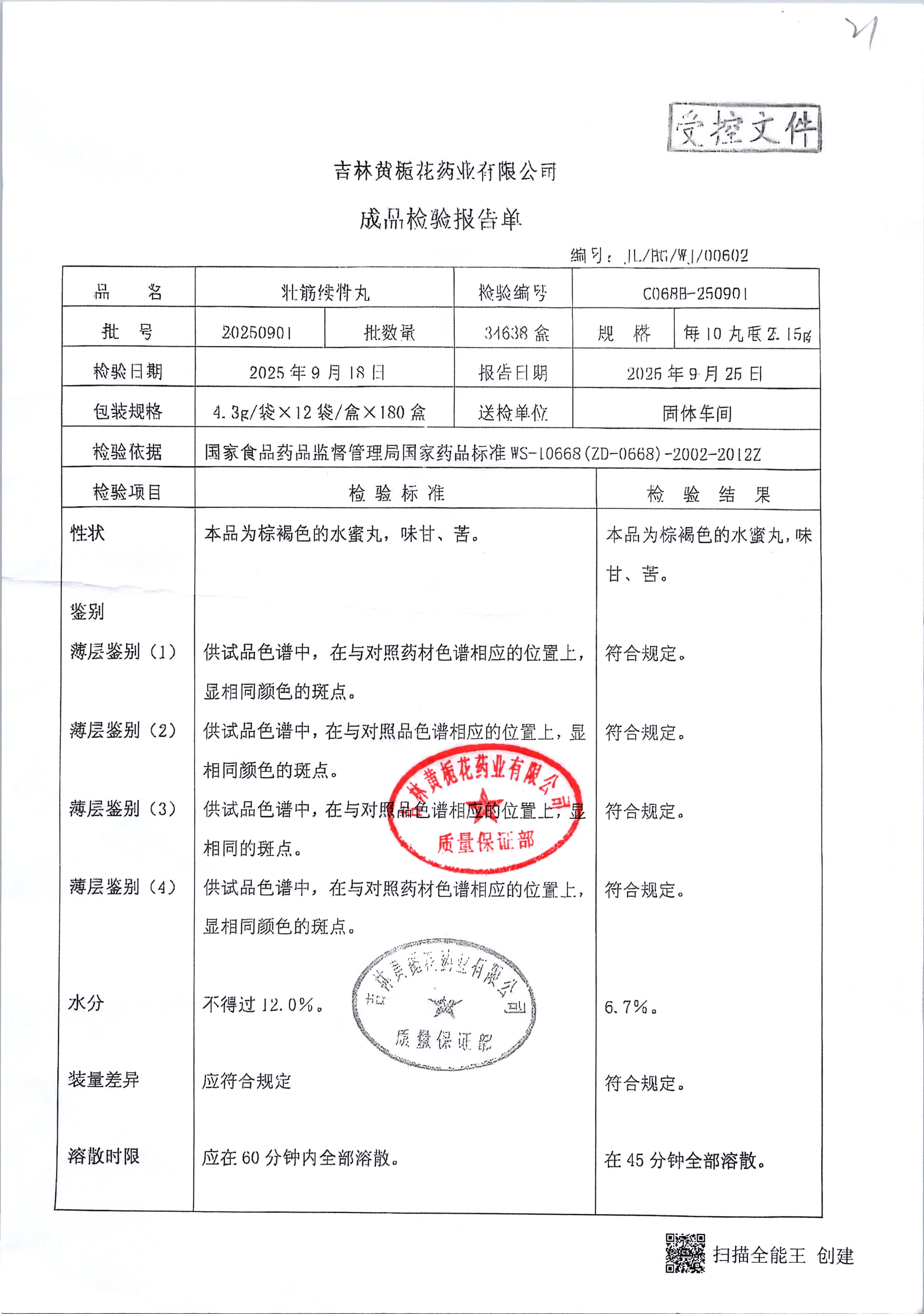 | 壮筋续骨丸 | 10丸2.15g | 20250604/2 | 查看详情 |