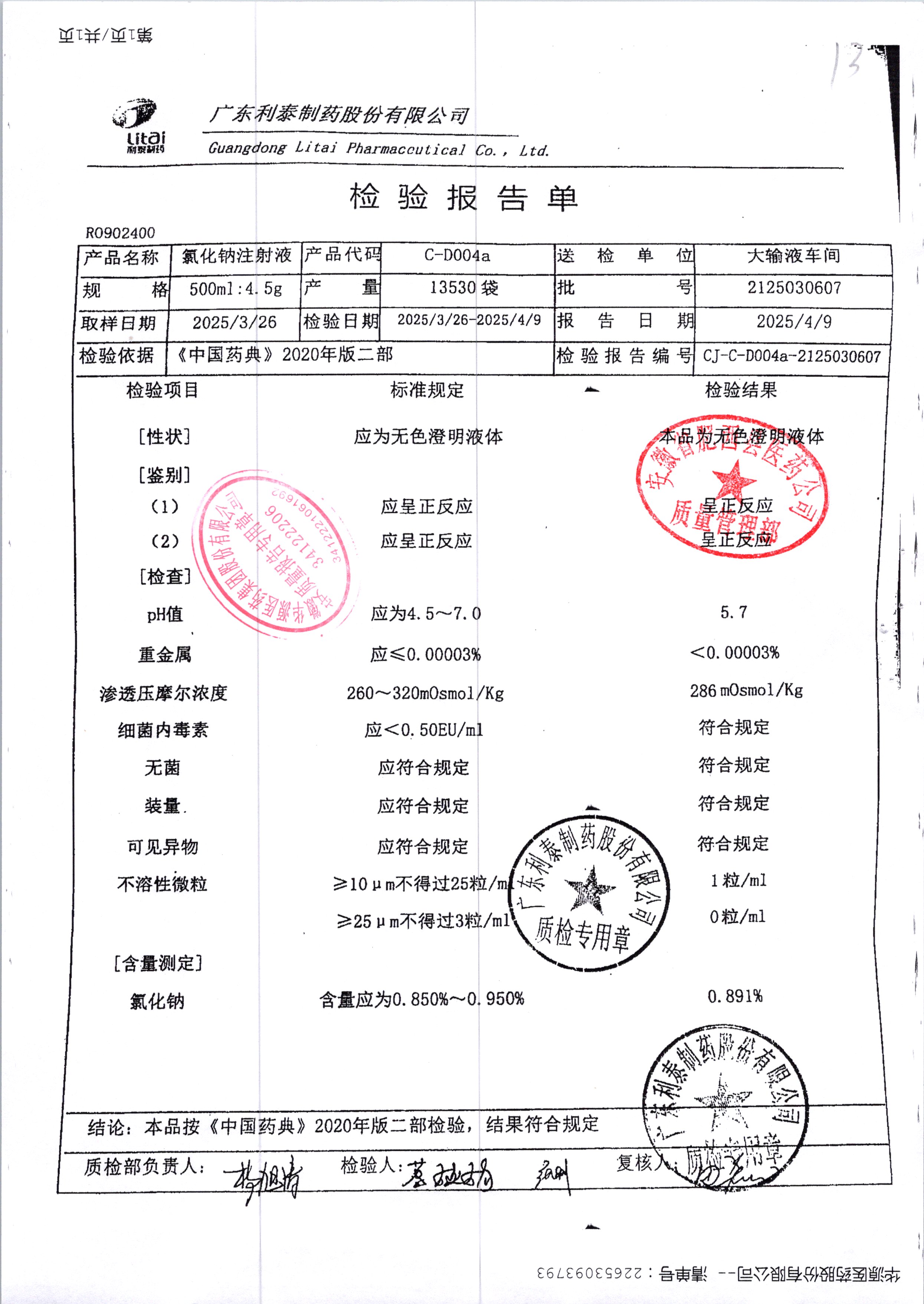 药检报告