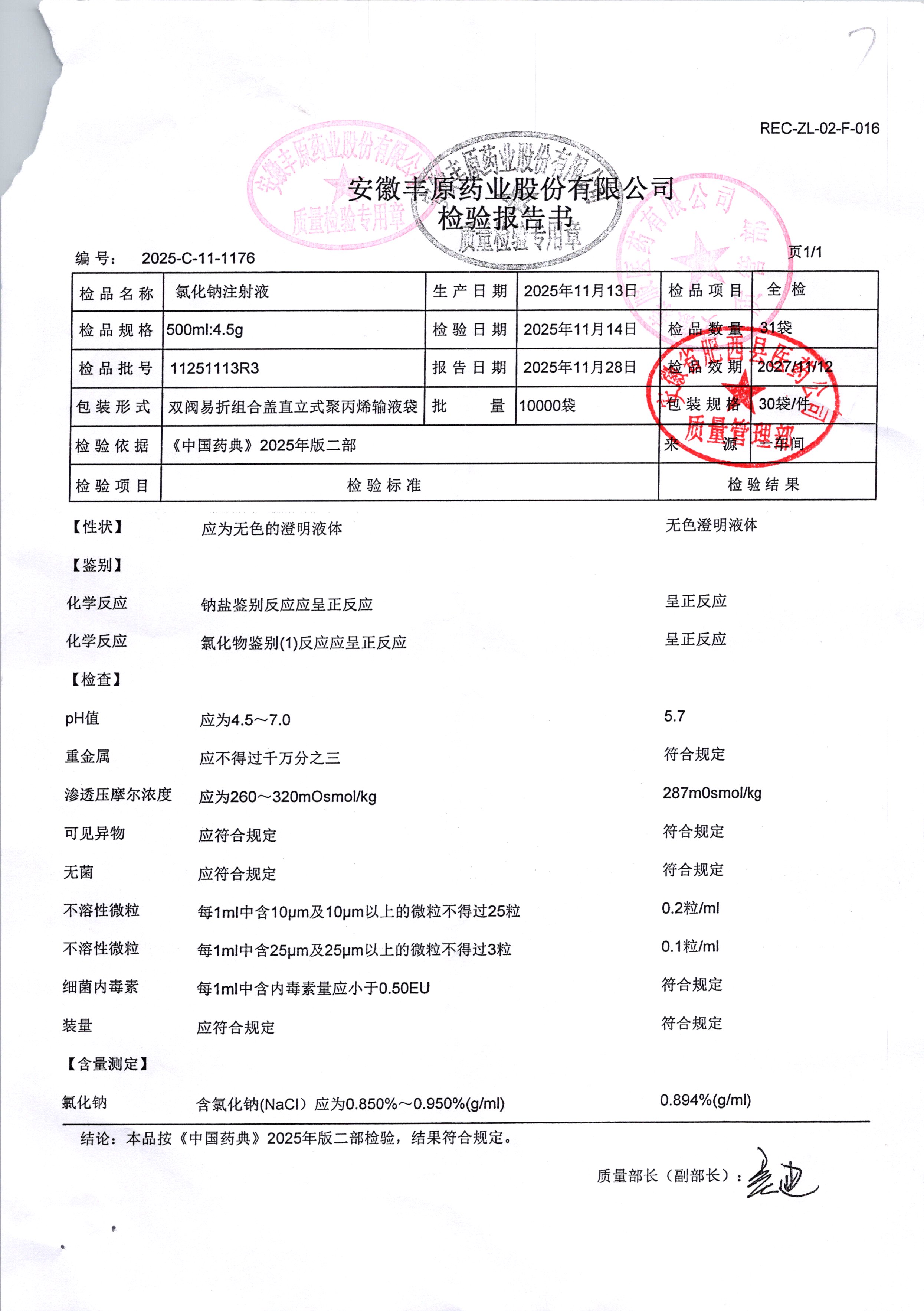 药检报告