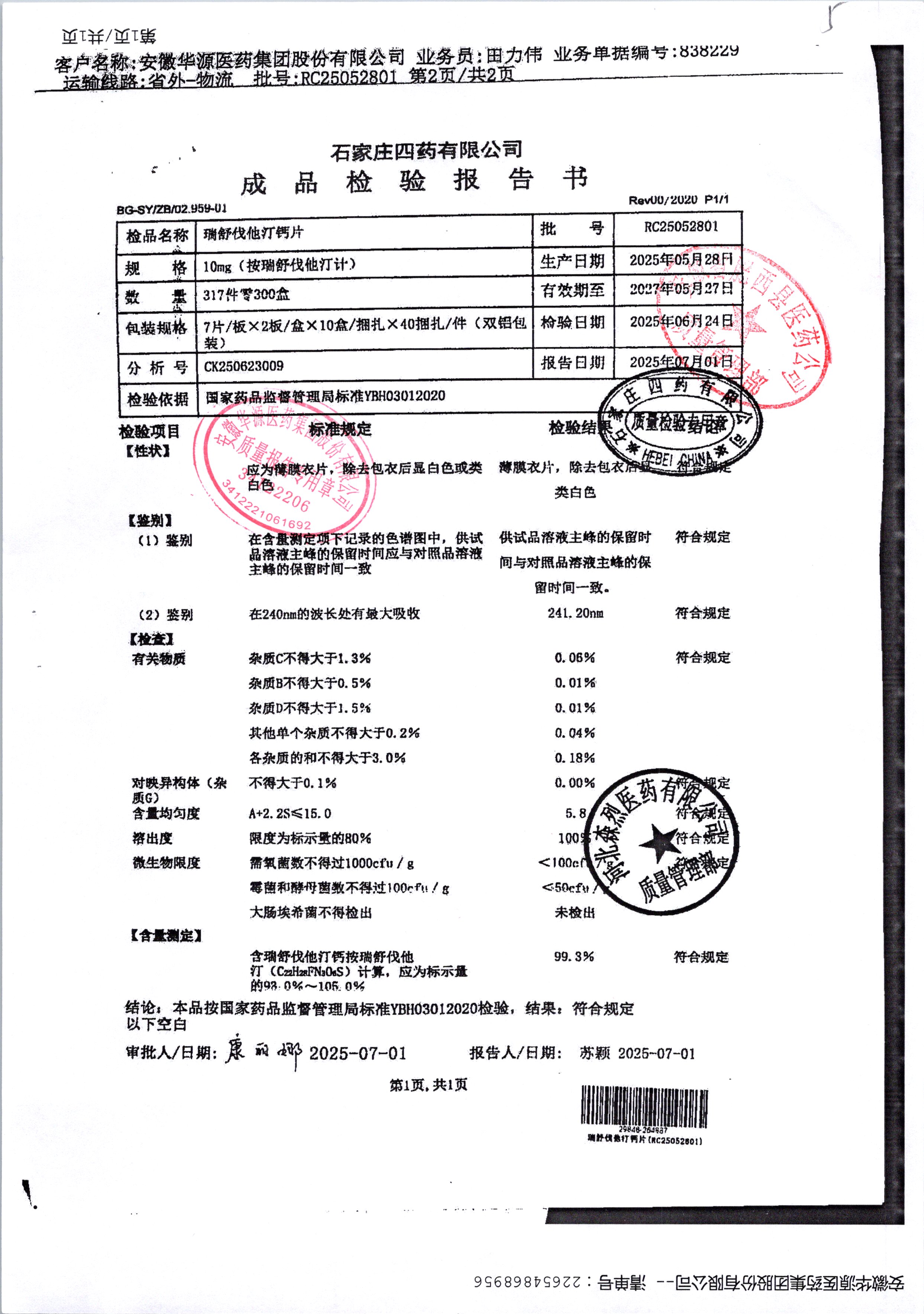 药检报告