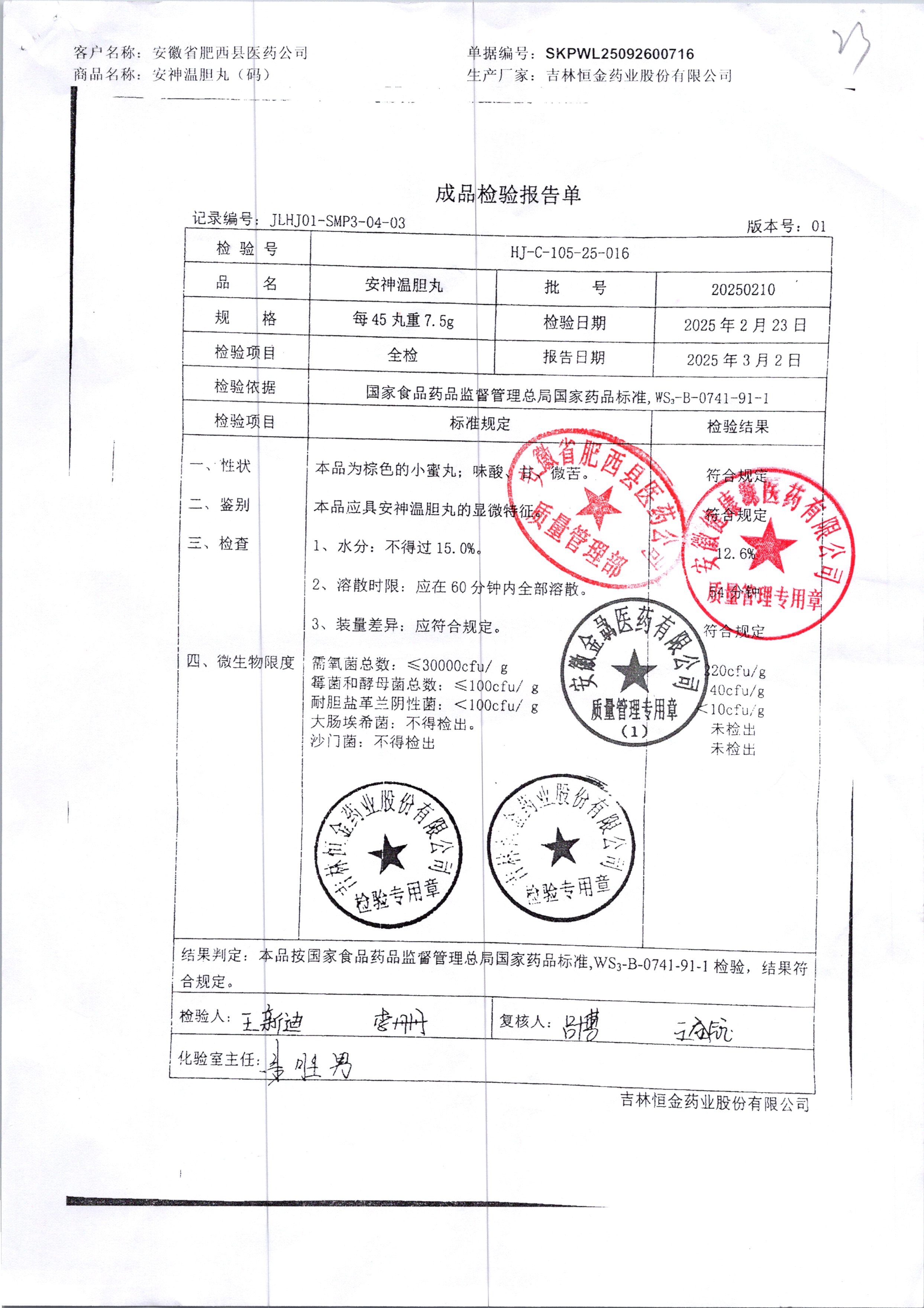 药检报告
