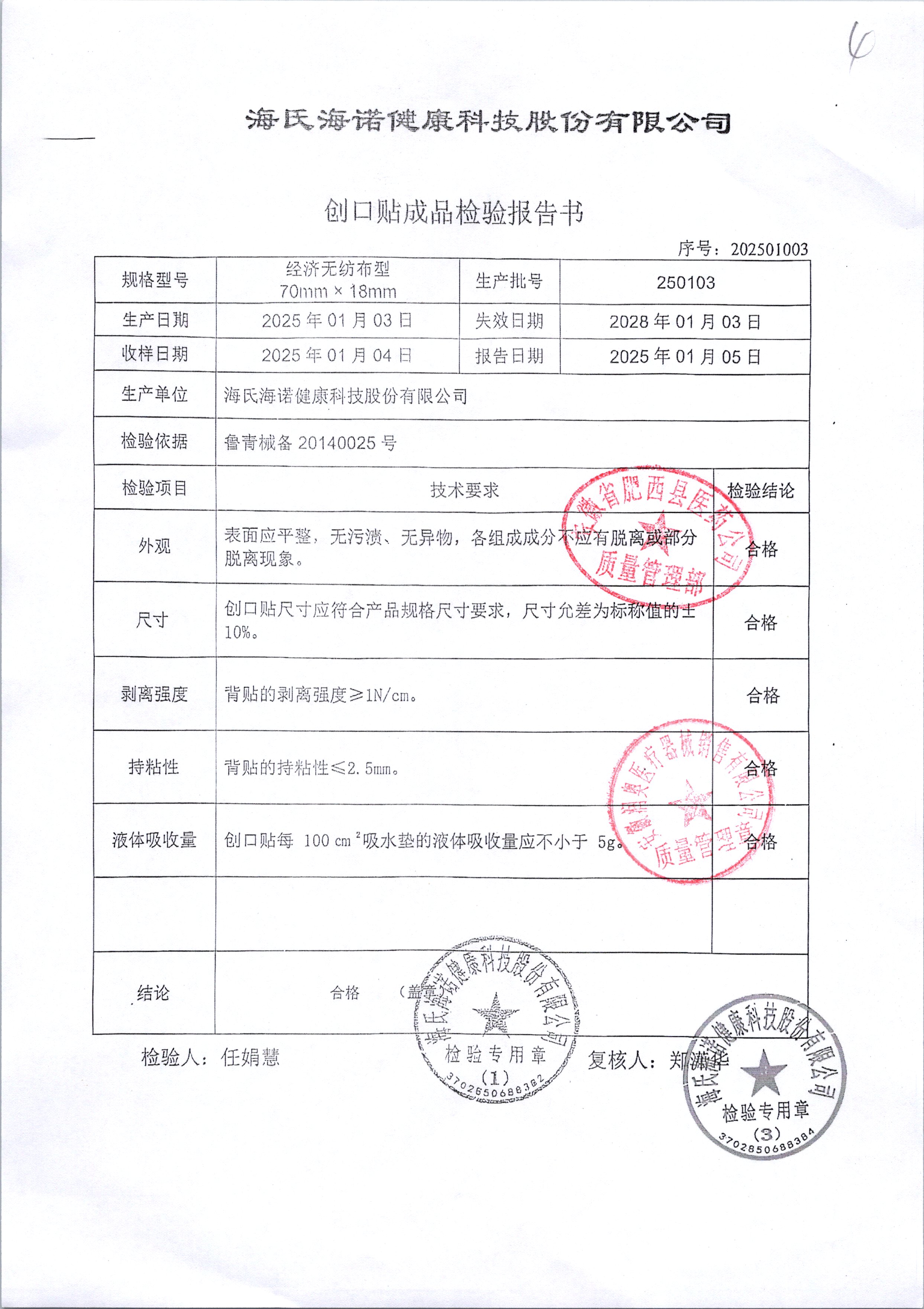 药检报告