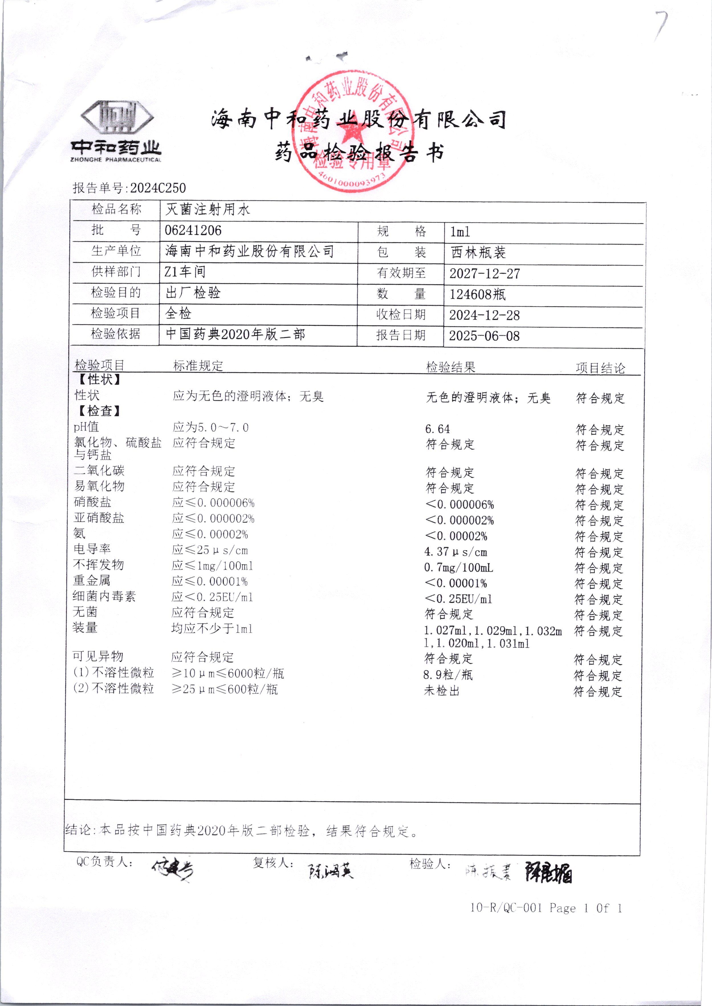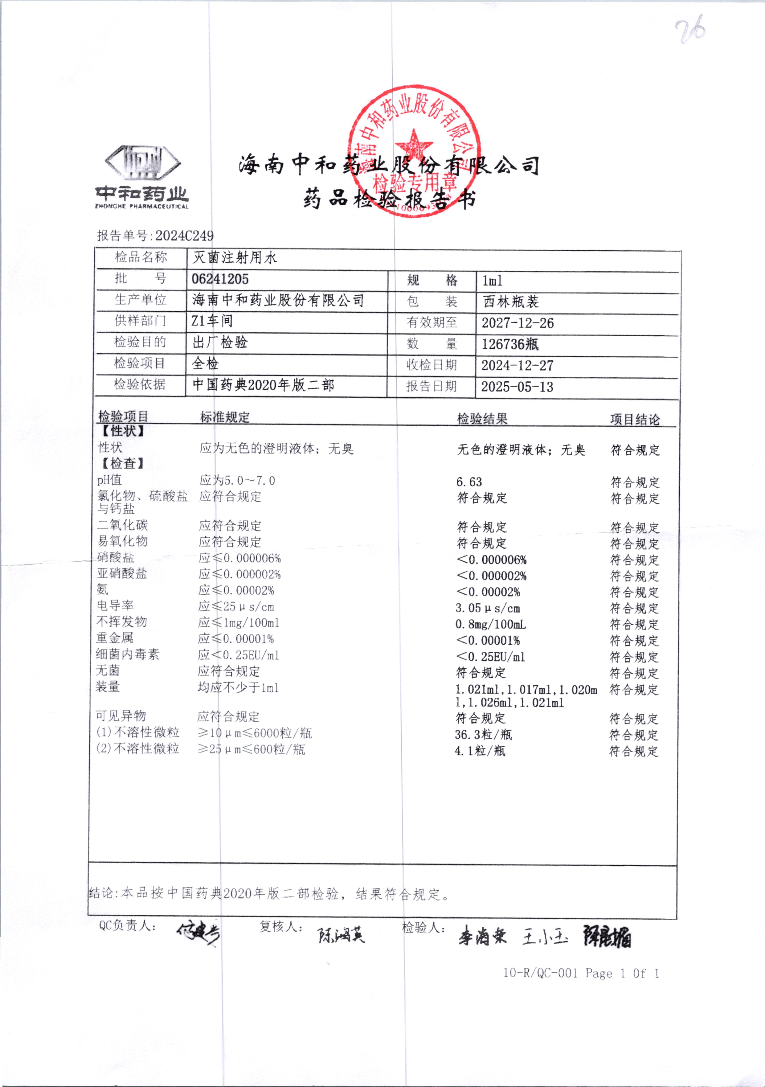 药检报告