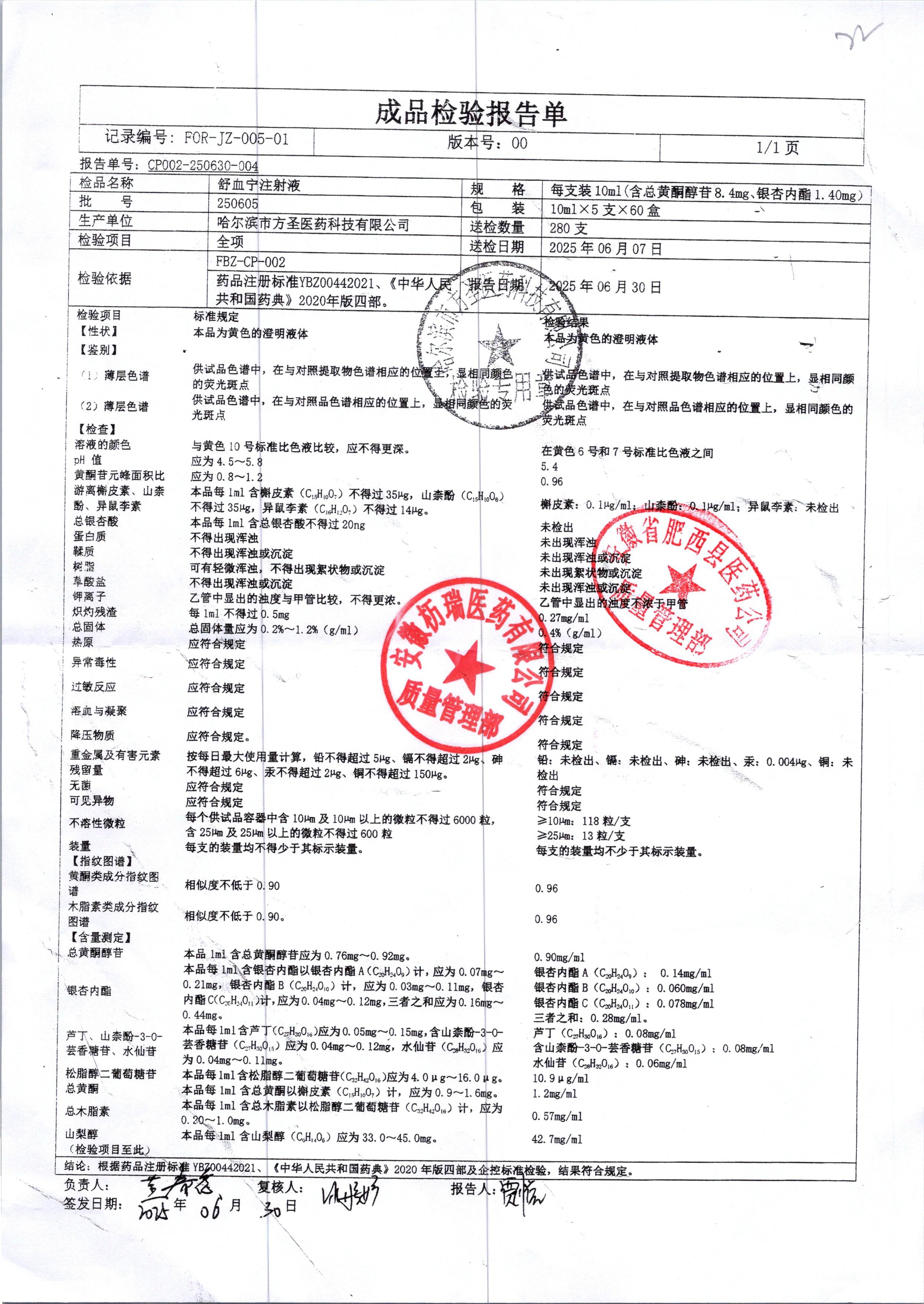 药检报告