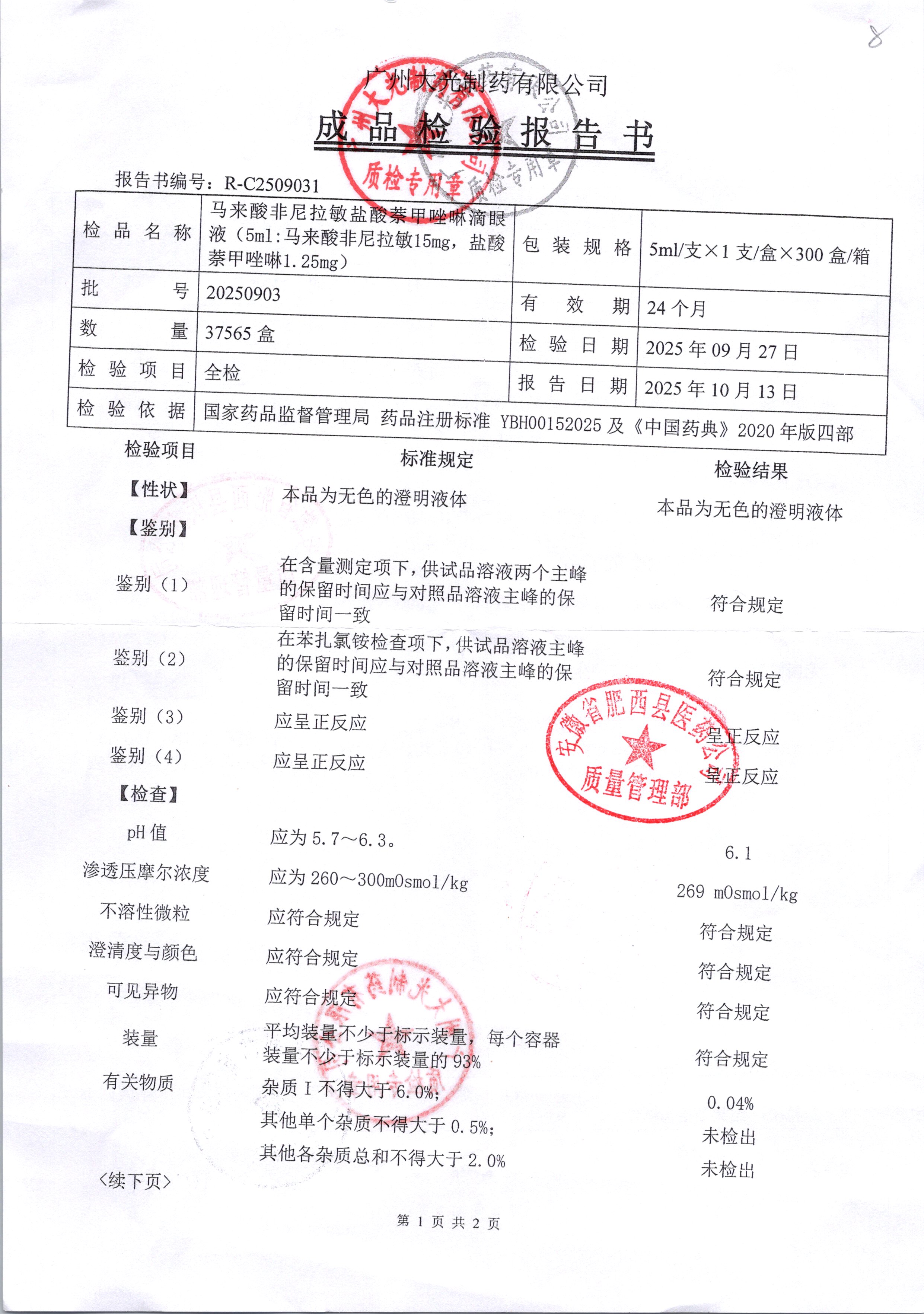 | 马来酸非尼拉敏盐酸萘甲唑啉滴眼液 | 5ml | 20250905/1 | 查看详情 |