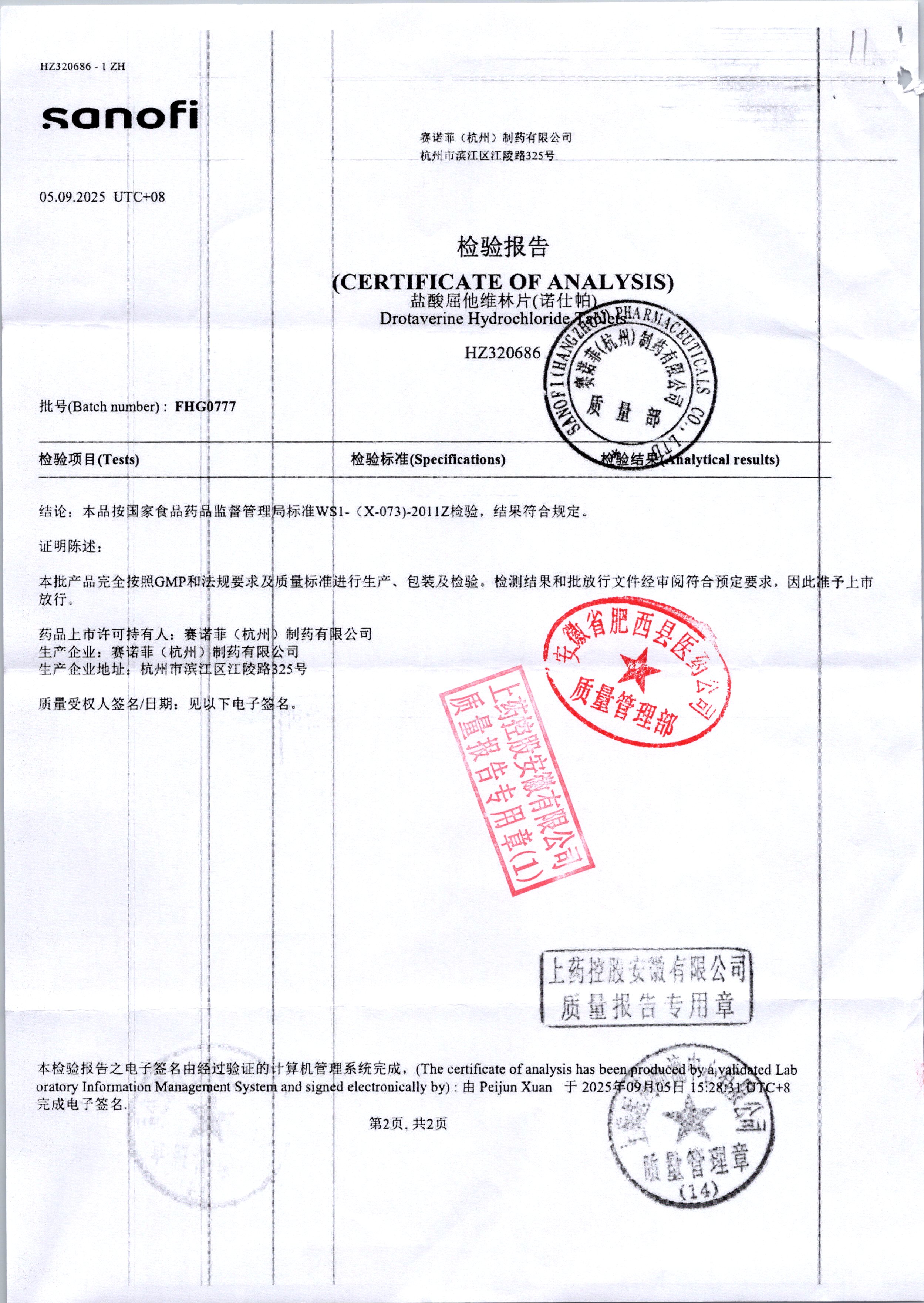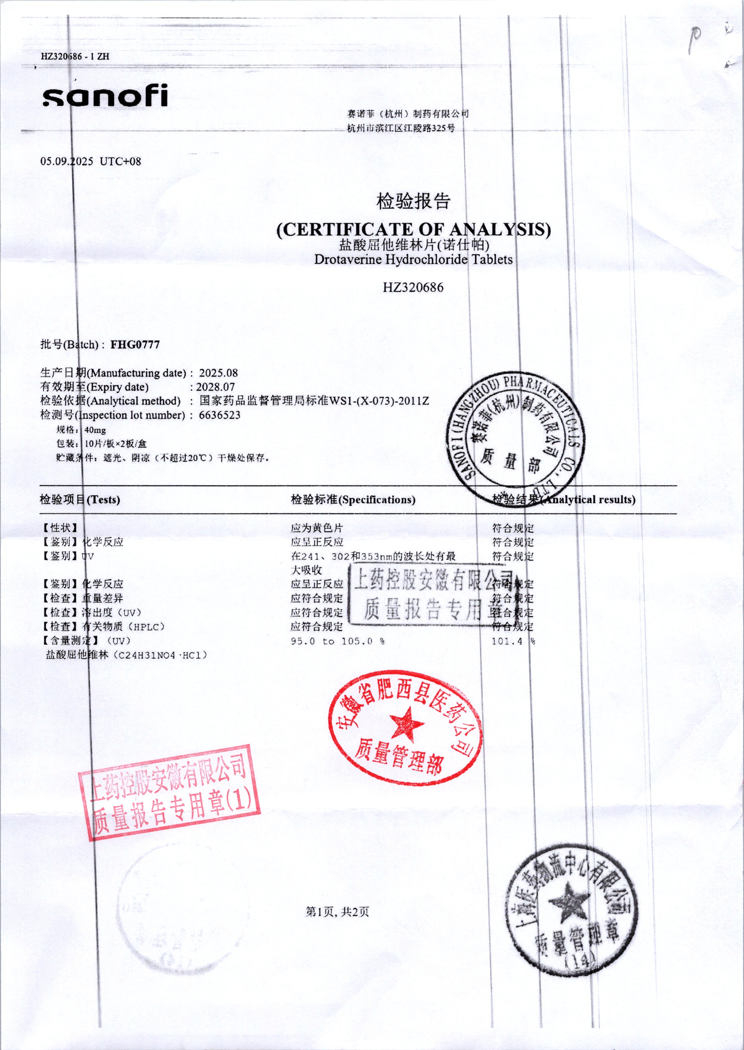 | 盐酸屈他维林片 | 40mg*20片 | FHG0943/2 | 查看详情 |
