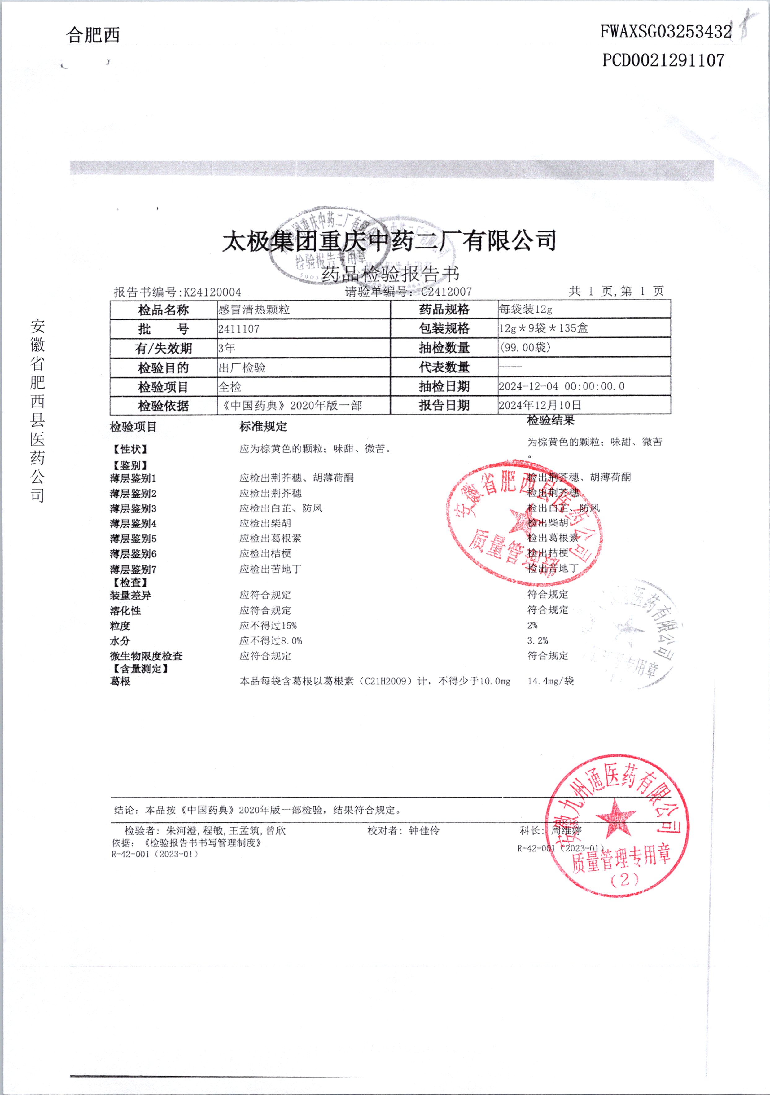 | 感冒清热颗粒 | 12g*12*9 | 2409068 | 查看详情 |
