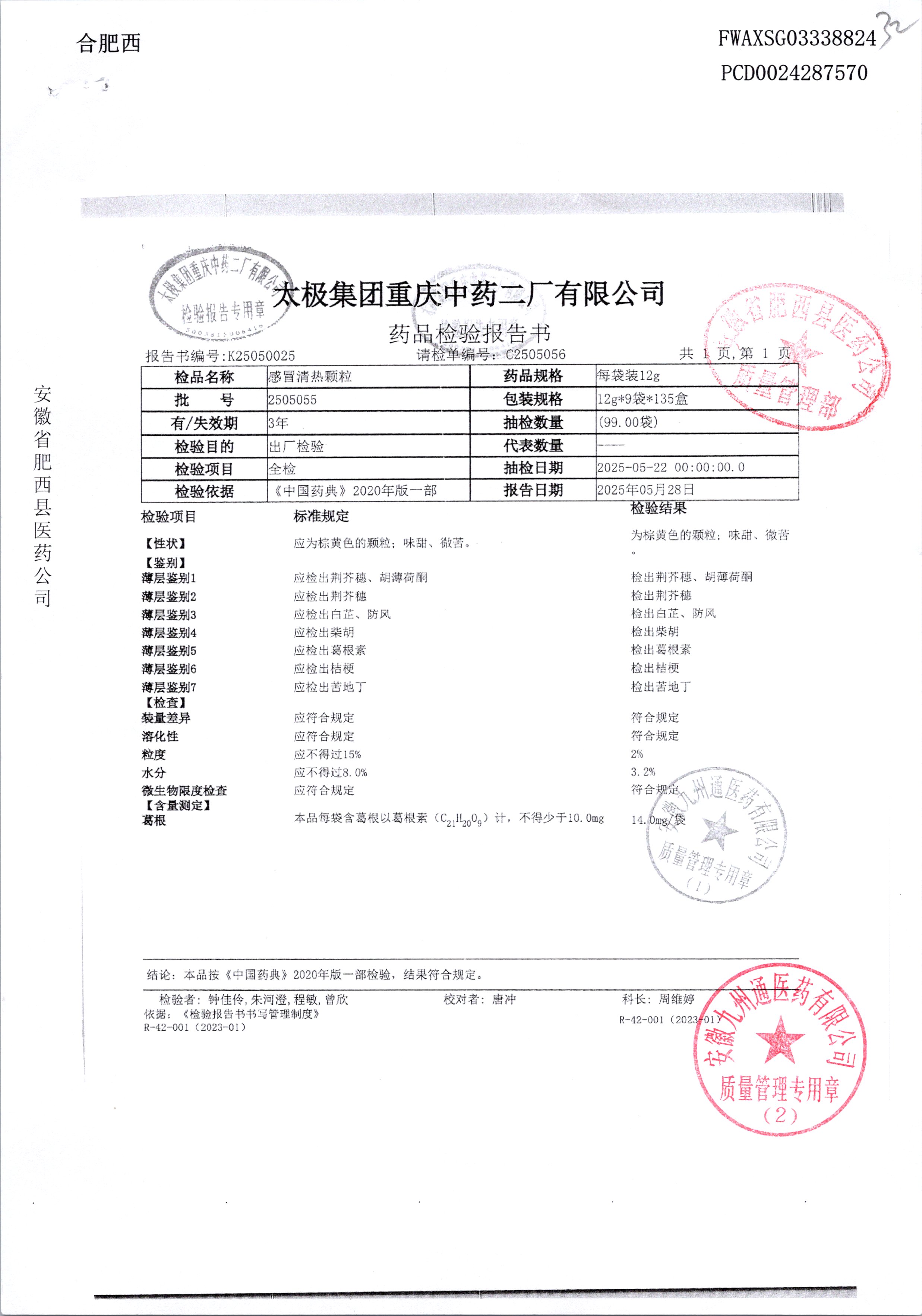| 感冒清热颗粒 | 12g*12*9 | 2505055 | 查看详情 |