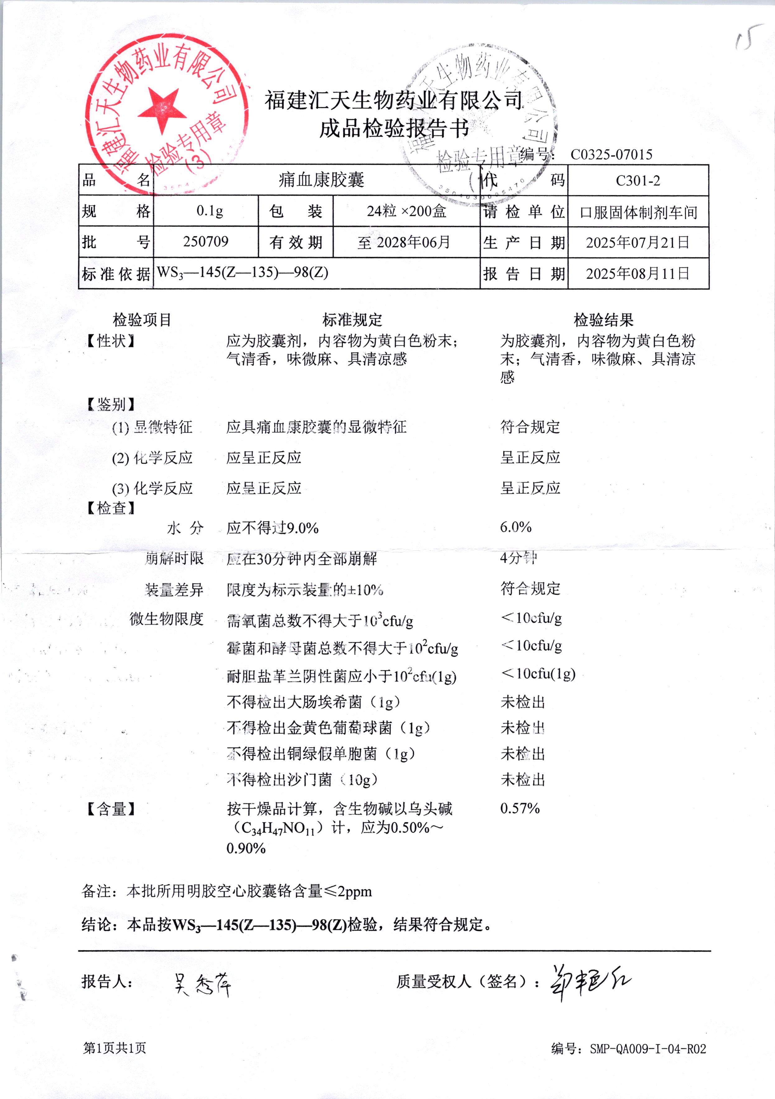 药检报告