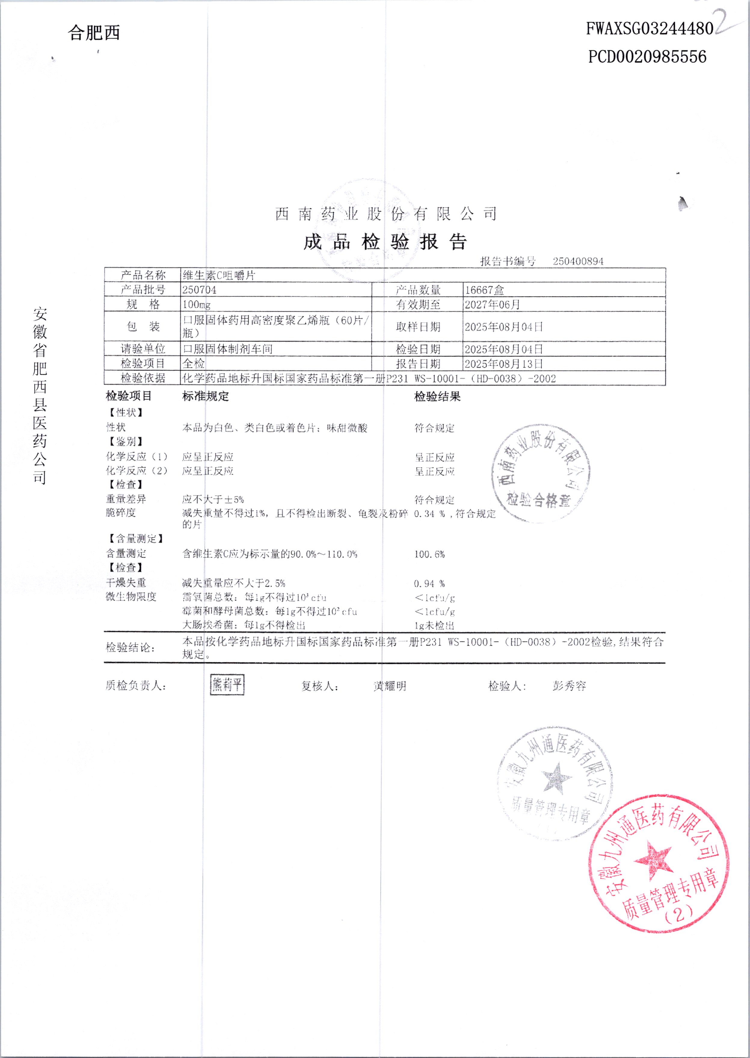 药检报告