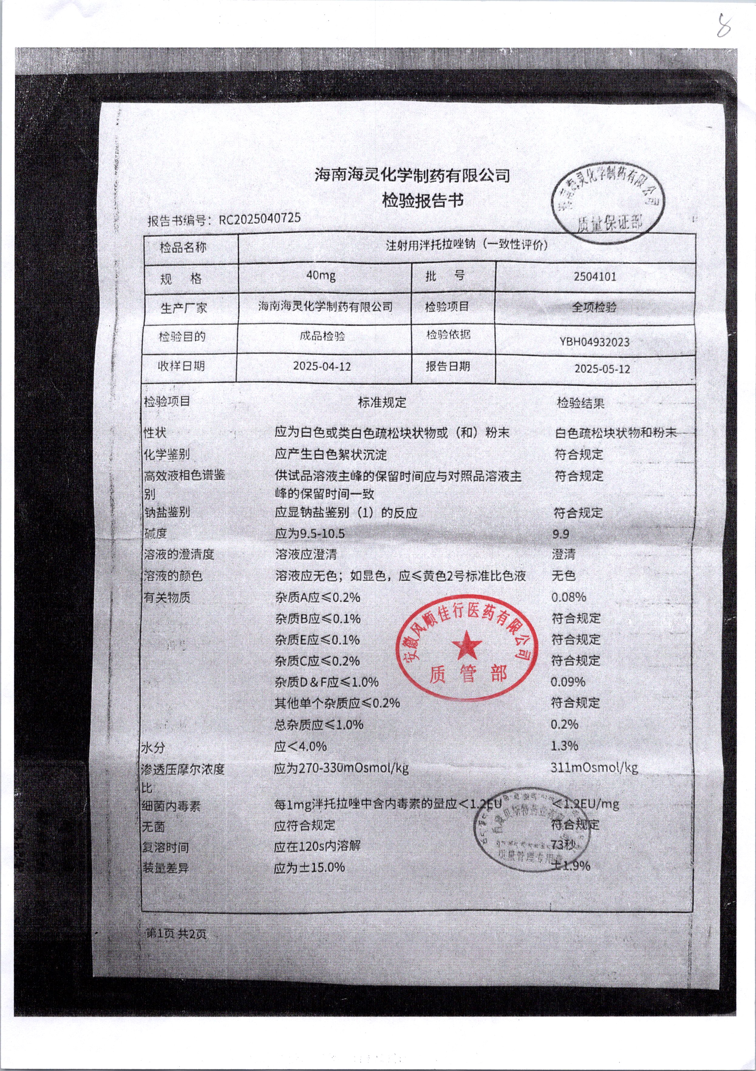 药检报告