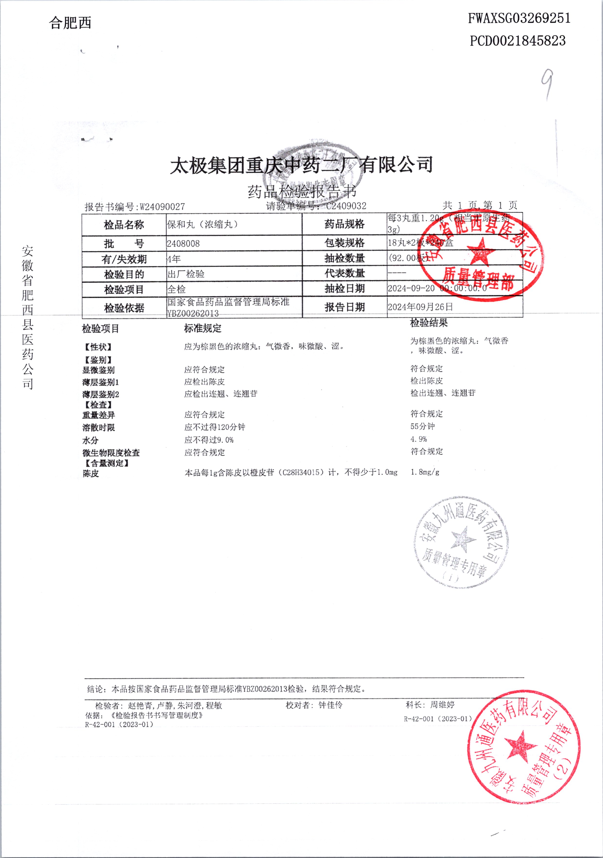药检报告