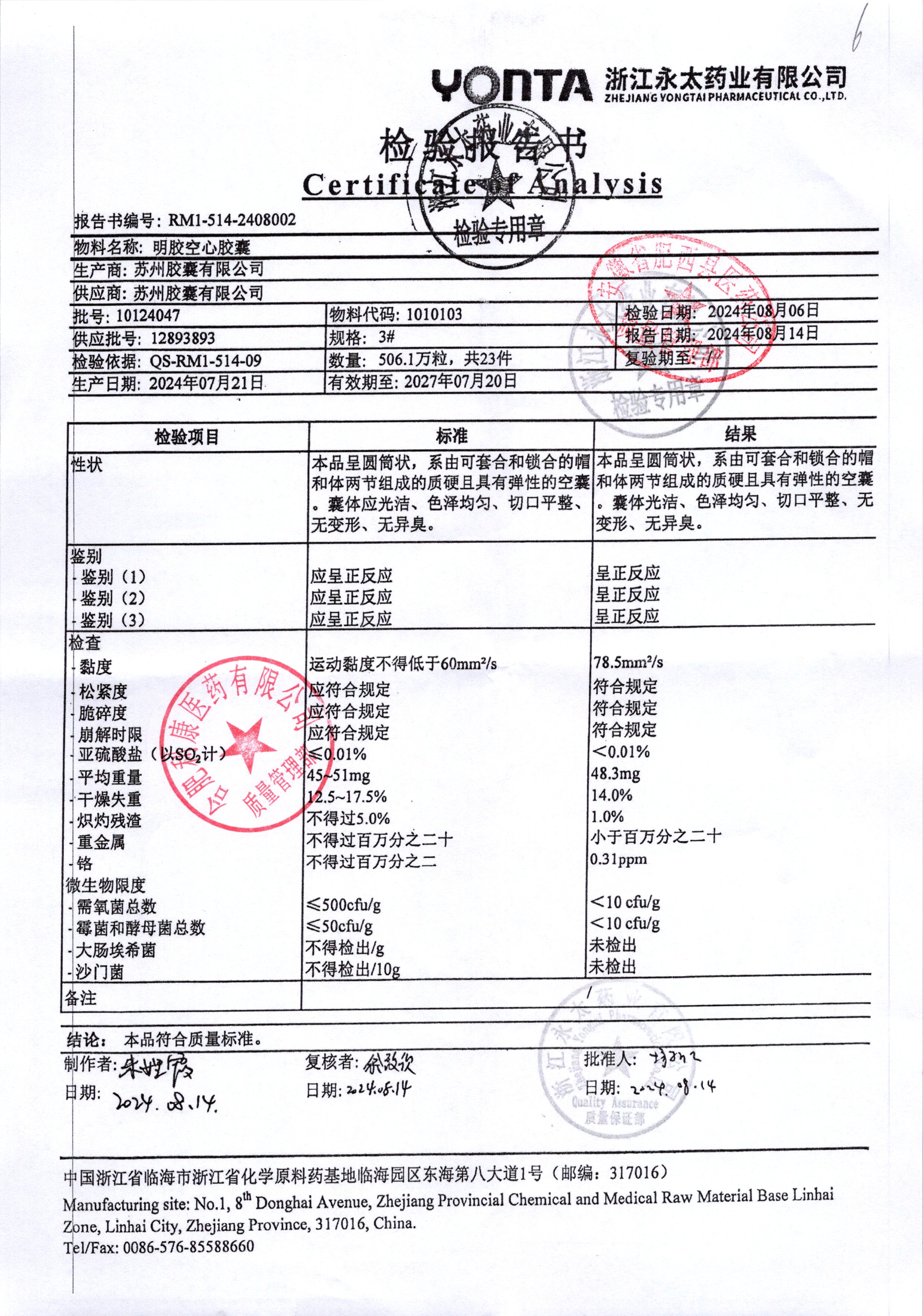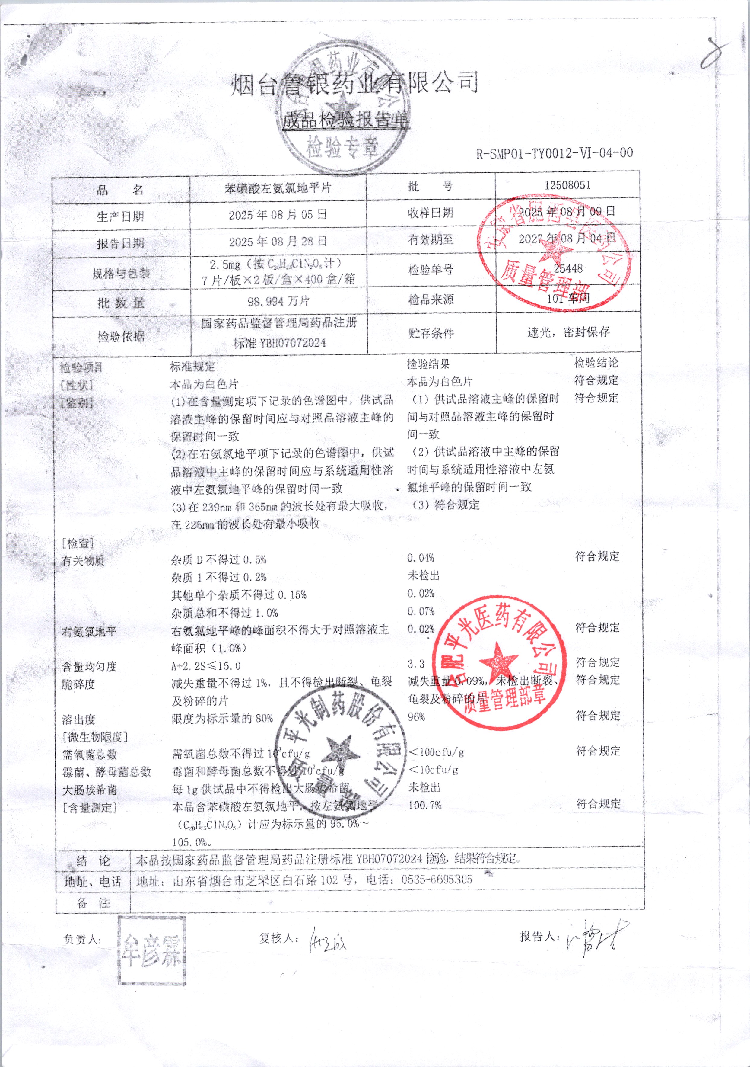 | 名称 | 规格 | 批号 | 药检报告 |