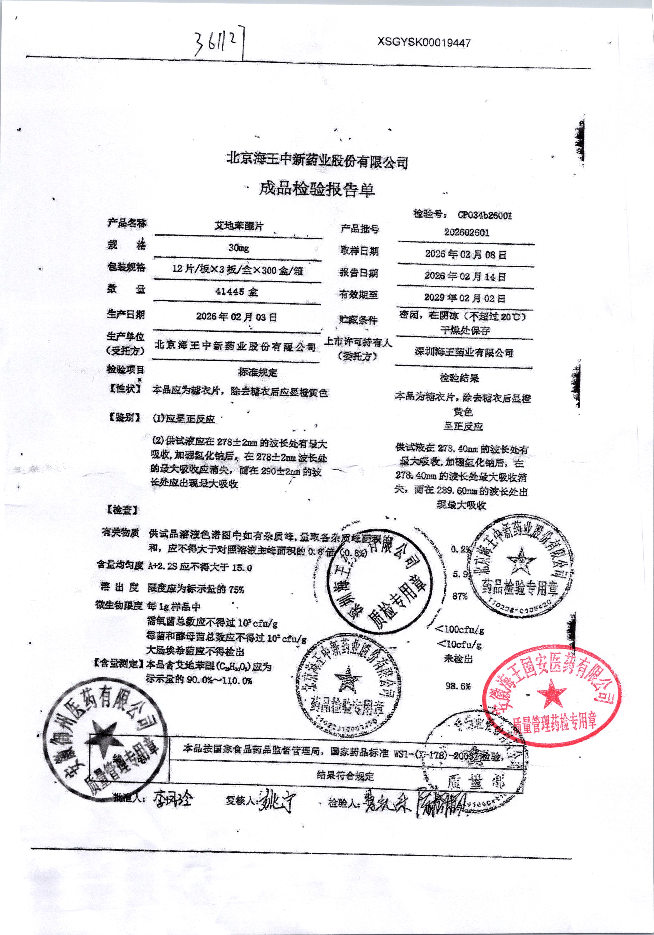 药检报告